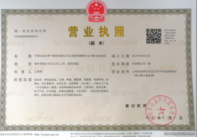 中国石油天然气股份有限公司云南曲靖销售分公司曲靖阳光加油站安全现状评价报告