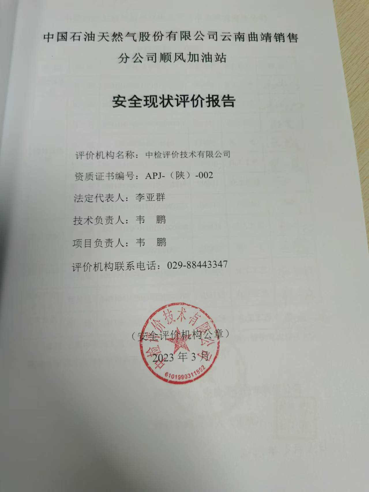 中国石油天然气股份有限公司云南曲靖销售分公司顺风加油站安全现状评价报告