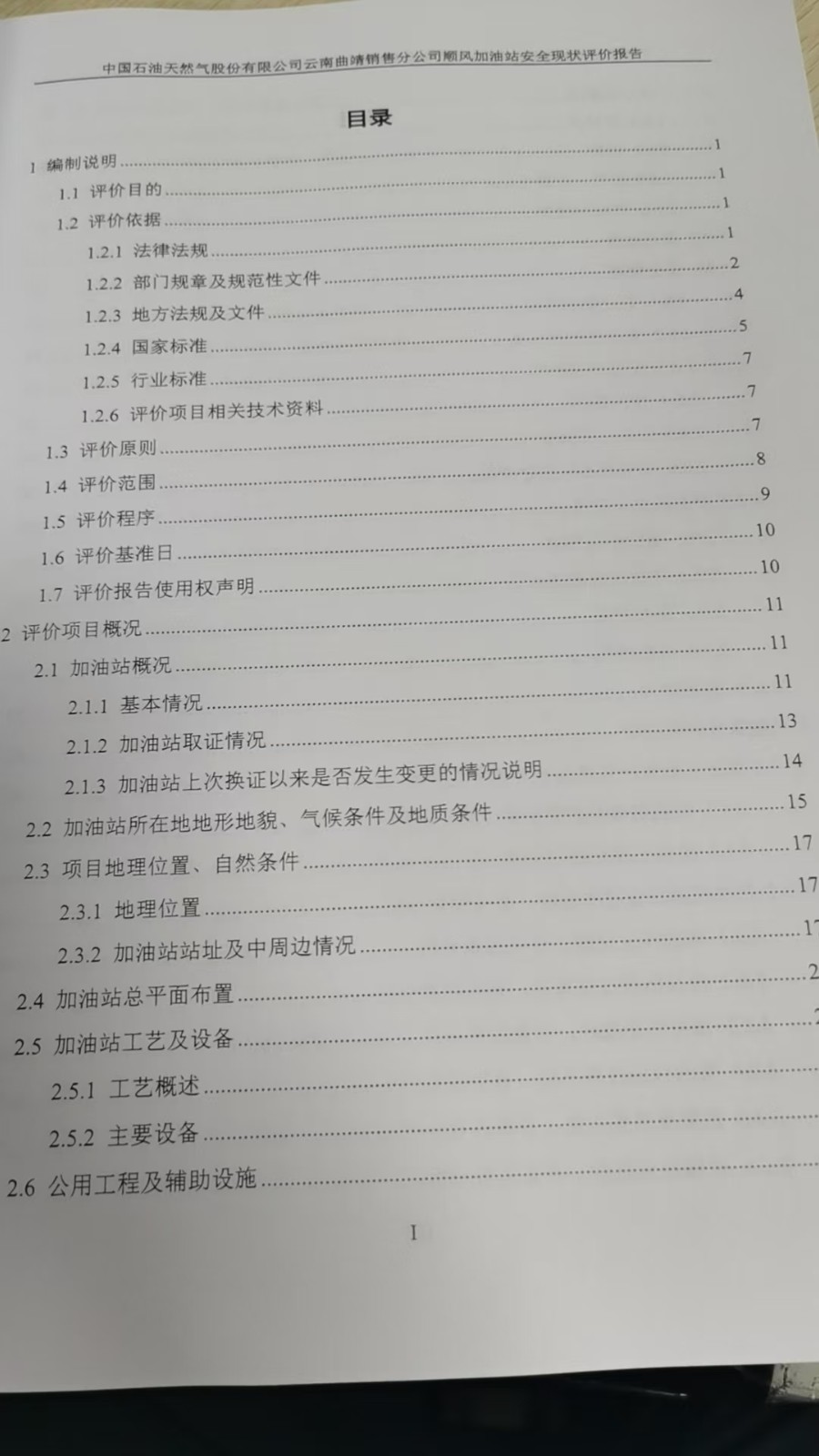 项目名称 | 中国石油天然气股份有限公司云南曲靖销售分公司顺风加油站安全现状评价报告 | ||||||
