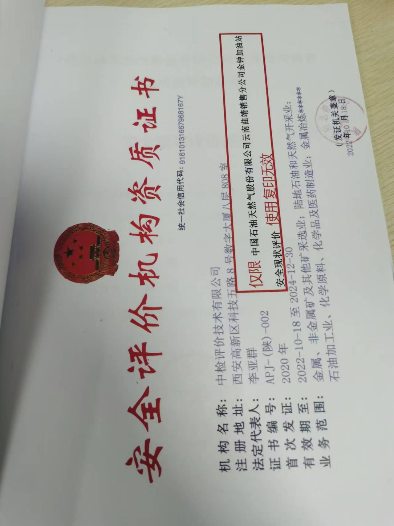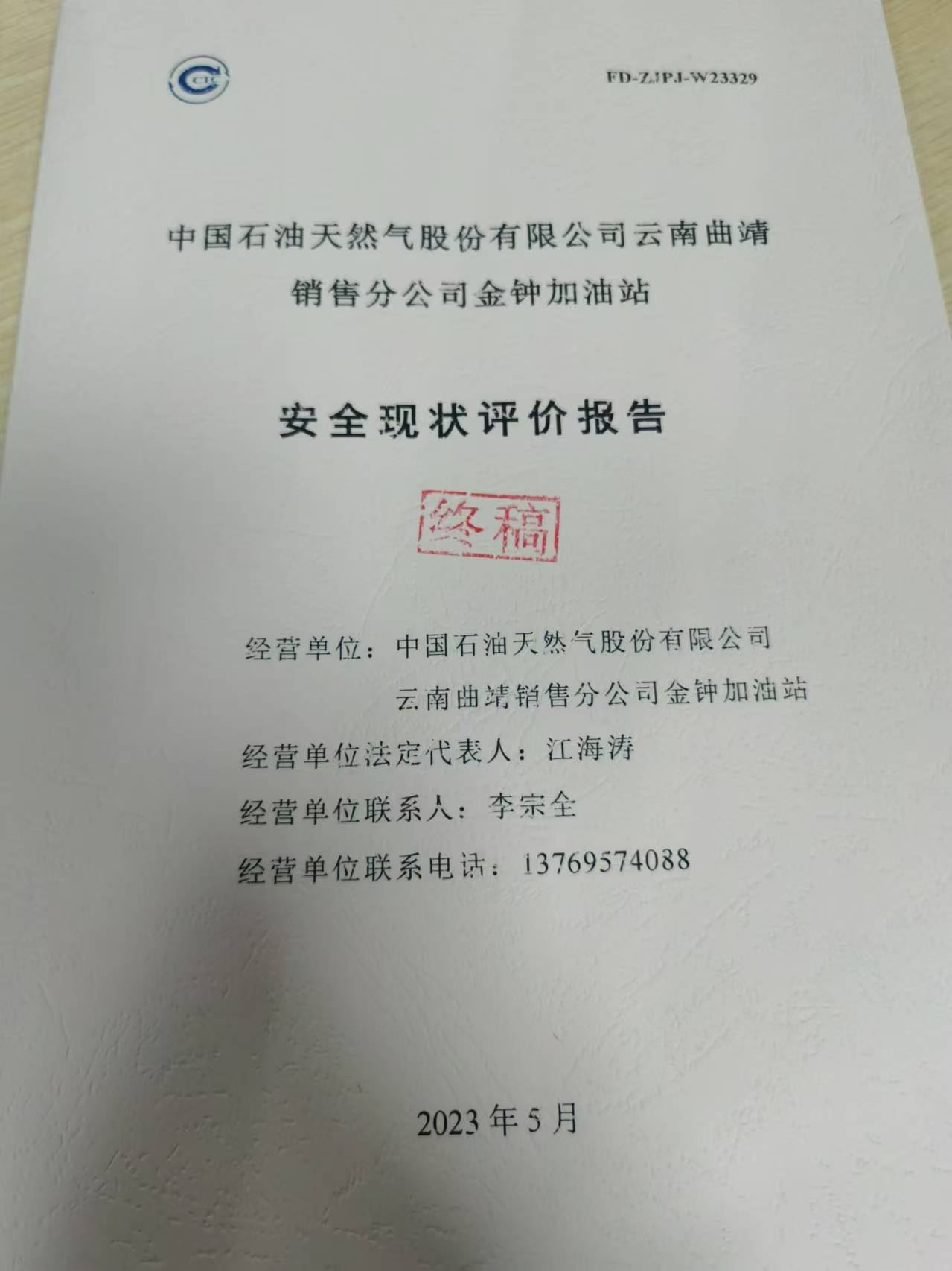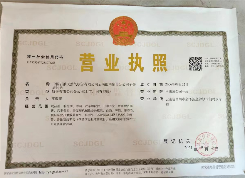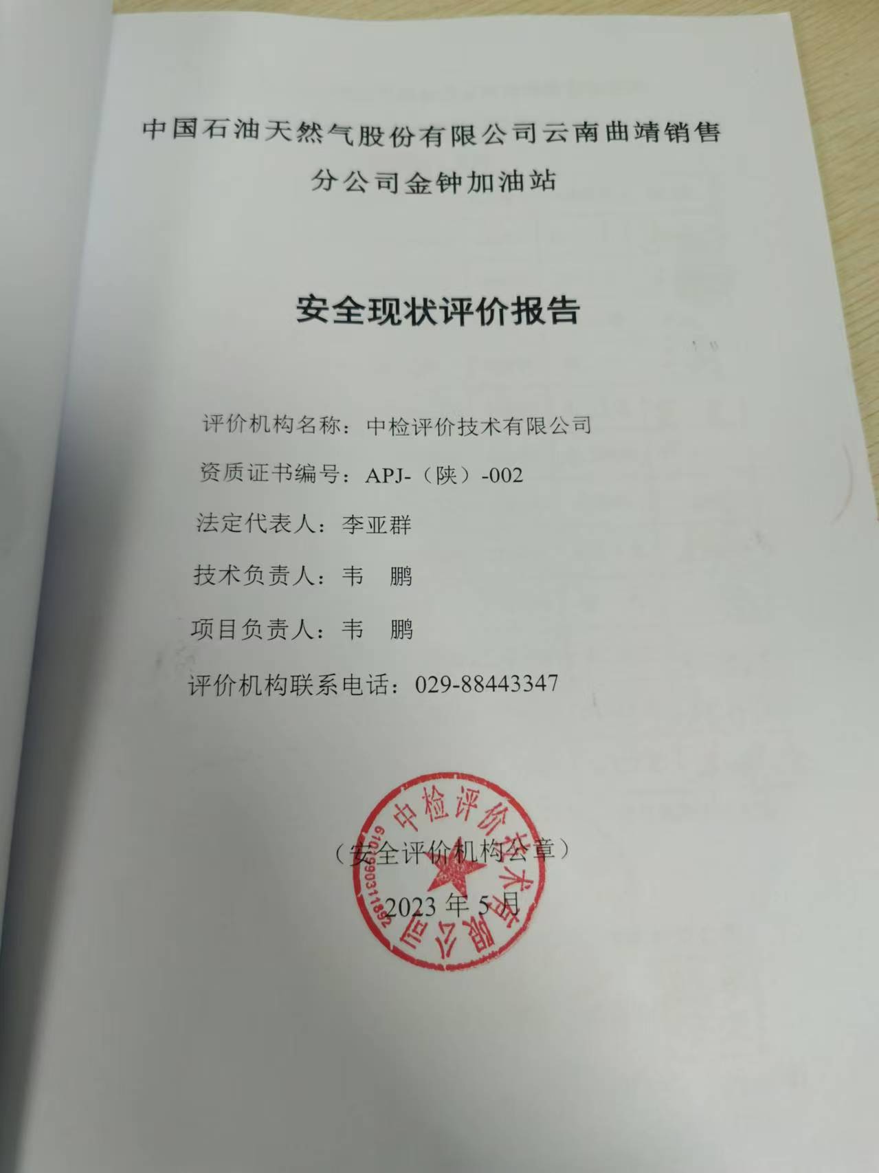 中国石油天然气股份有限公司云南曲靖销售分公司金钟加油站安全现状评价报告