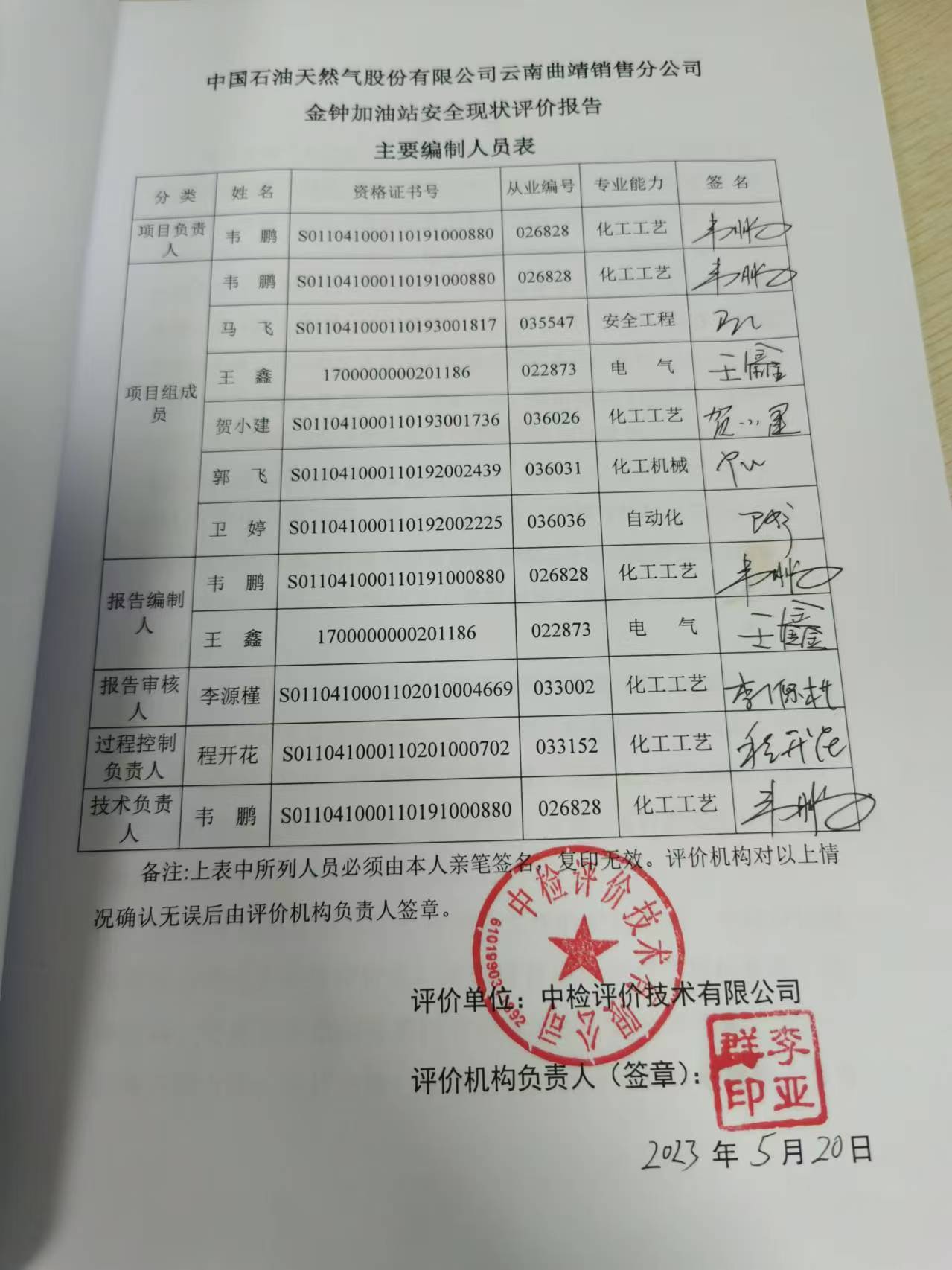 项目名称 | 中国石油天然气股份有限公司云南曲靖销售分公司金钟加油站安全现状评价报告 | ||||||