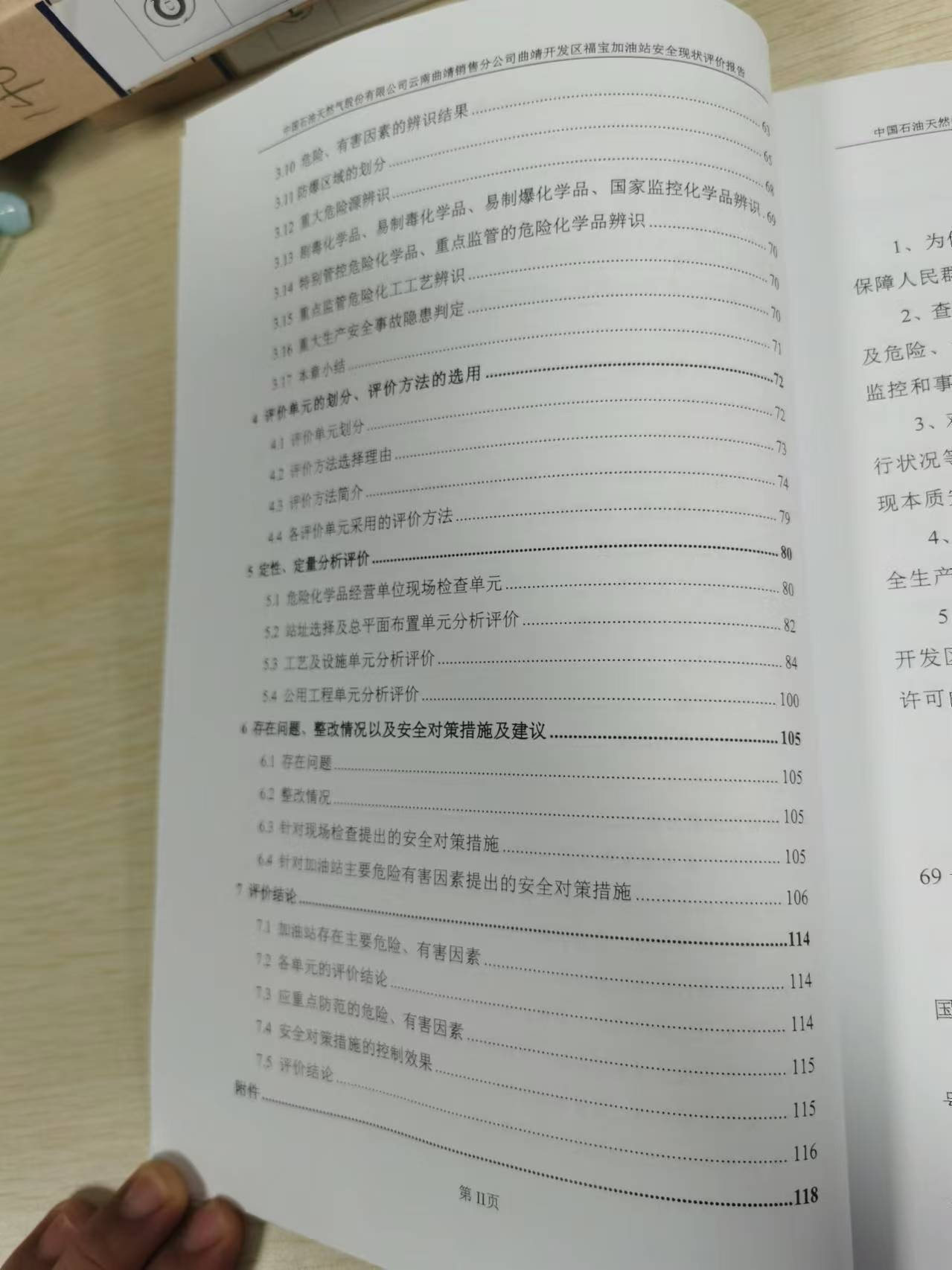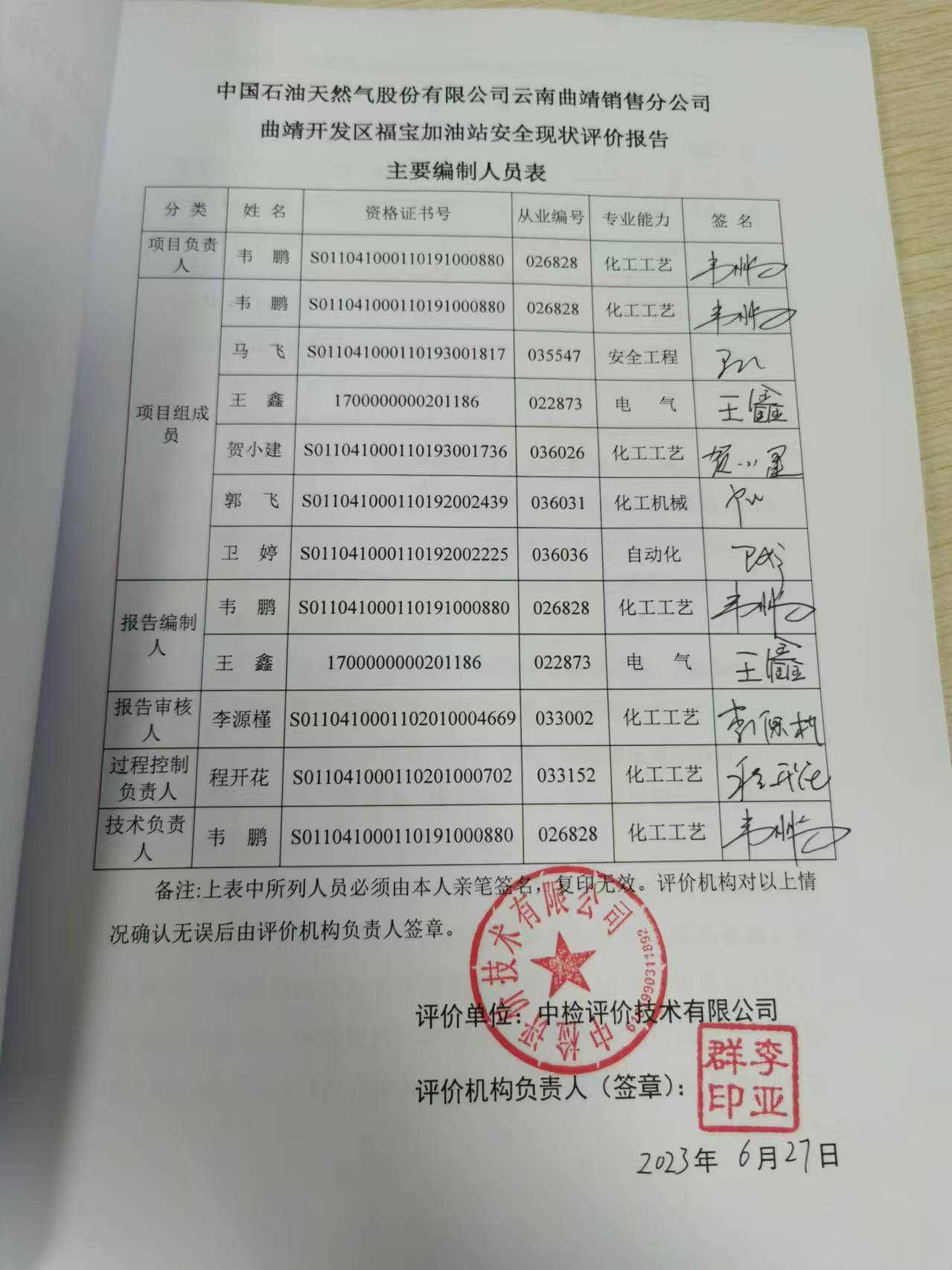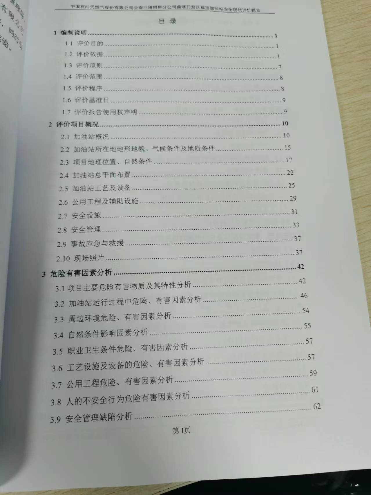 项目名称 | 中国石油天然气股份有限公司云南曲靖销售分公司曲靖开发区福宝加油站安全现状评价报告 | ||||||