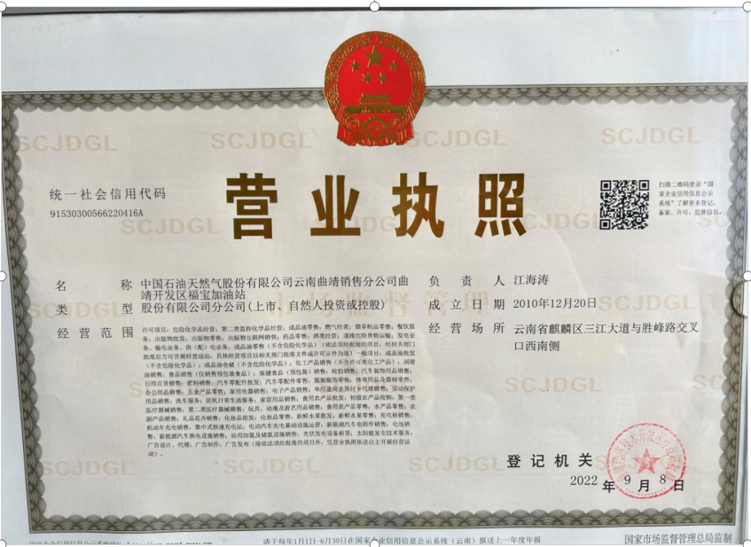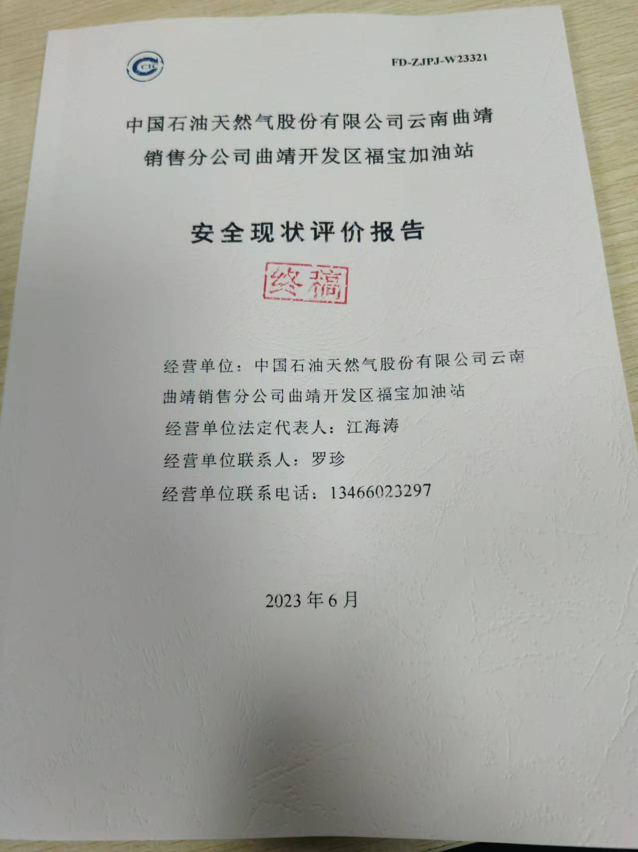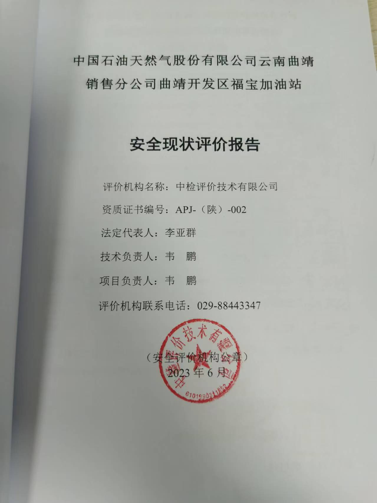 中国石油天然气股份有限公司云南曲靖销售分公司曲靖开发区福宝加油站安全现状评价报告