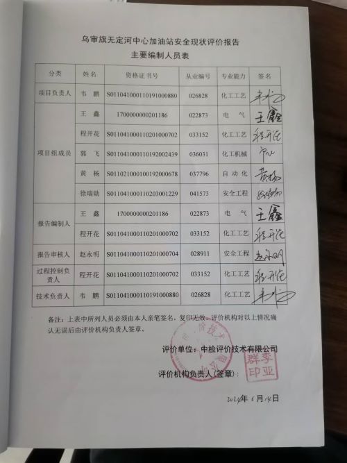 乌审旗无定河中心加油站安全现状评价