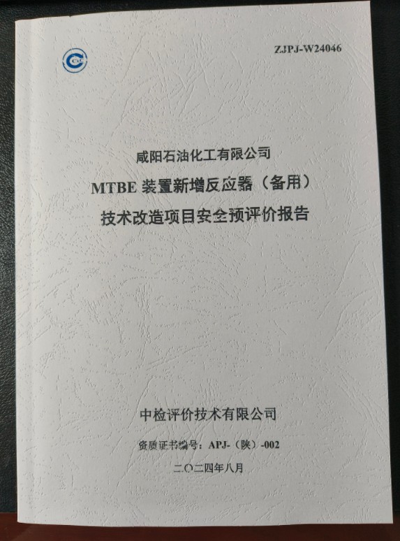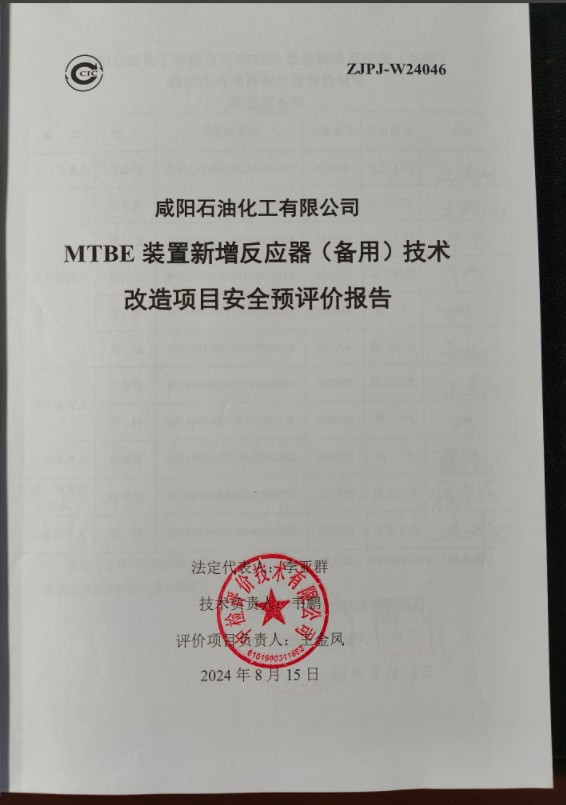 咸阳石油化工有限公司MTBE装置新增反应器(备用)技术改造项目安全预评价报告