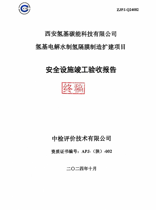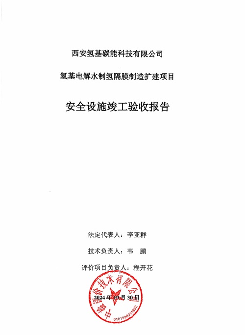 项目名称 | 西安氢基碳能科技有限公司氢基电解水制氢隔膜制造扩建项目安全设施竣工验收 | ||||||
