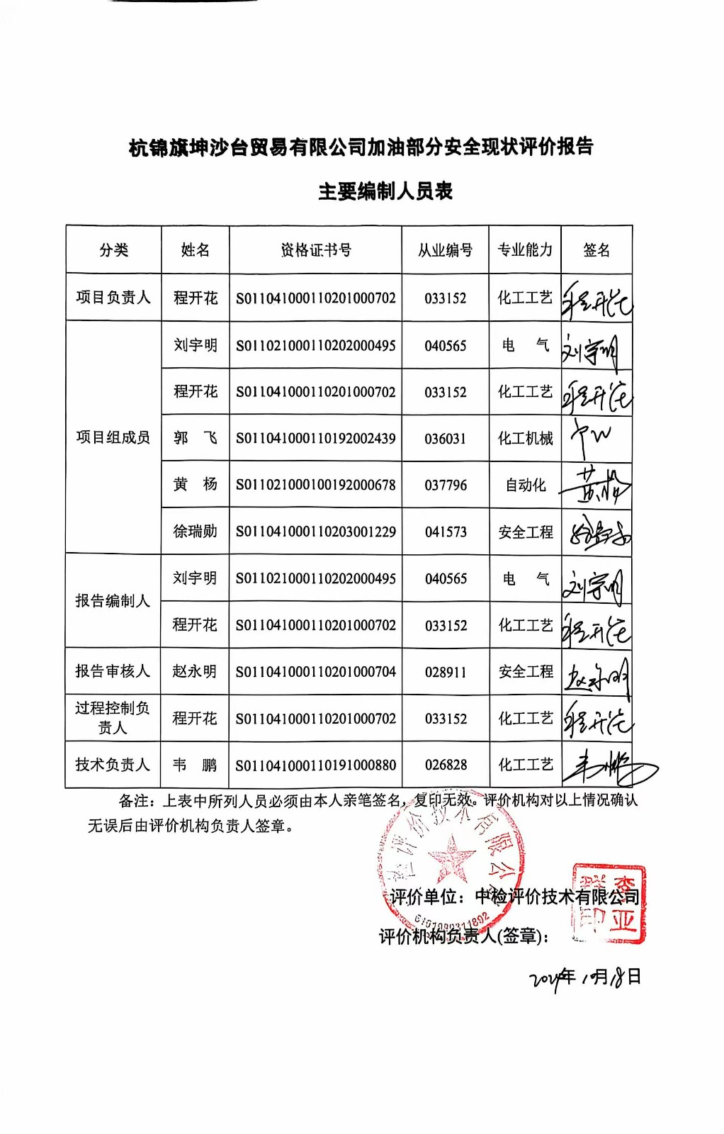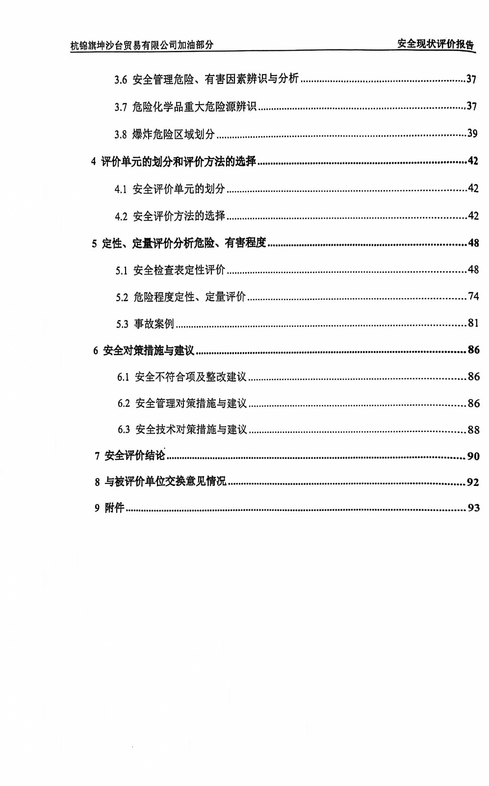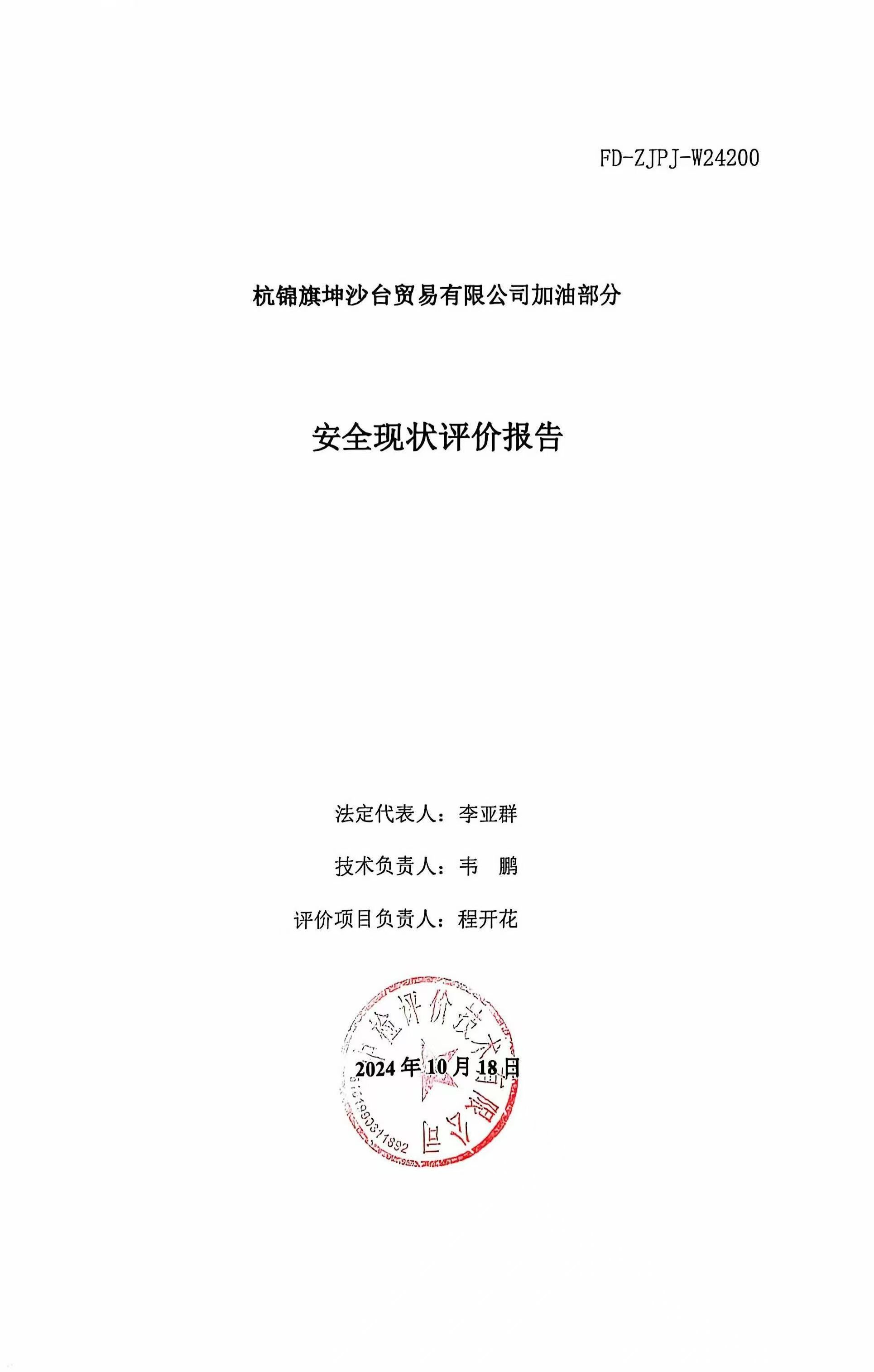 杭锦旗坤沙台贸易有限公司加油部分安全现状评价报告
