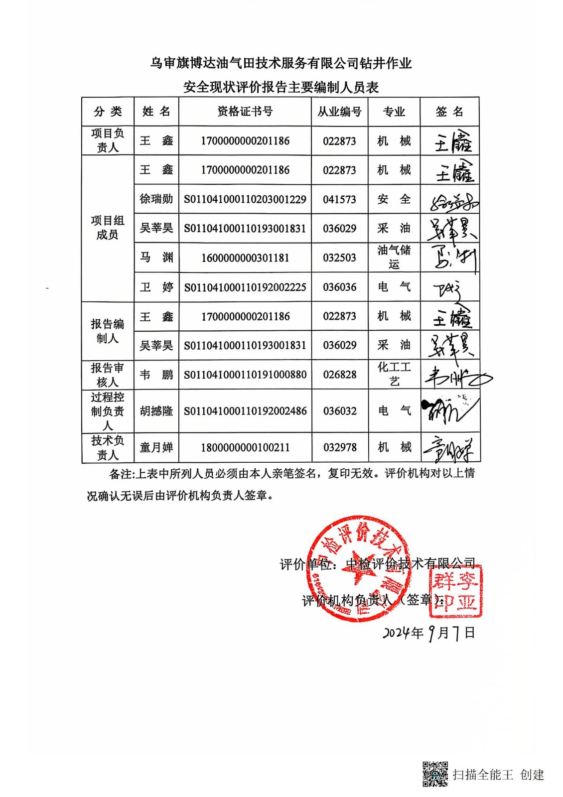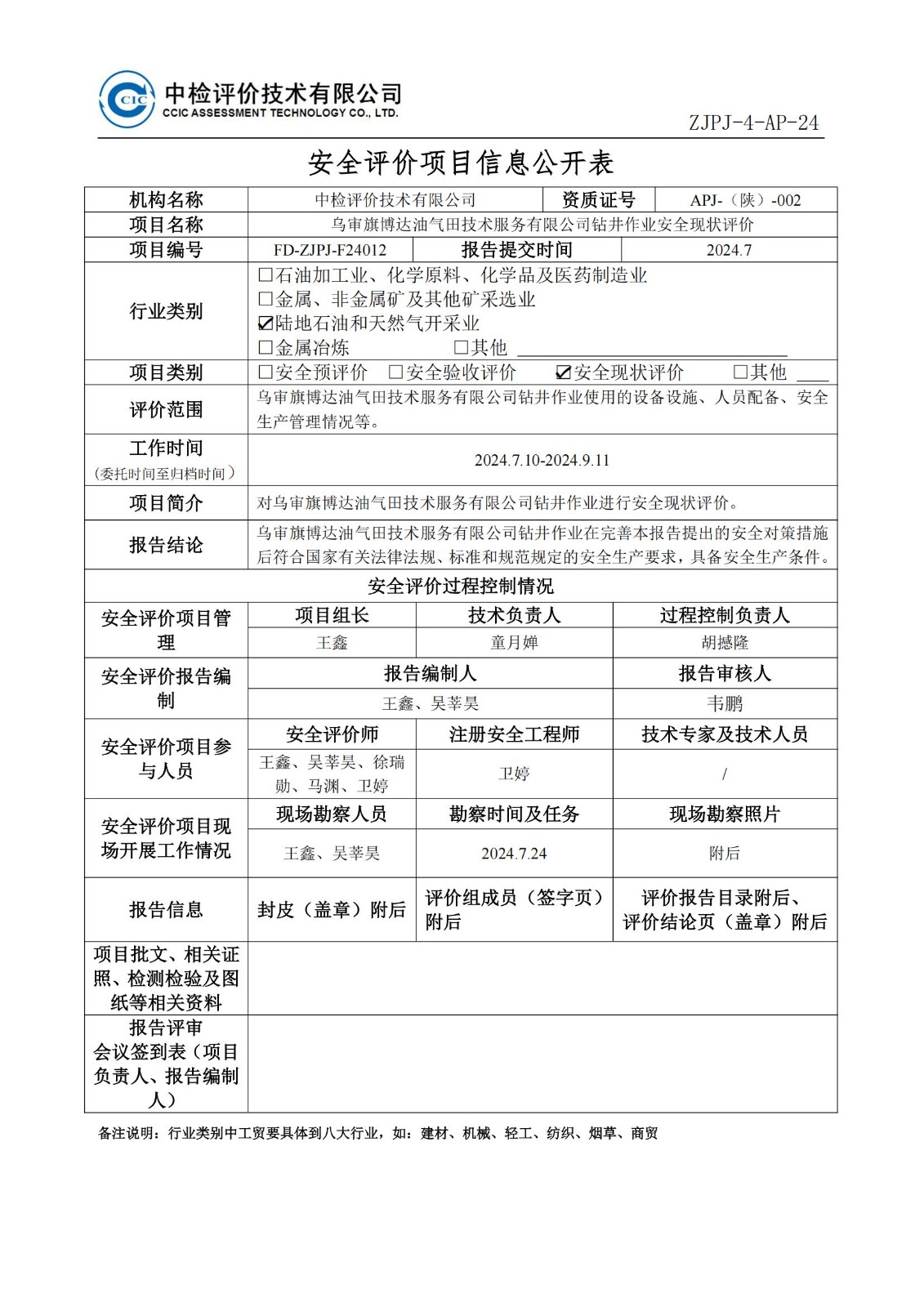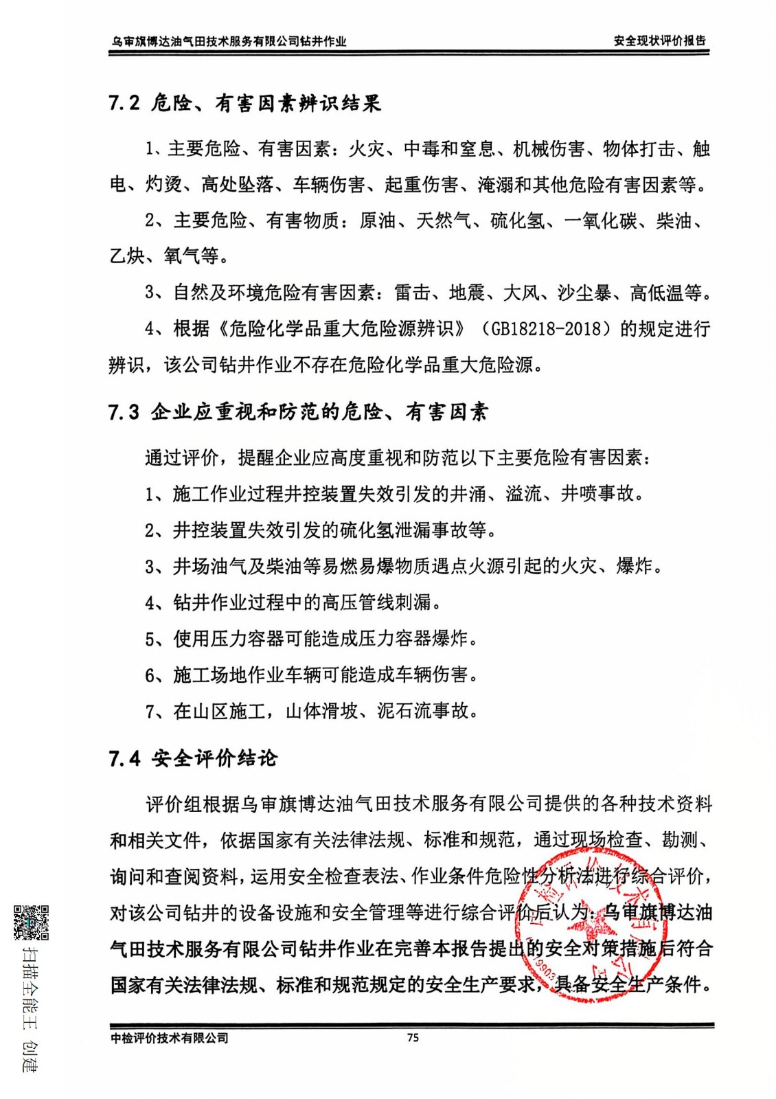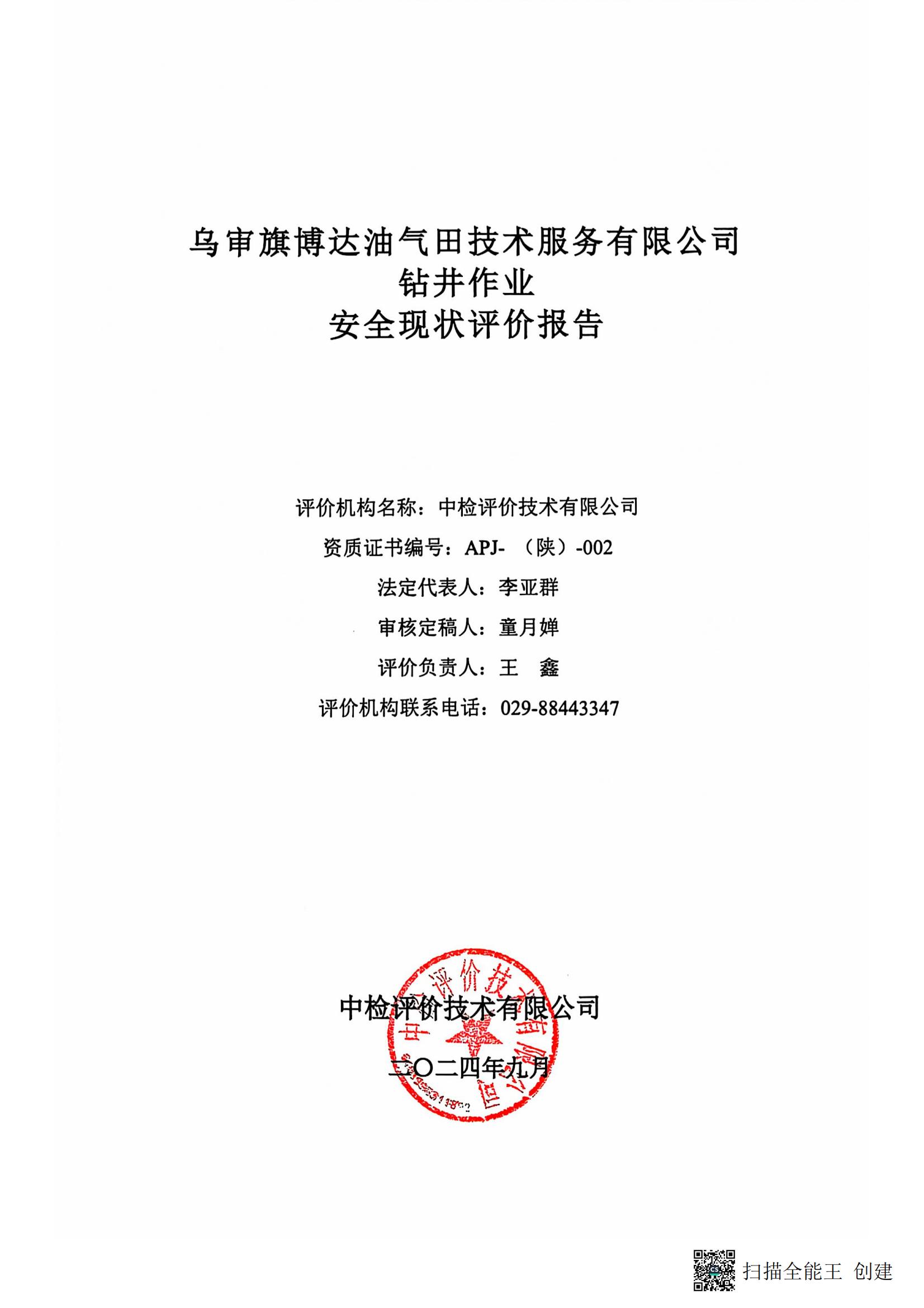 乌审旗博达油气田技术服务有限公司钻井作业安全现状评价