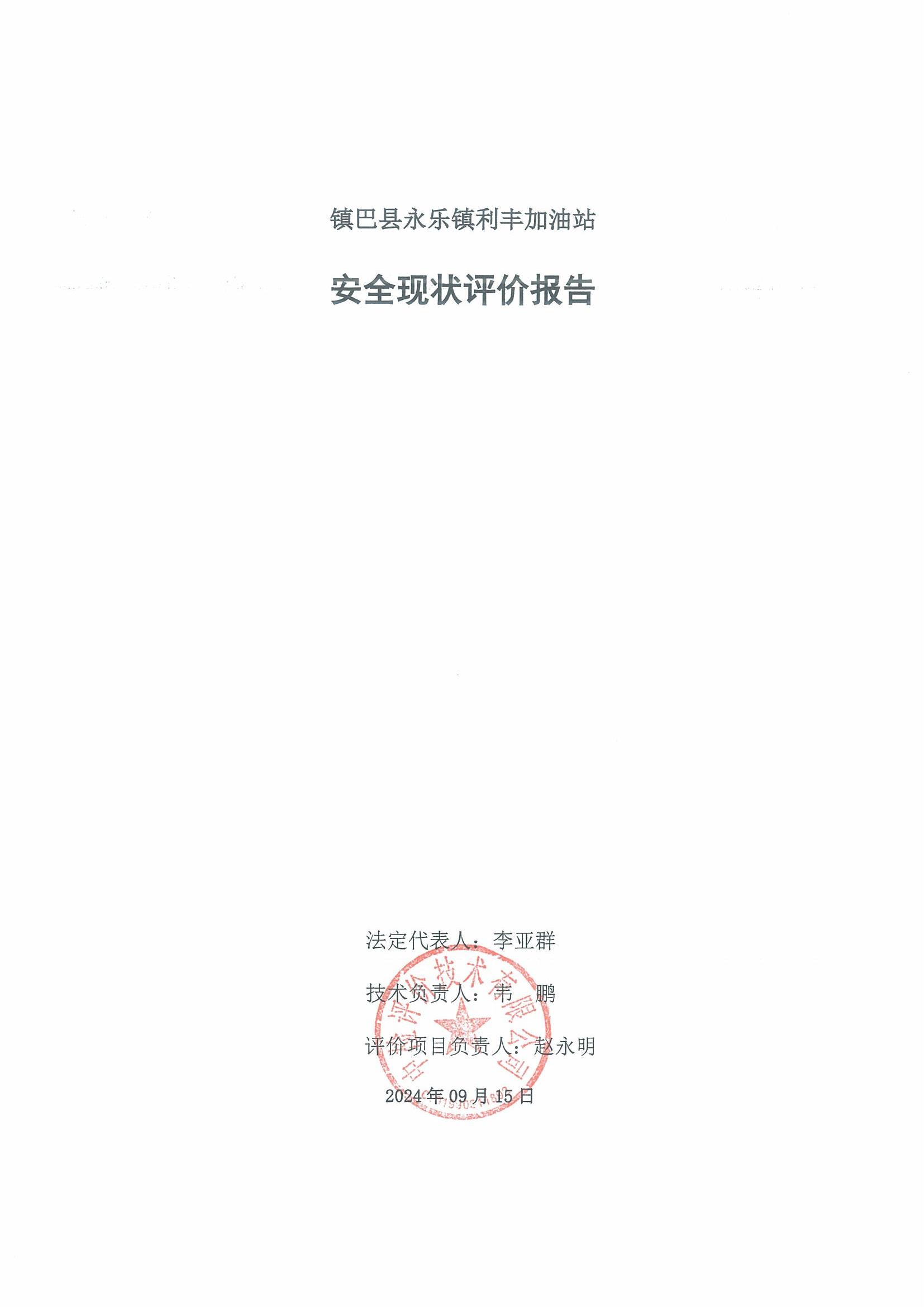 镇巴县永乐镇利丰加油站安全现状评价报告
