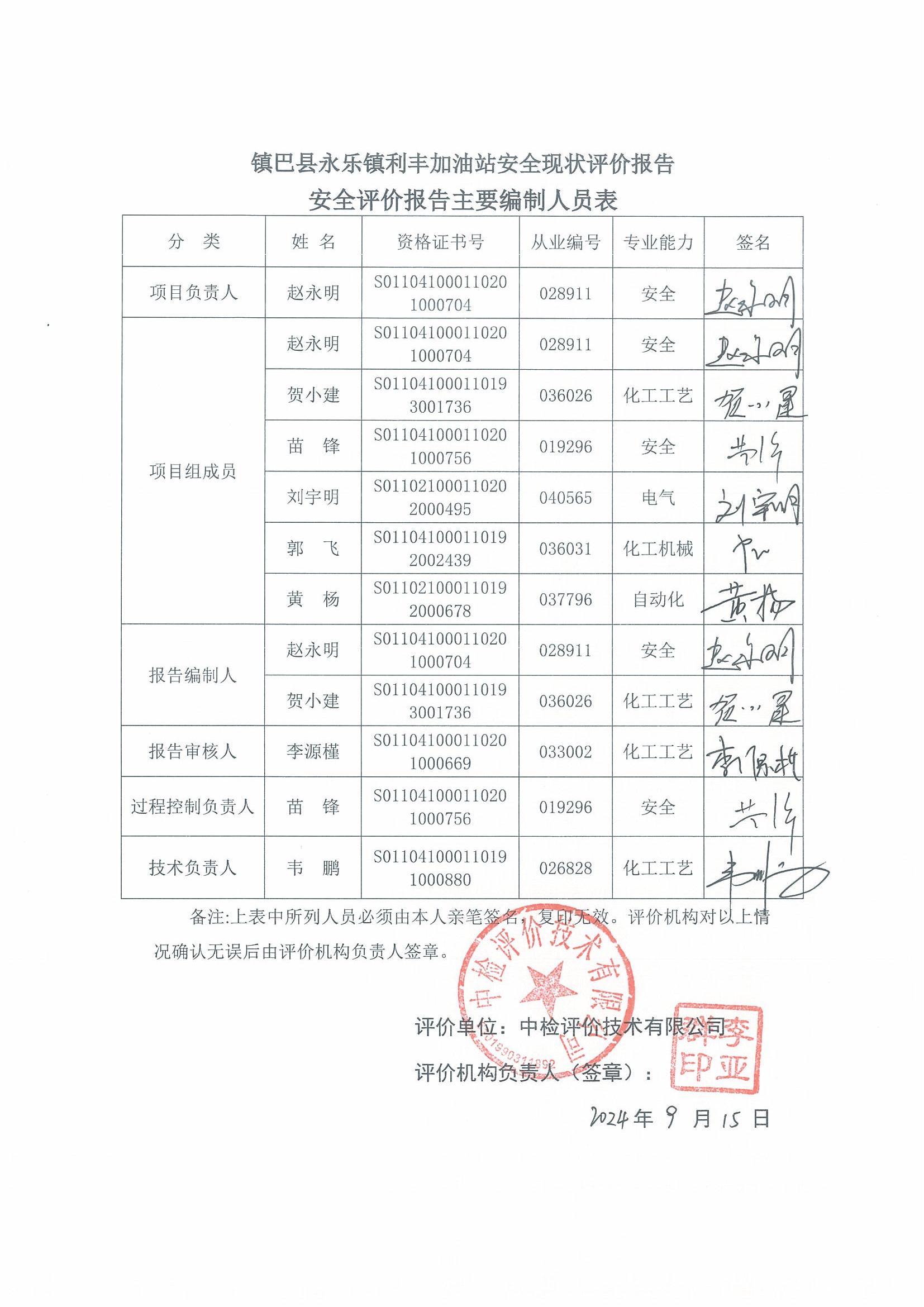 安全评价报告编制 | 报告编制人 | 报告审核人 | ||||||