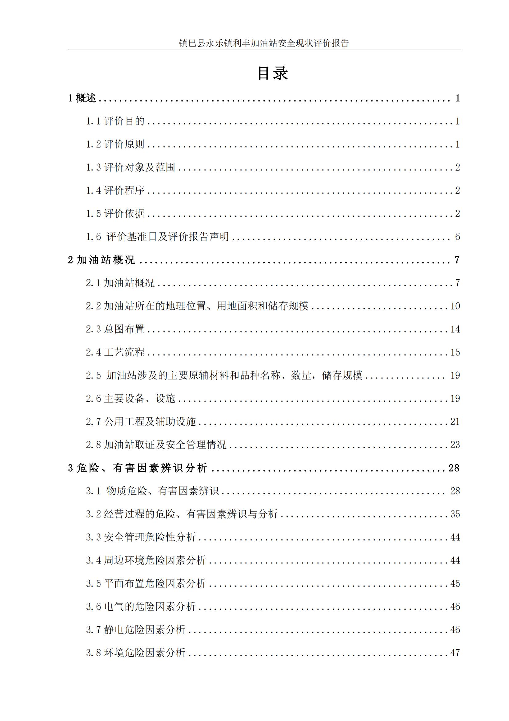 项目名称 | 镇巴县永乐镇利丰加油站安全现状评价报告 | |||||||