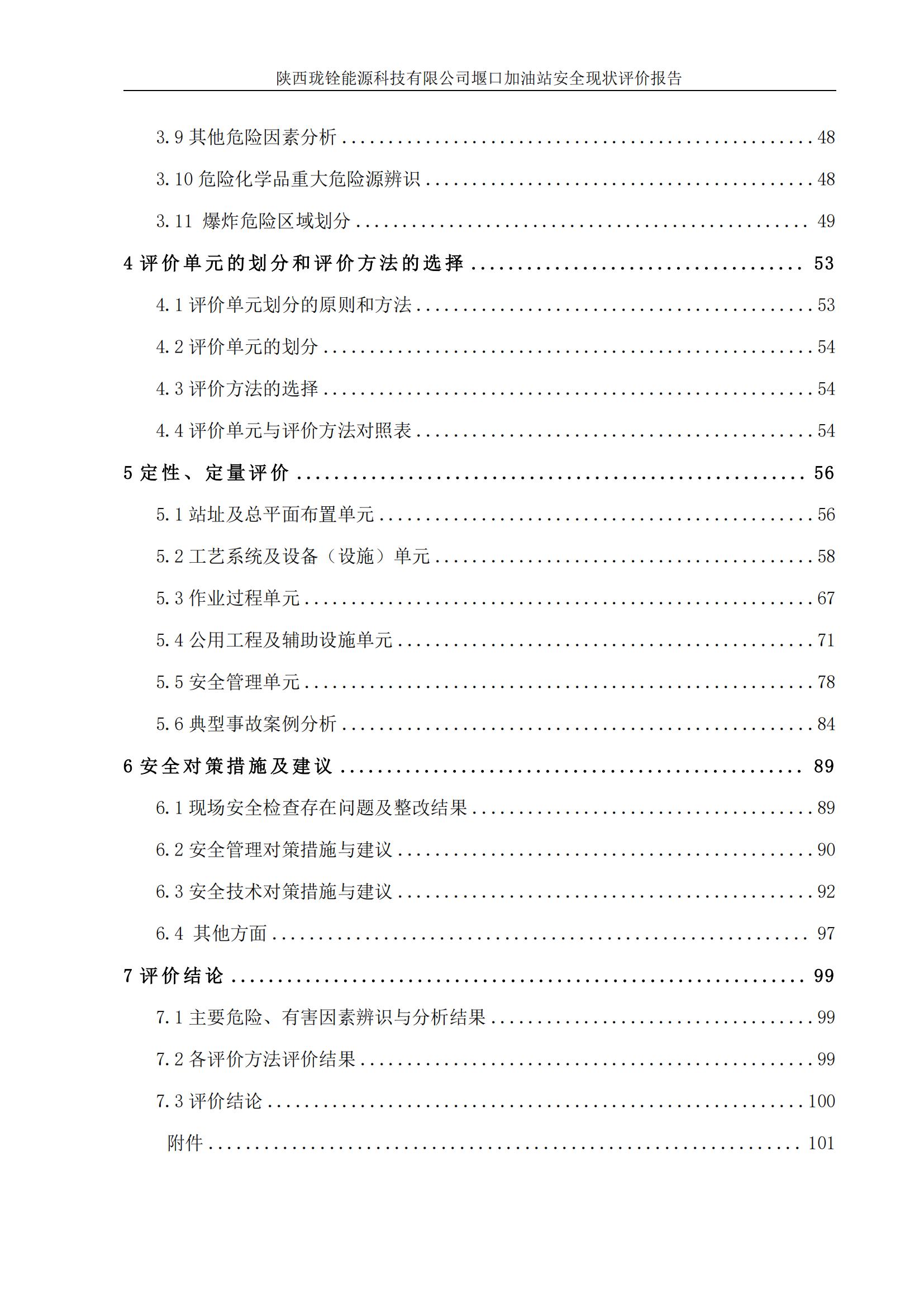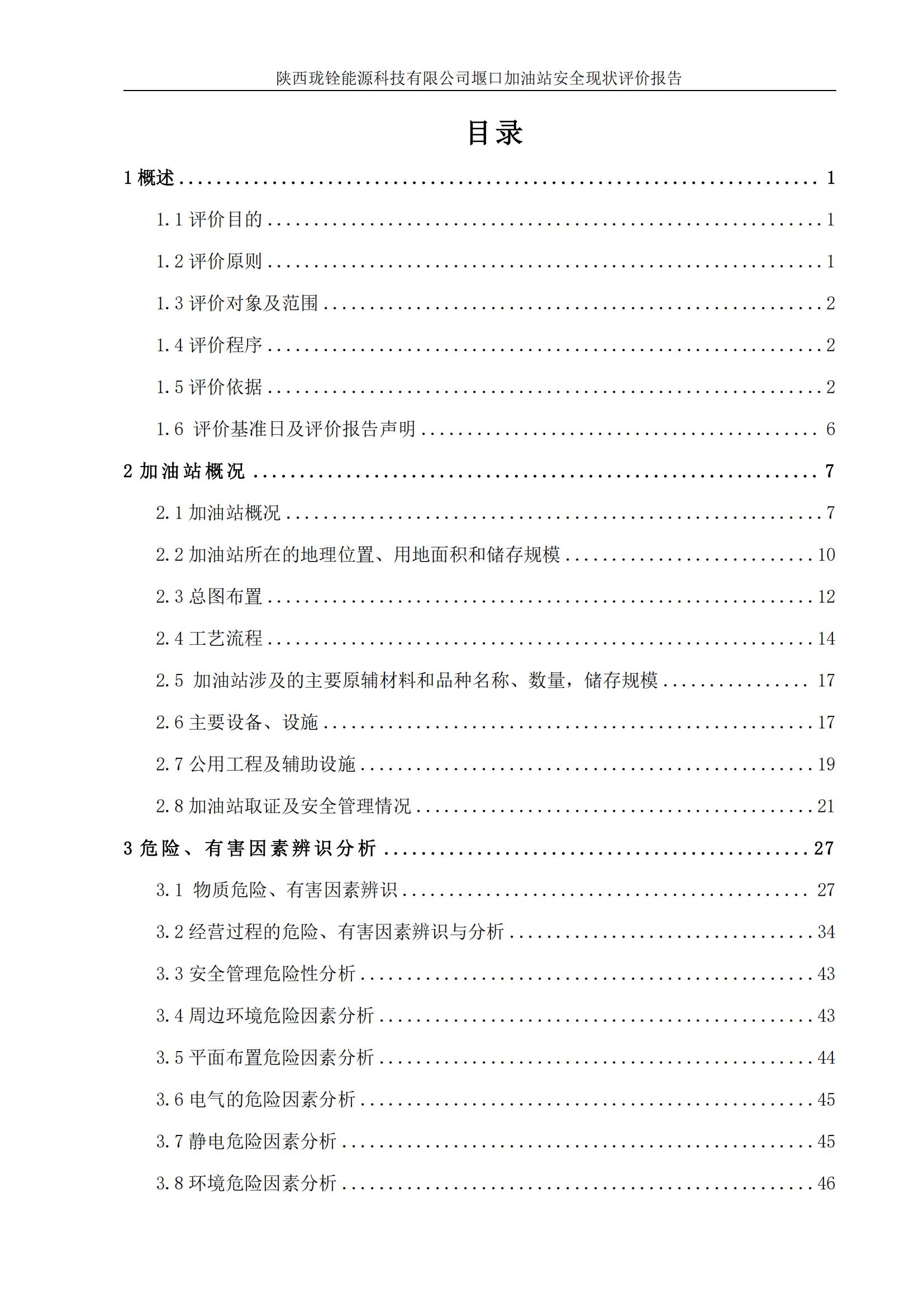 项目名称 | 陕西珑铨能源科技有限公司堰口加油站安全现状评价报告 | ||||||