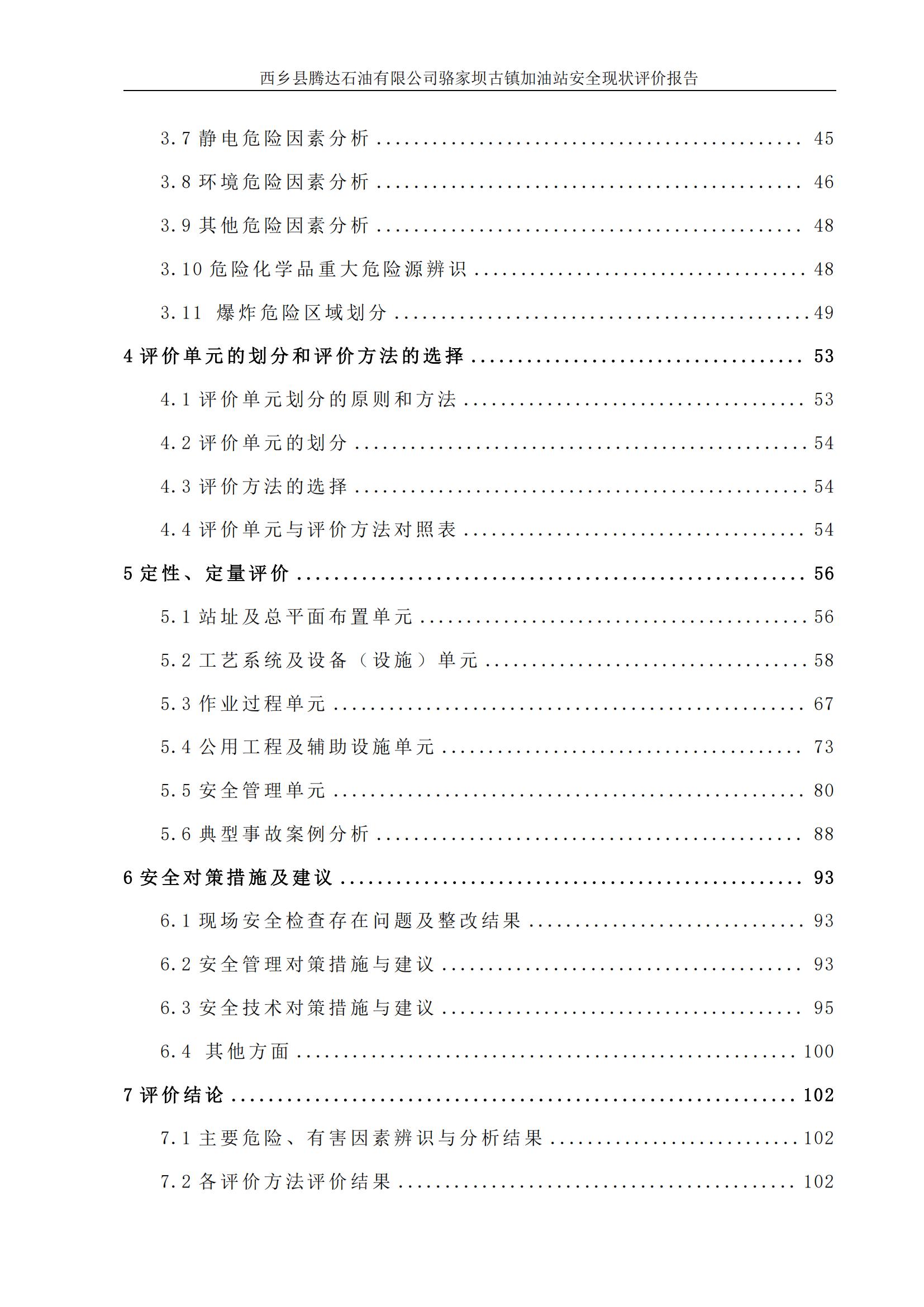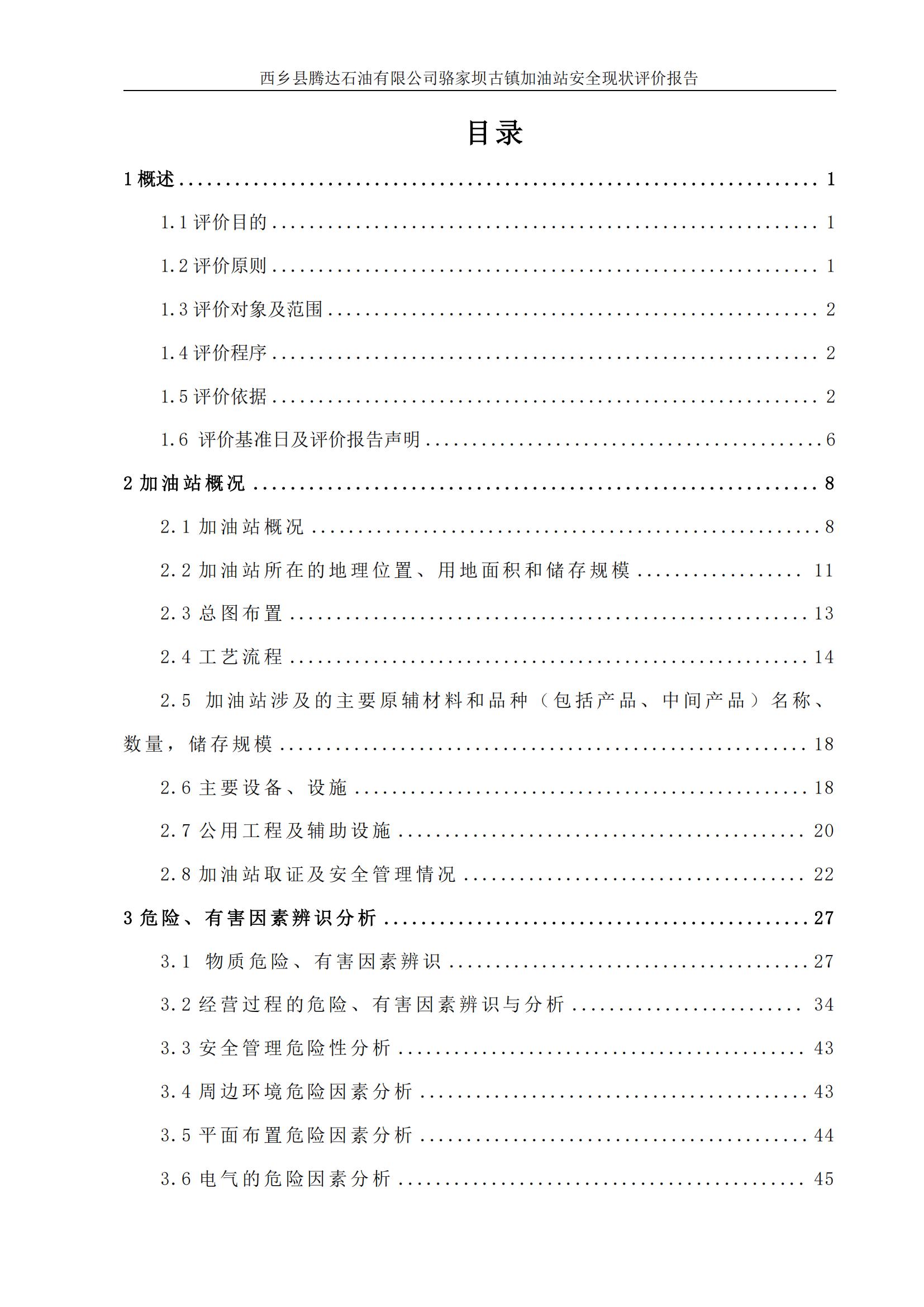 项目名称 | 西乡县腾达石油有限公司骆家坝古镇加油站安全现状评价报告 | ||||||