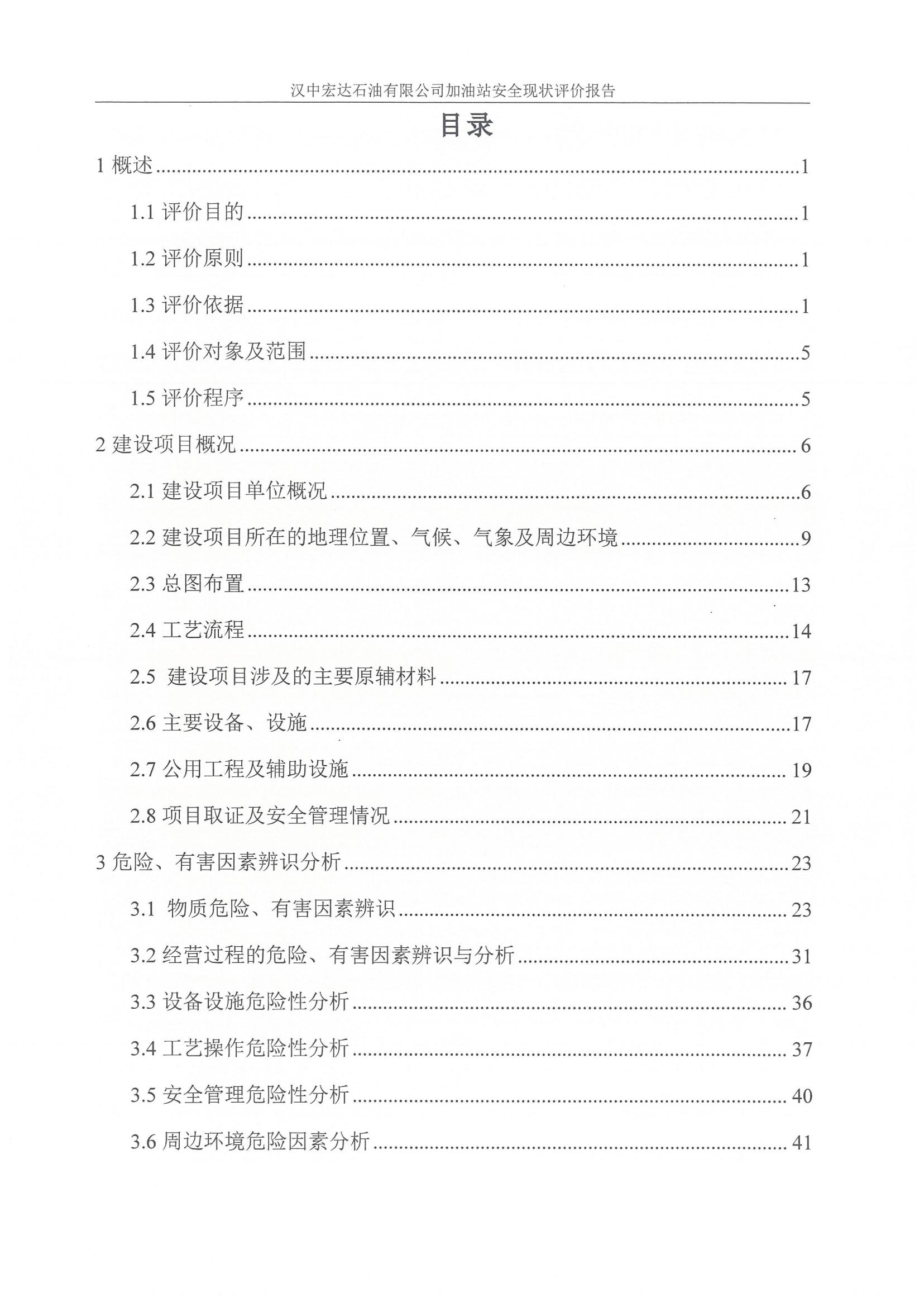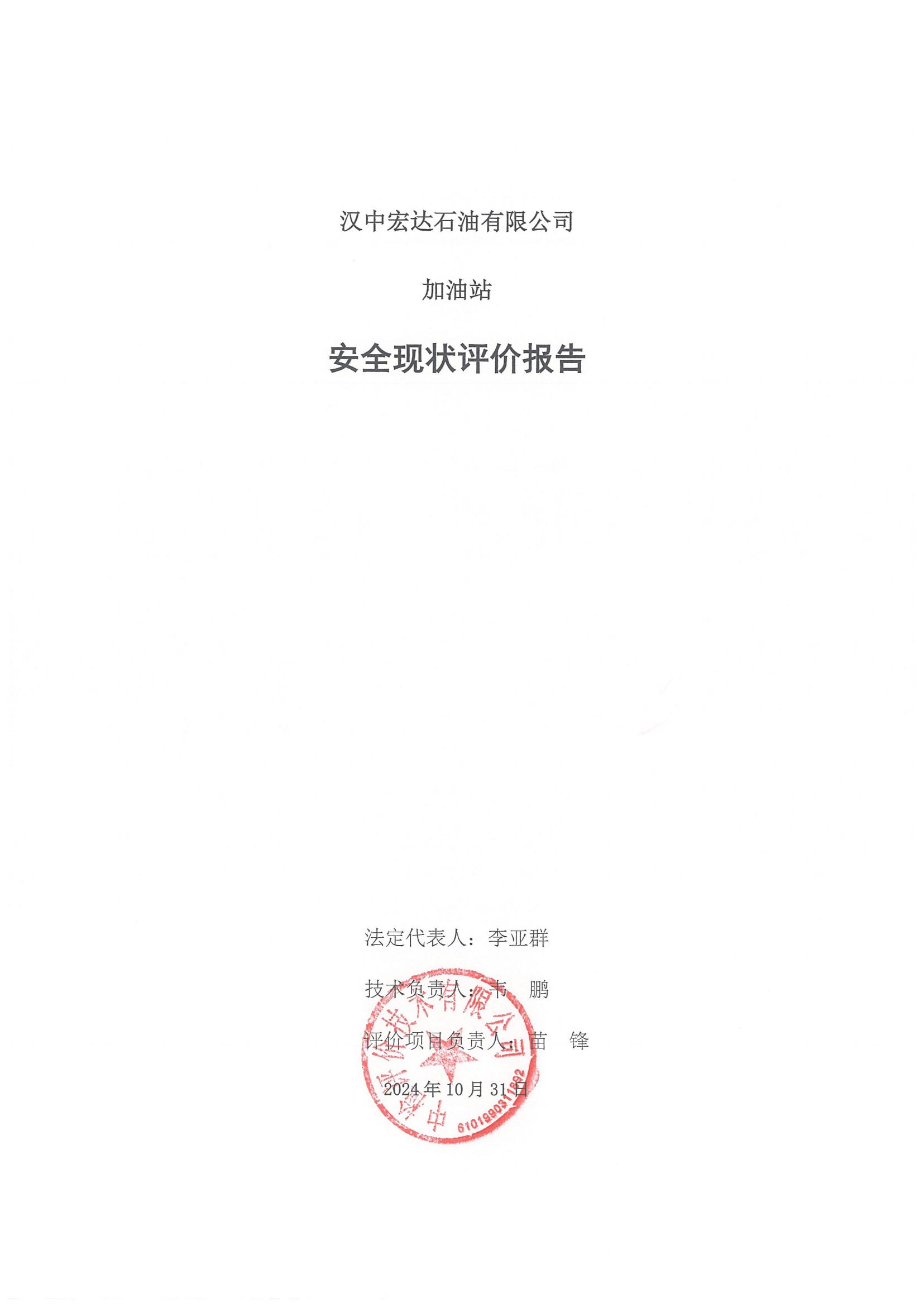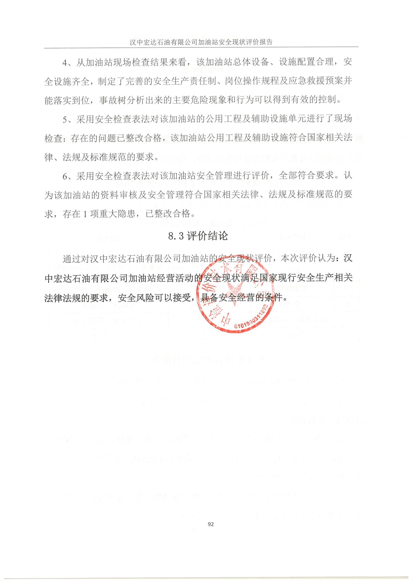 汉中宏达石油有限公司加油站安全现状评价报告