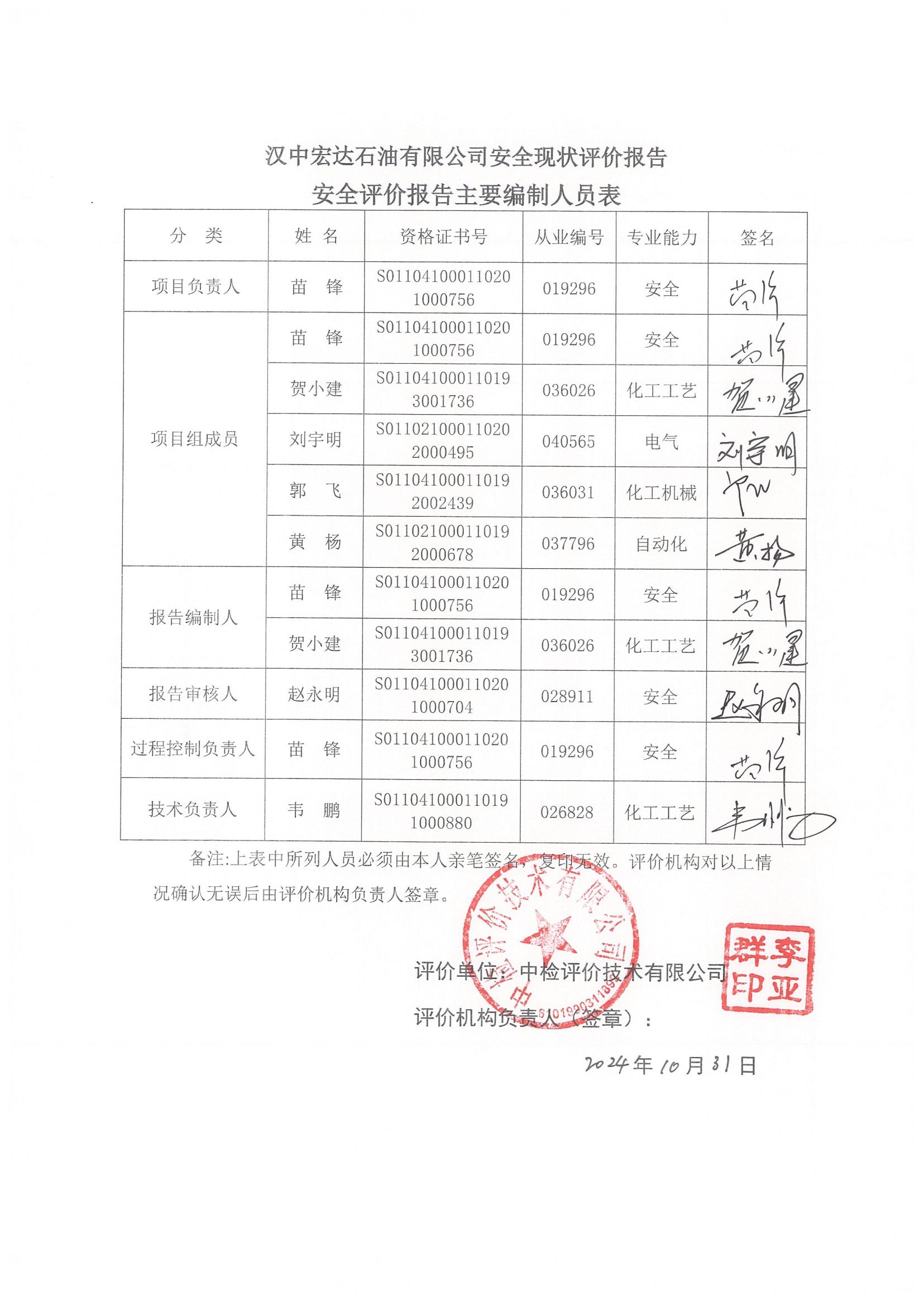 安全评价报告编制 | 报告编制人 | 报告审核人 | |||||