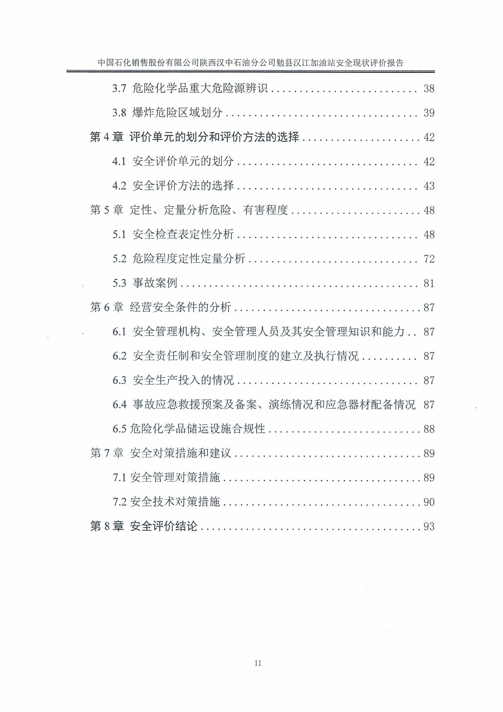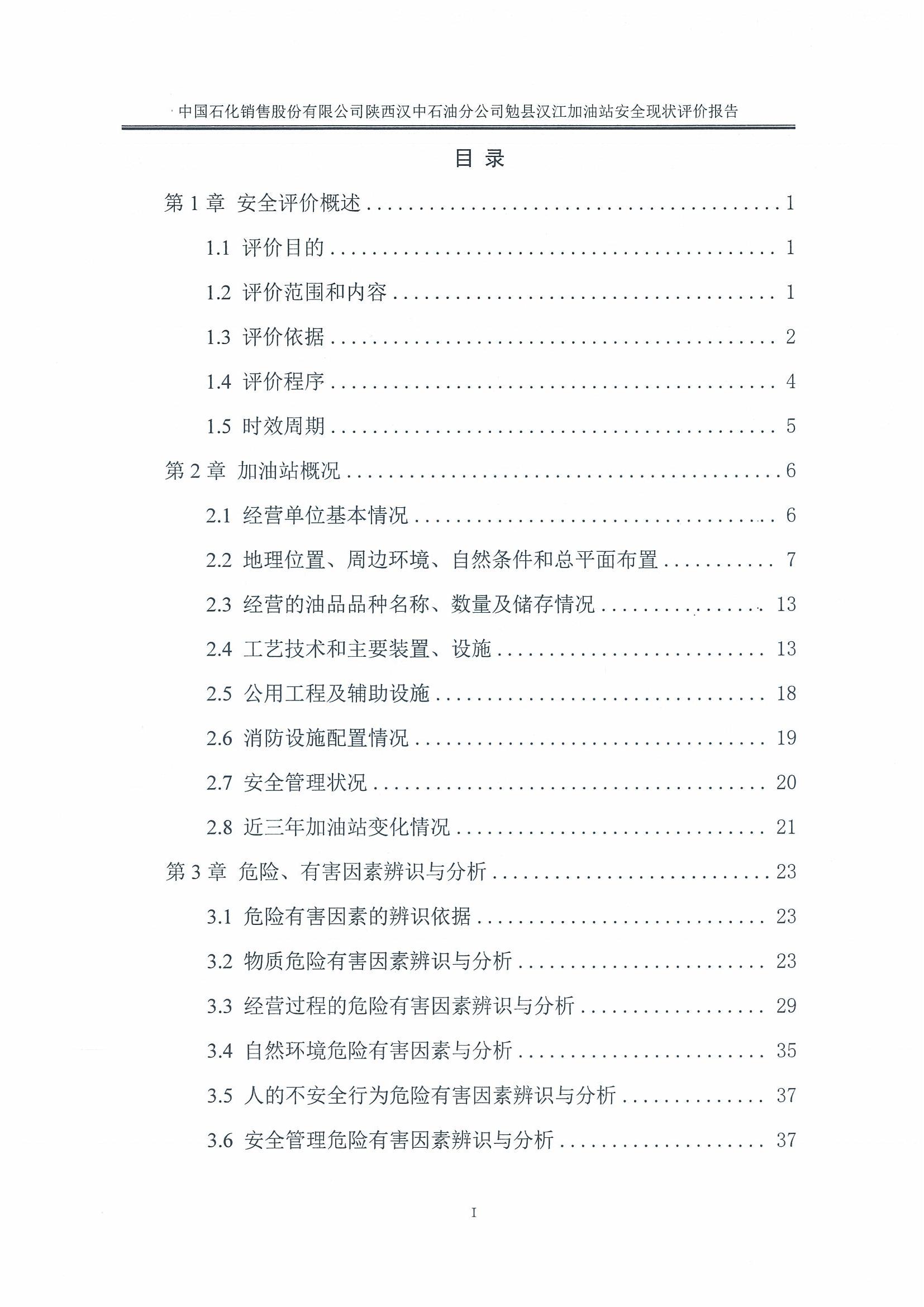 项目名称 | 中国石化销售股份有限公司陕西汉中石油分公司勉县汉江加油站安全现状评价报告 | ||||||