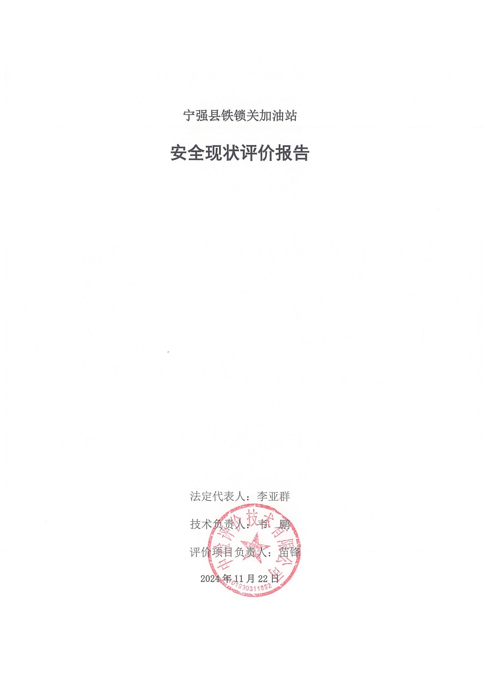 宁强县铁锁关加油站安全现状评价报告