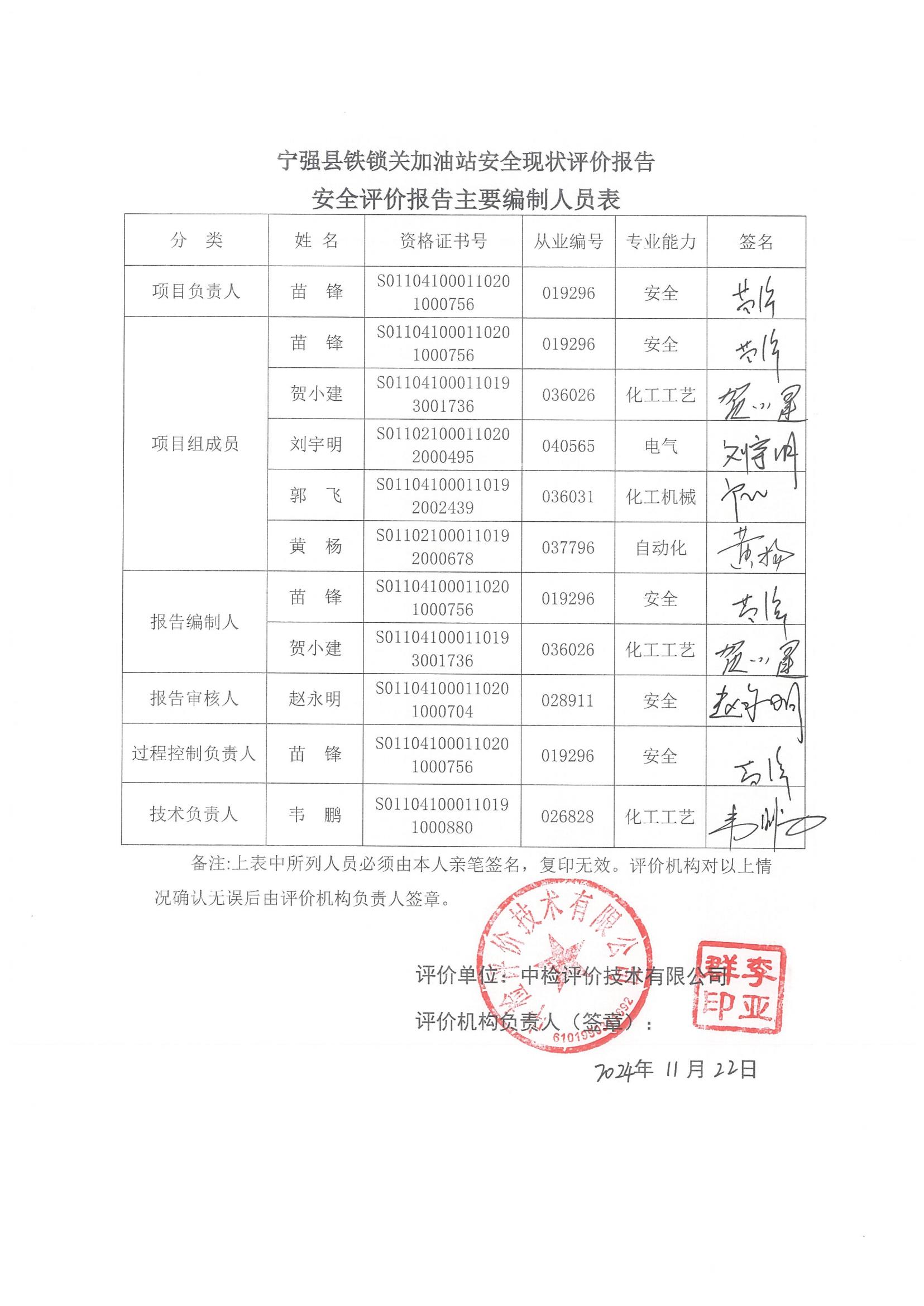 安全评价项目管理 | 项目组长 | 技术负责人 | 过程控制负责人 | ||||