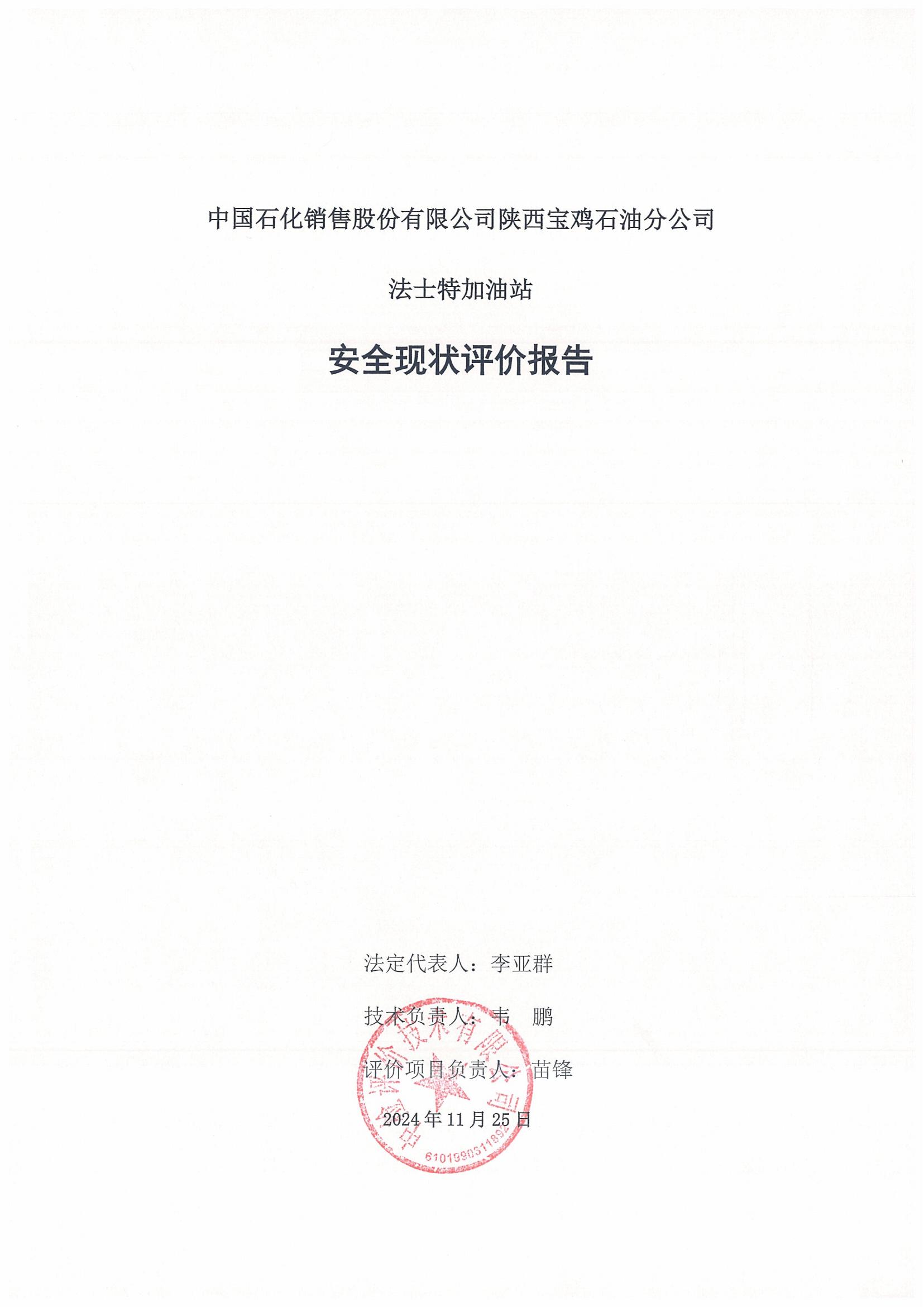 中国石化销售股份有限公司陕西宝鸡石油分公司法士特加油站安全现状评价报告