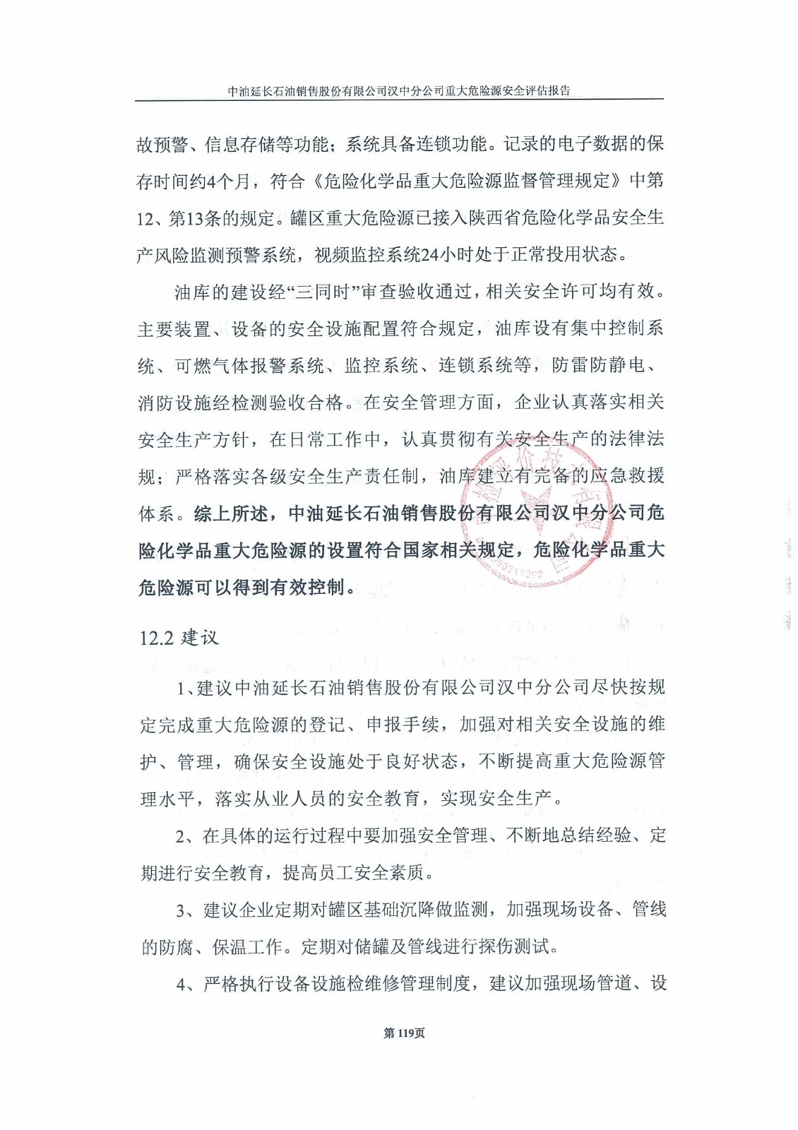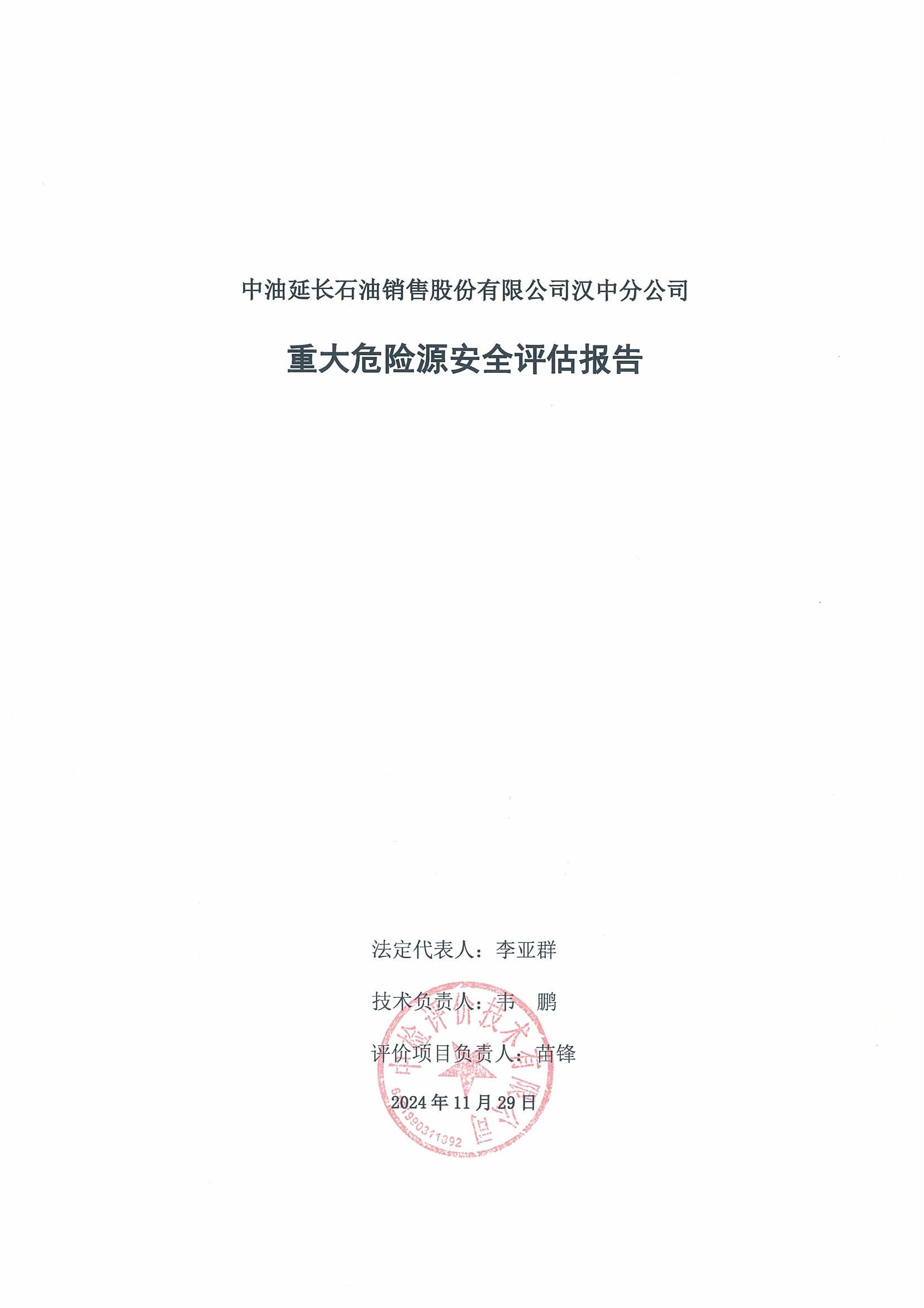 中油延长石油销售股份有限公司汉中分公司重大危险源安全评估报告
