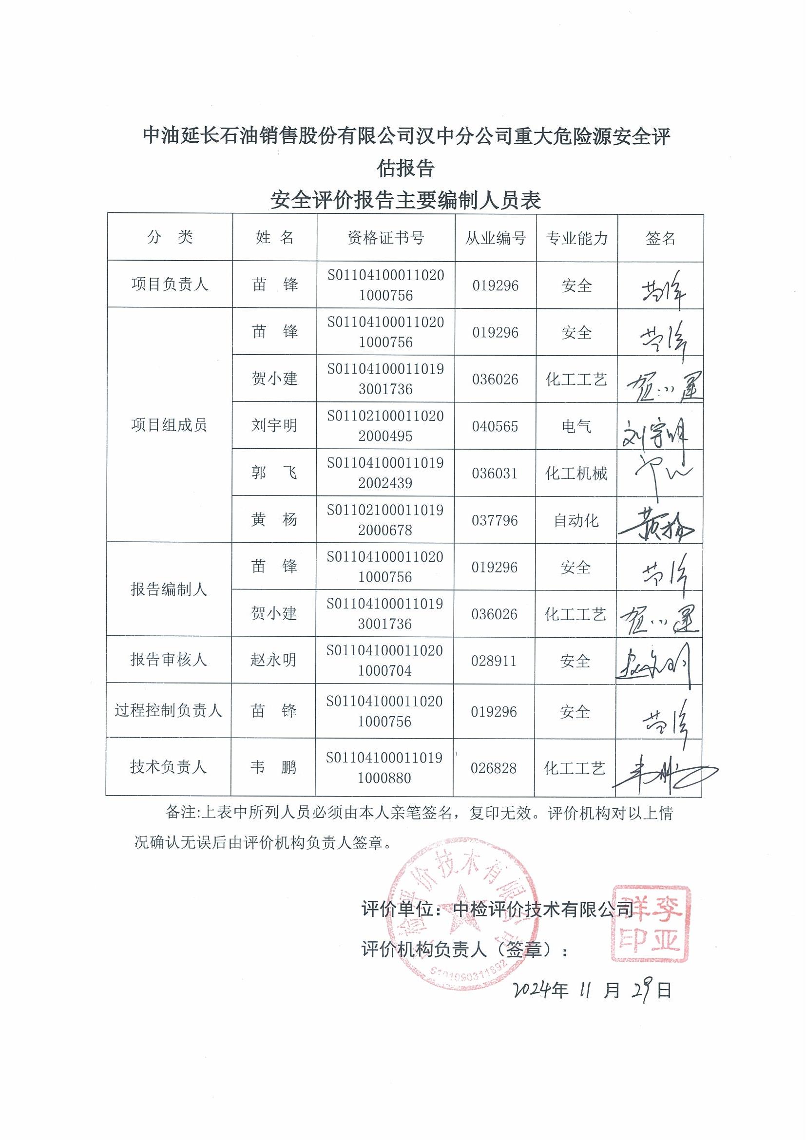 安全评价报告编制 | 报告编制人 | 报告审核人 | |||||