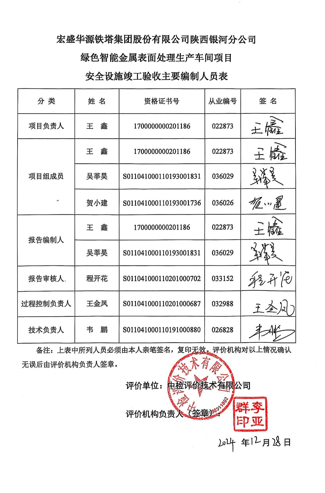 安全评价项目管理 | 项目组长 | 技术负责人 | 过程控制负责人 | ||||