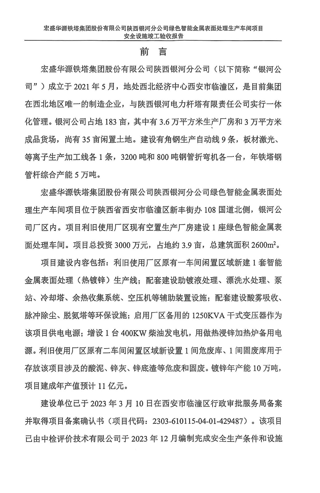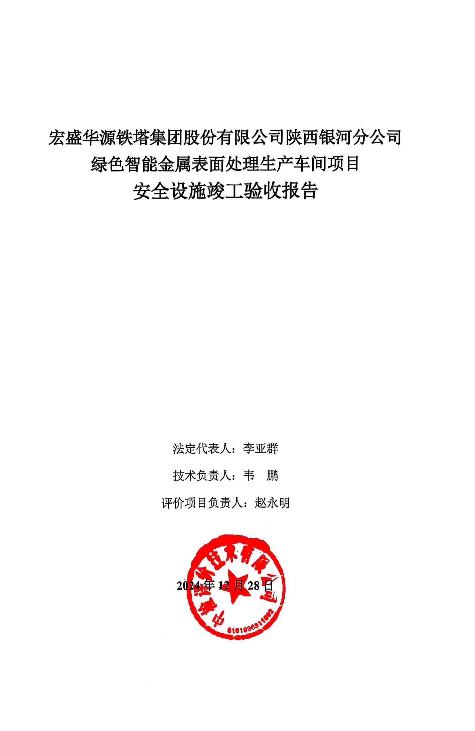 宏盛华源铁塔集团股份有限公司陕西银河分公司绿色智能金属表面处理生产车间项目安全设施竣工验收报告