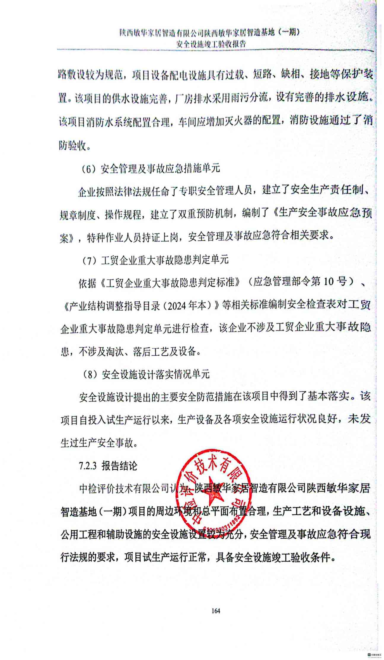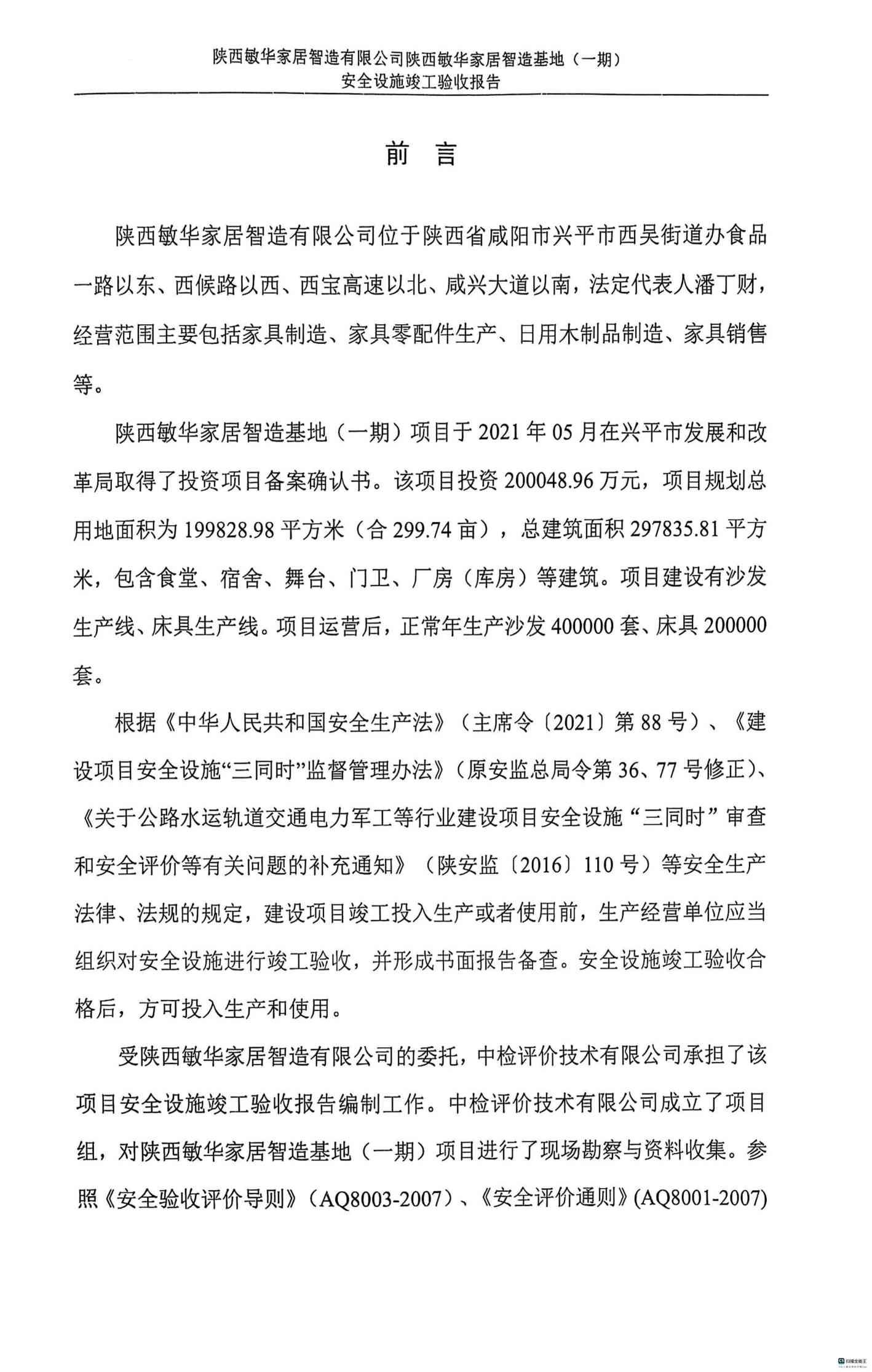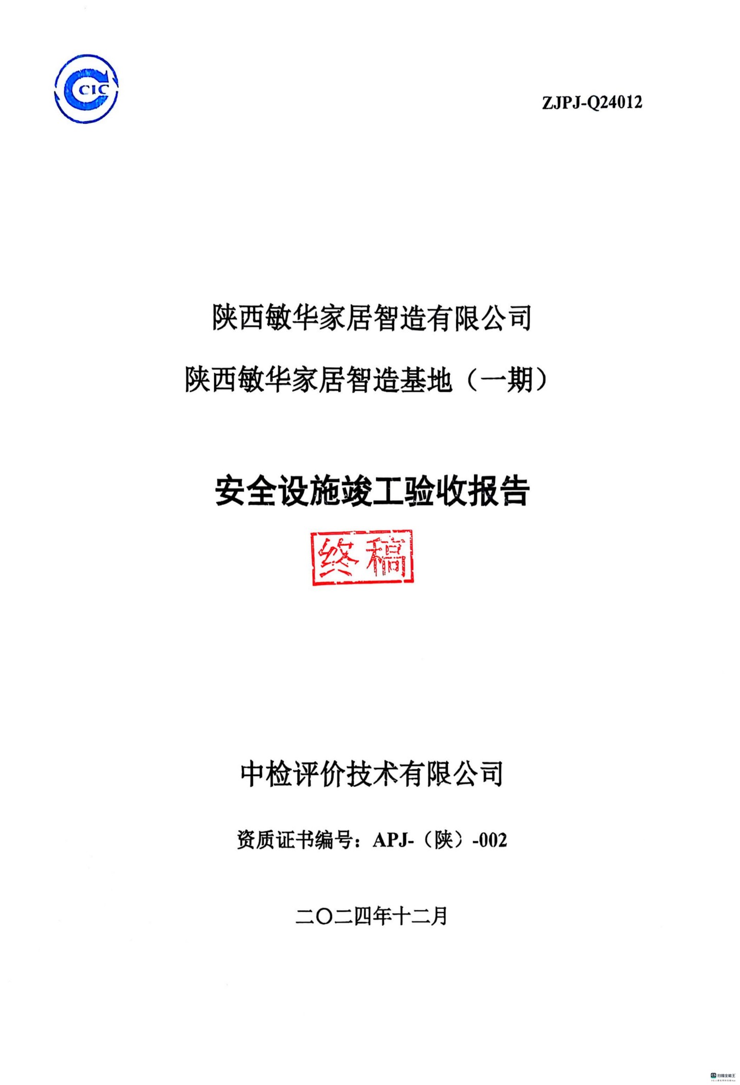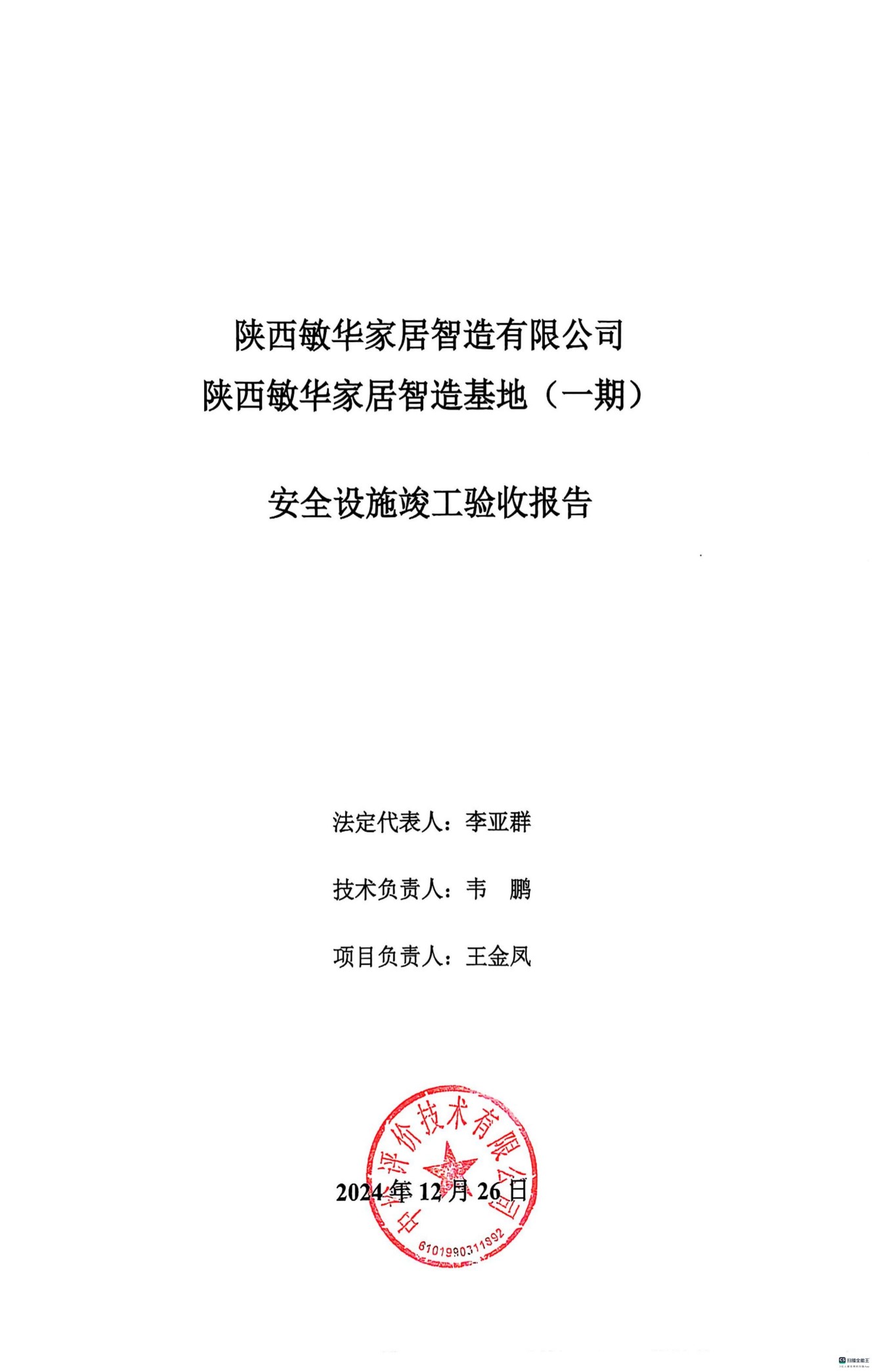 陕西敏华家居智造有限公司陕西敏华家居智造基地(一期)安全设施竣工验收报告