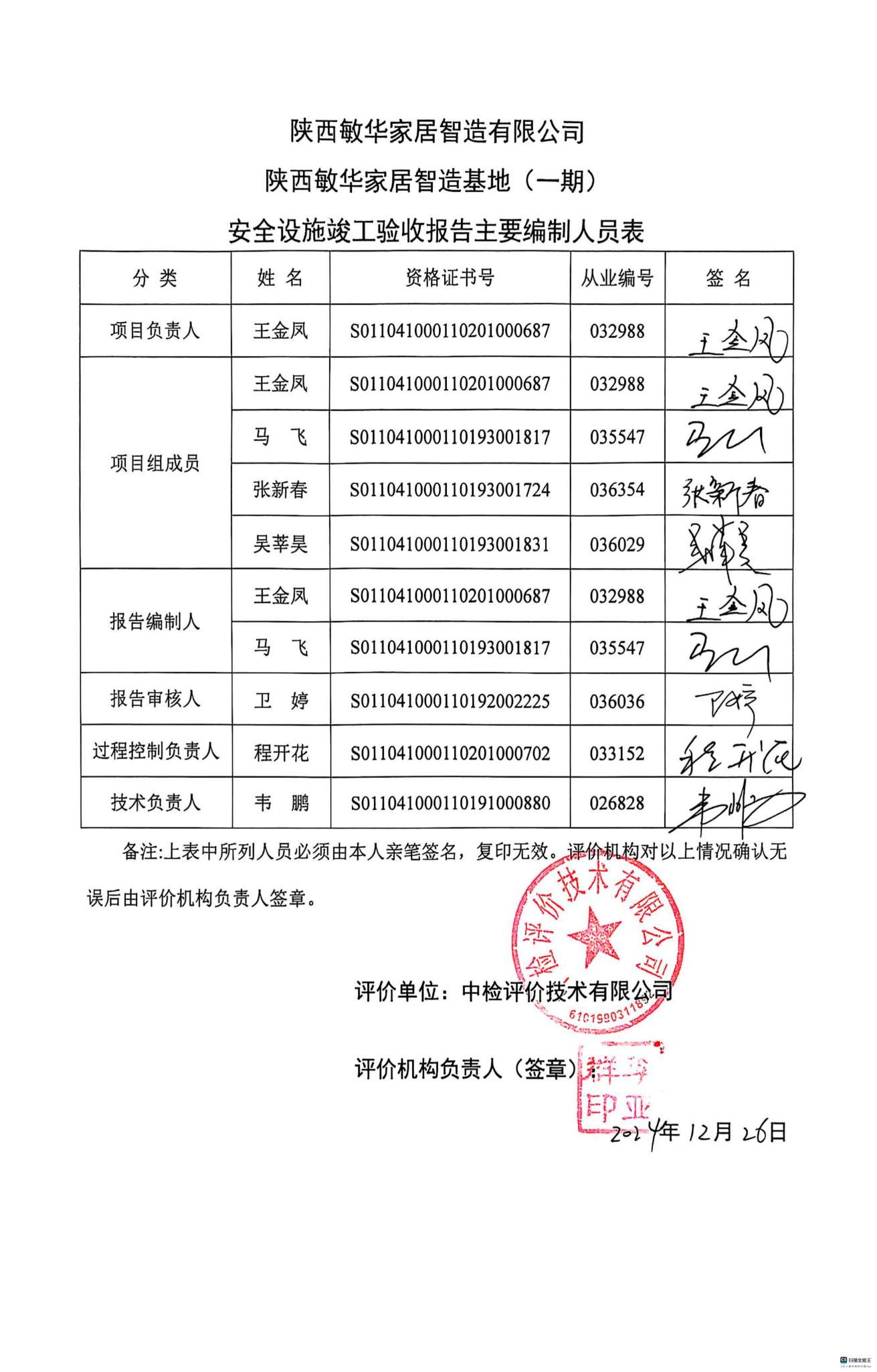 项目名称 | 陕西敏华家居智造有限公司陕西敏华家居智造基地(一期)安全设施竣工验收报告 | ||||||