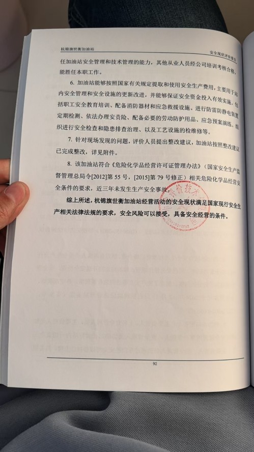 杭锦旗世衡加油站安全现状评价