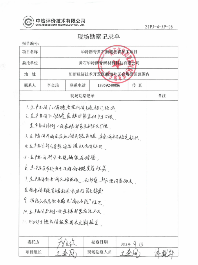 项目名称 | 黄石华特沥青新材料科技有限公司华特沥青黄石新港沥青加工项目安全验收评价 | |||||