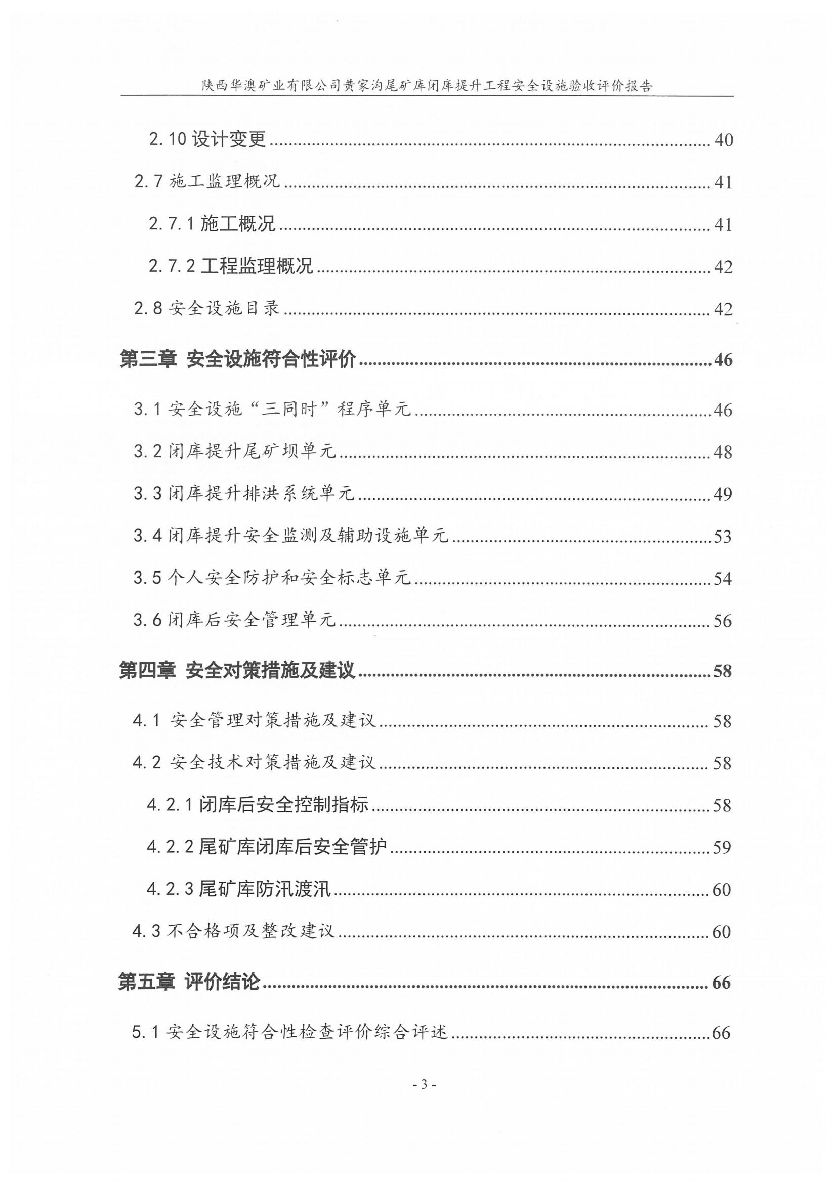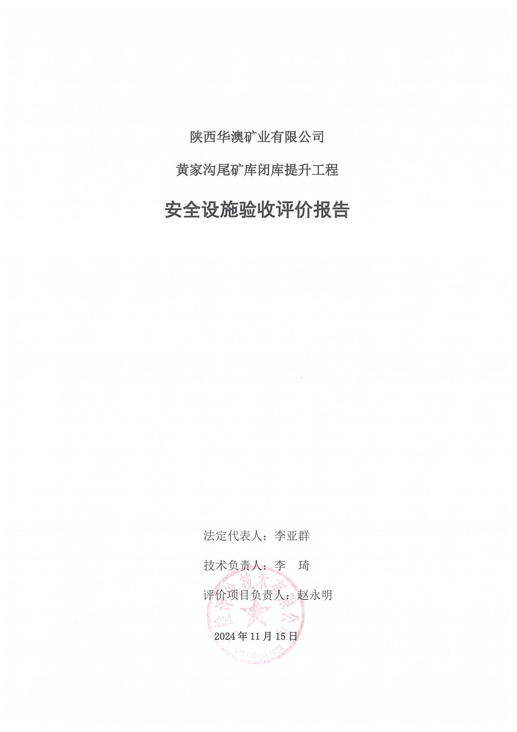 陕西华澳矿业有限公司黄家沟尾矿库闭库提升工程安全设施验收评价