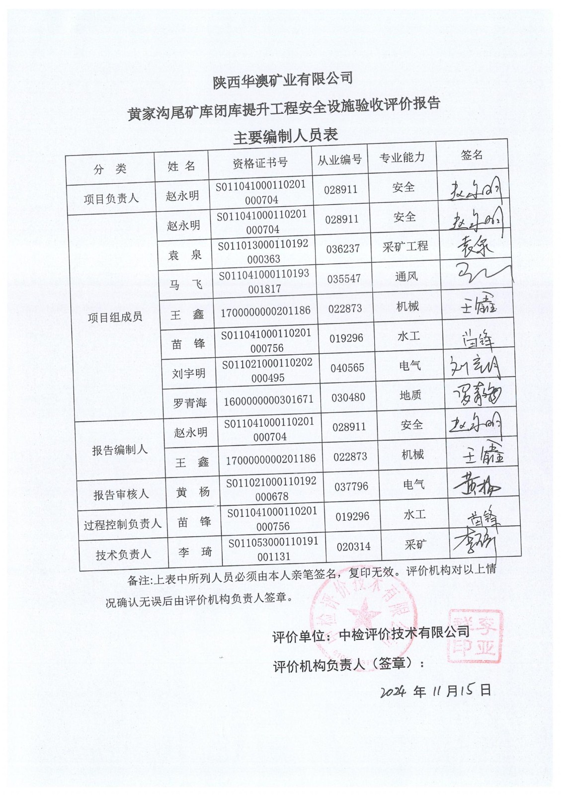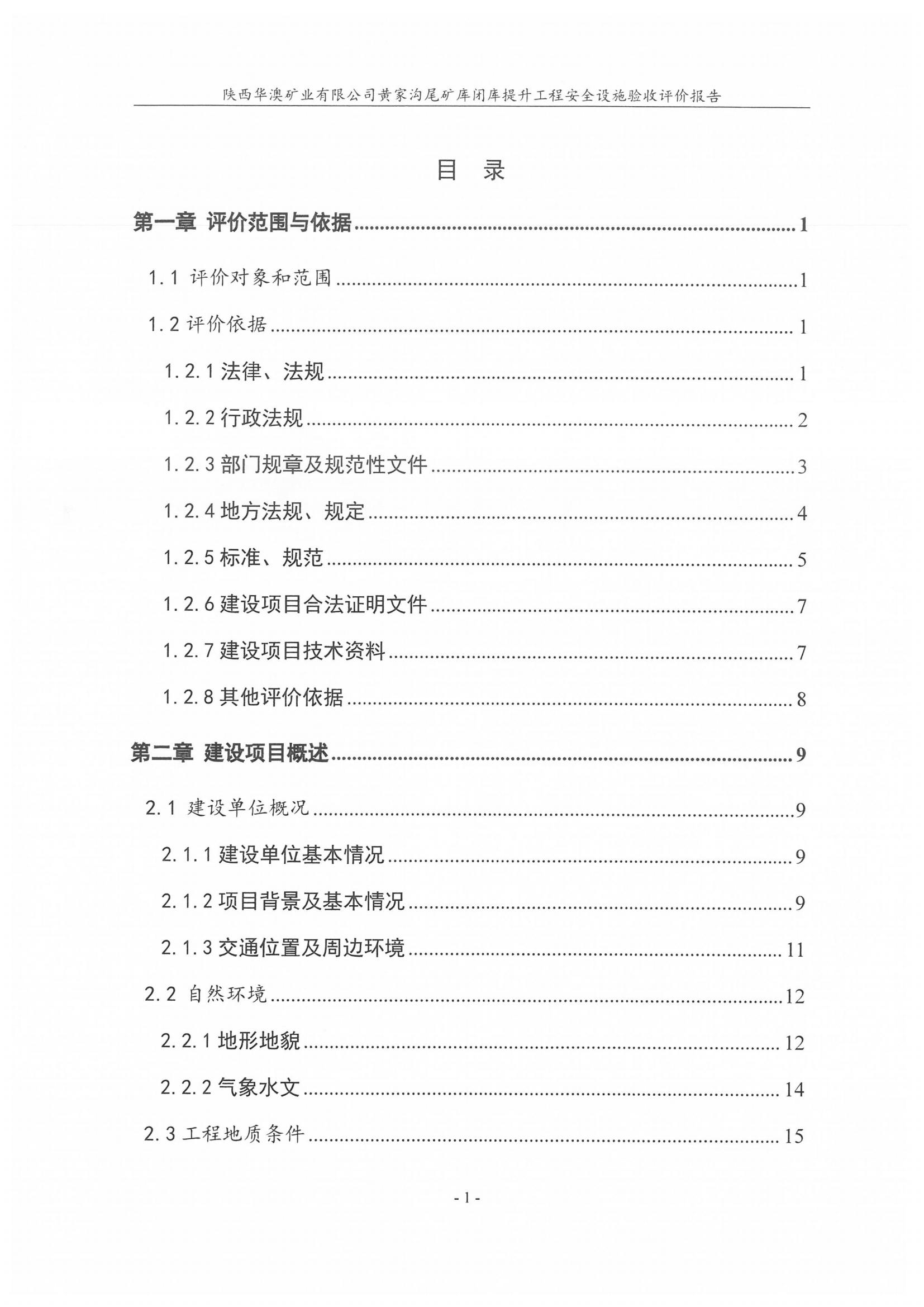 项目名称 | 陕西华澳矿业有限公司黄家沟尾矿库闭库提升工程安全设施验收评价 | ||||||