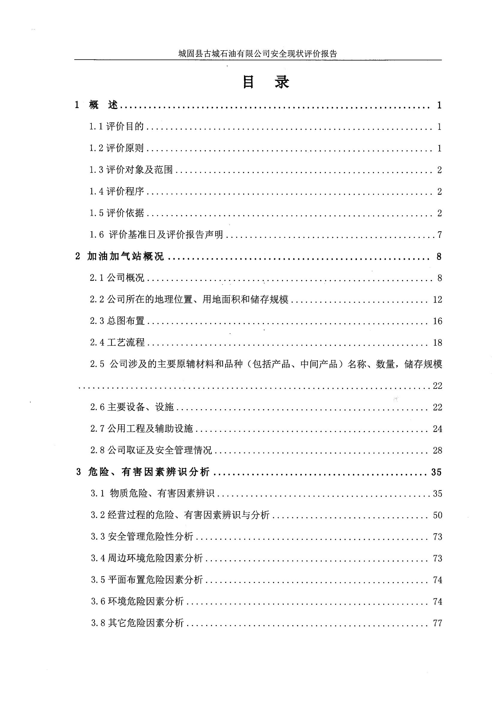 项目名称 | 城固县古城石油有限公司安全现状评价报告 | ||||||