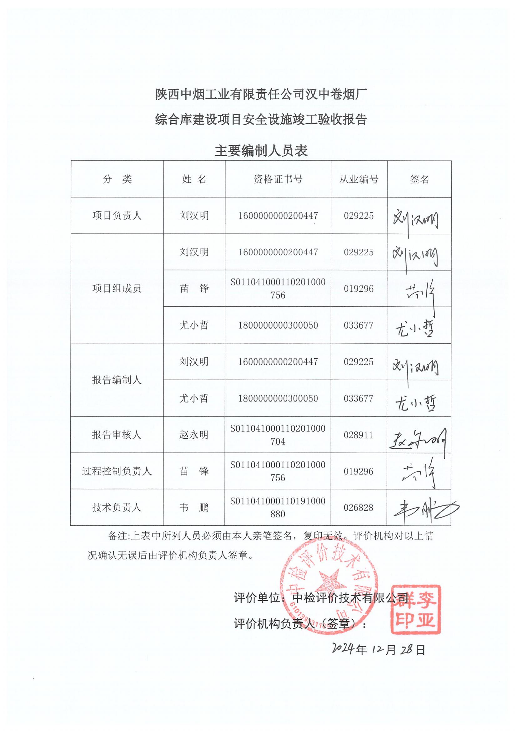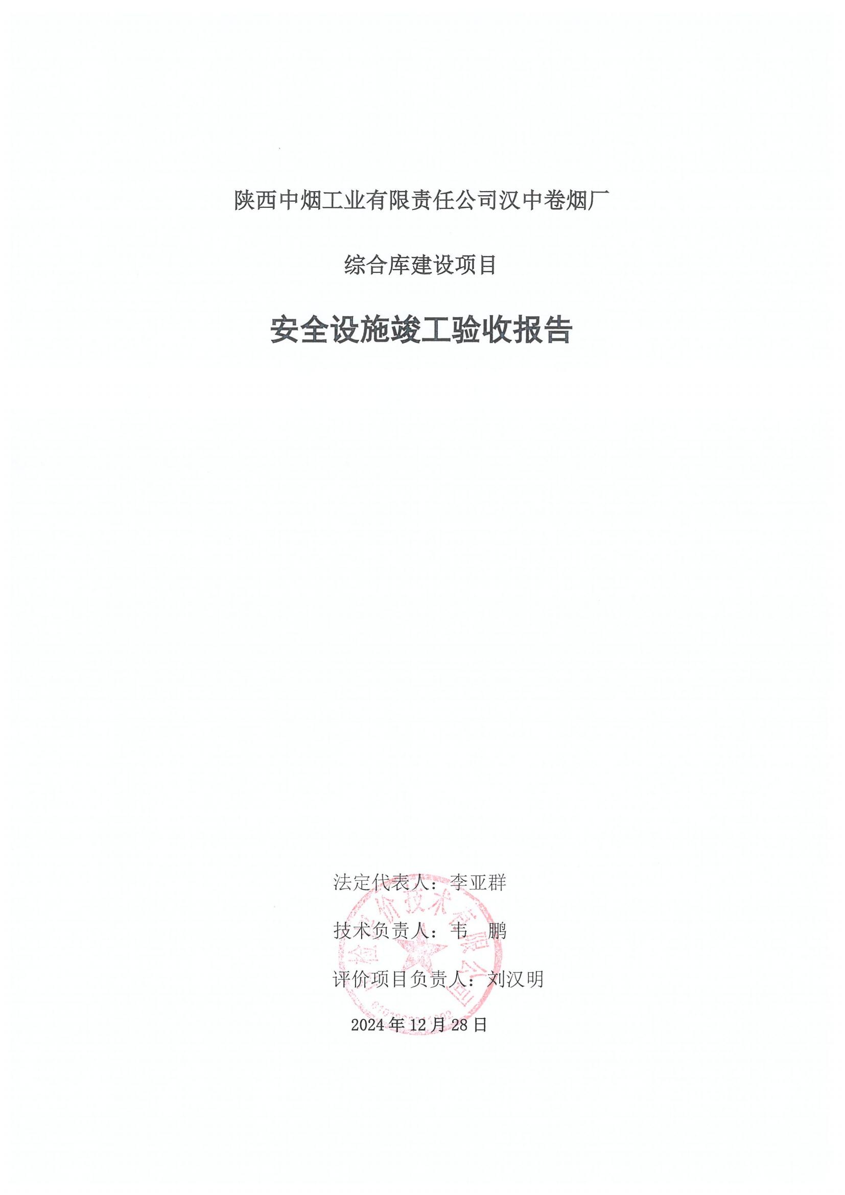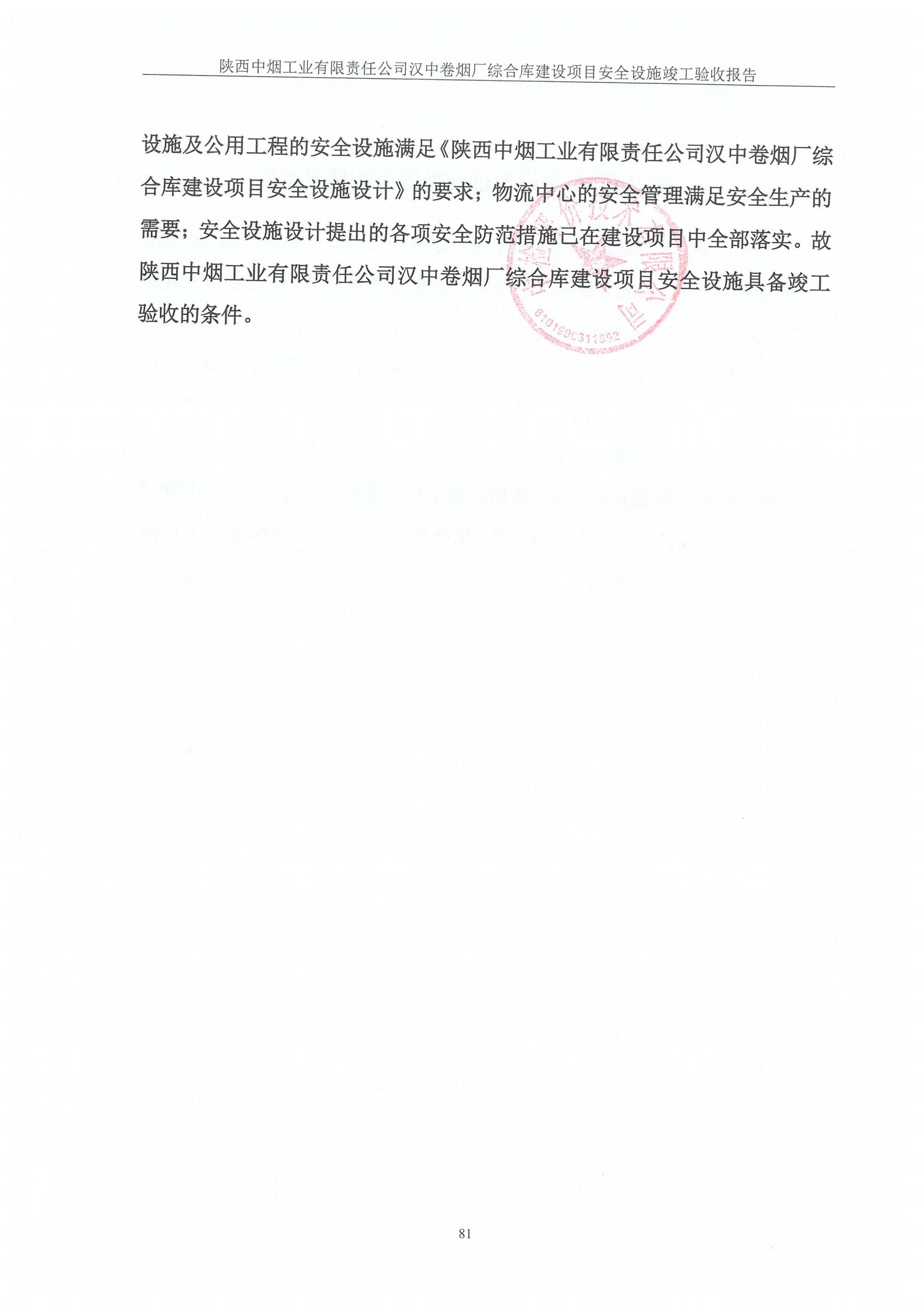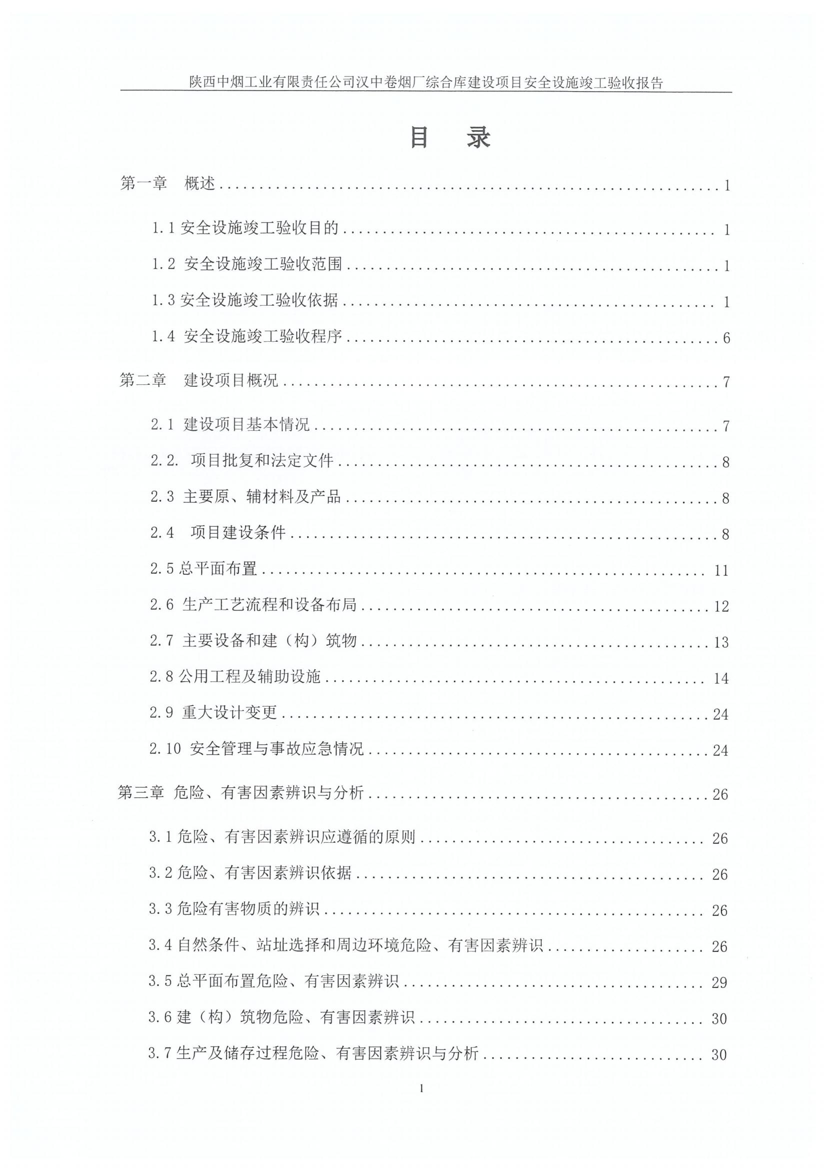 项目名称 | 陕西中烟工业有限责任公司 汉中卷烟厂综合库建设项目安全设施竣工验收报告 | ||||||