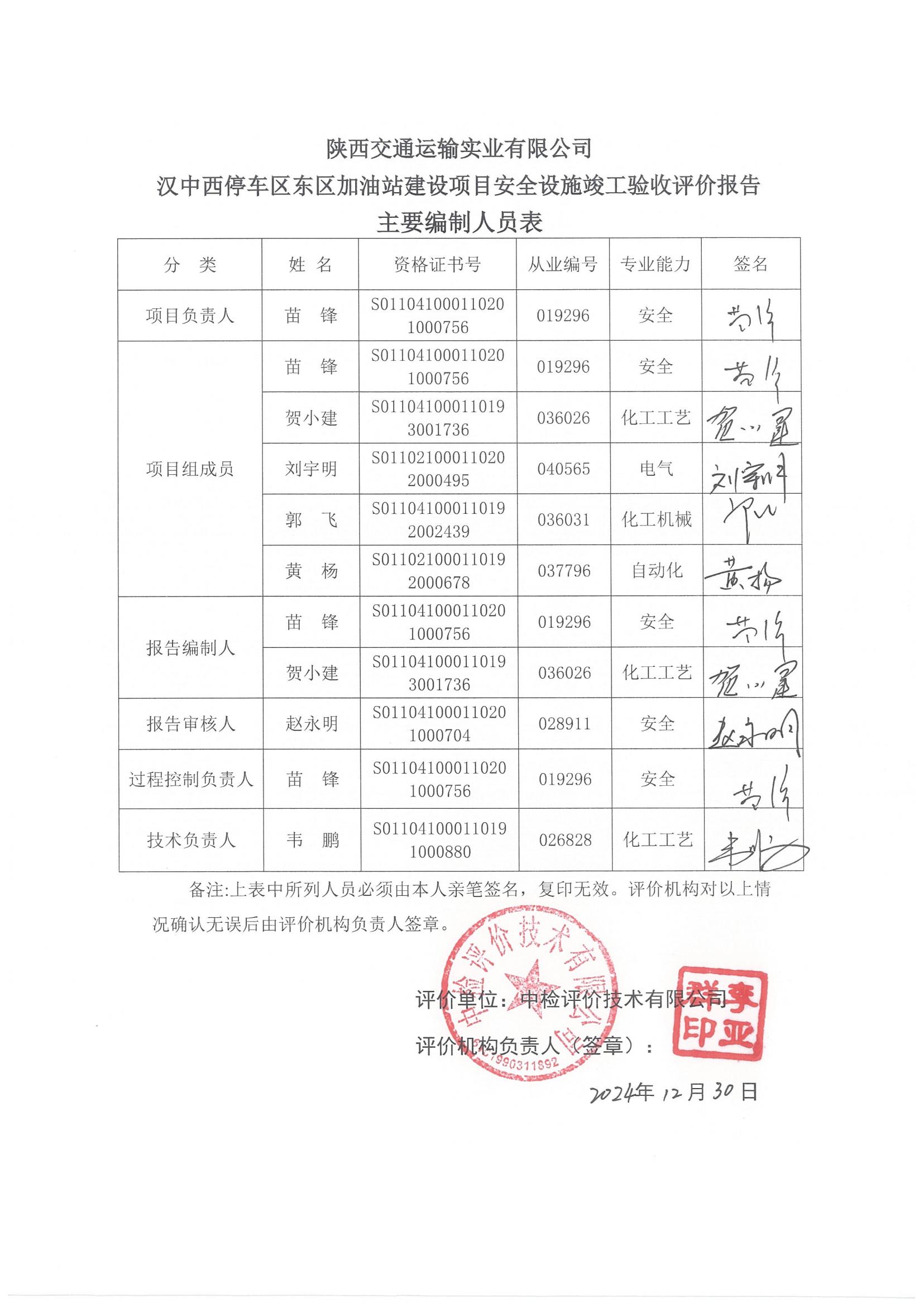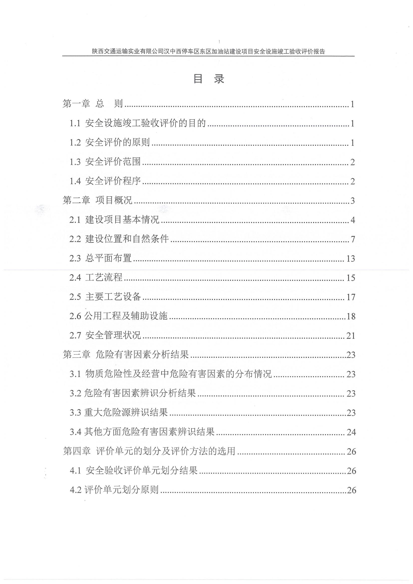 项目名称 | 陕西交通运输实业有限公司汉中西停车区东区加油站安全设施竣工验收评价报告 | ||||||