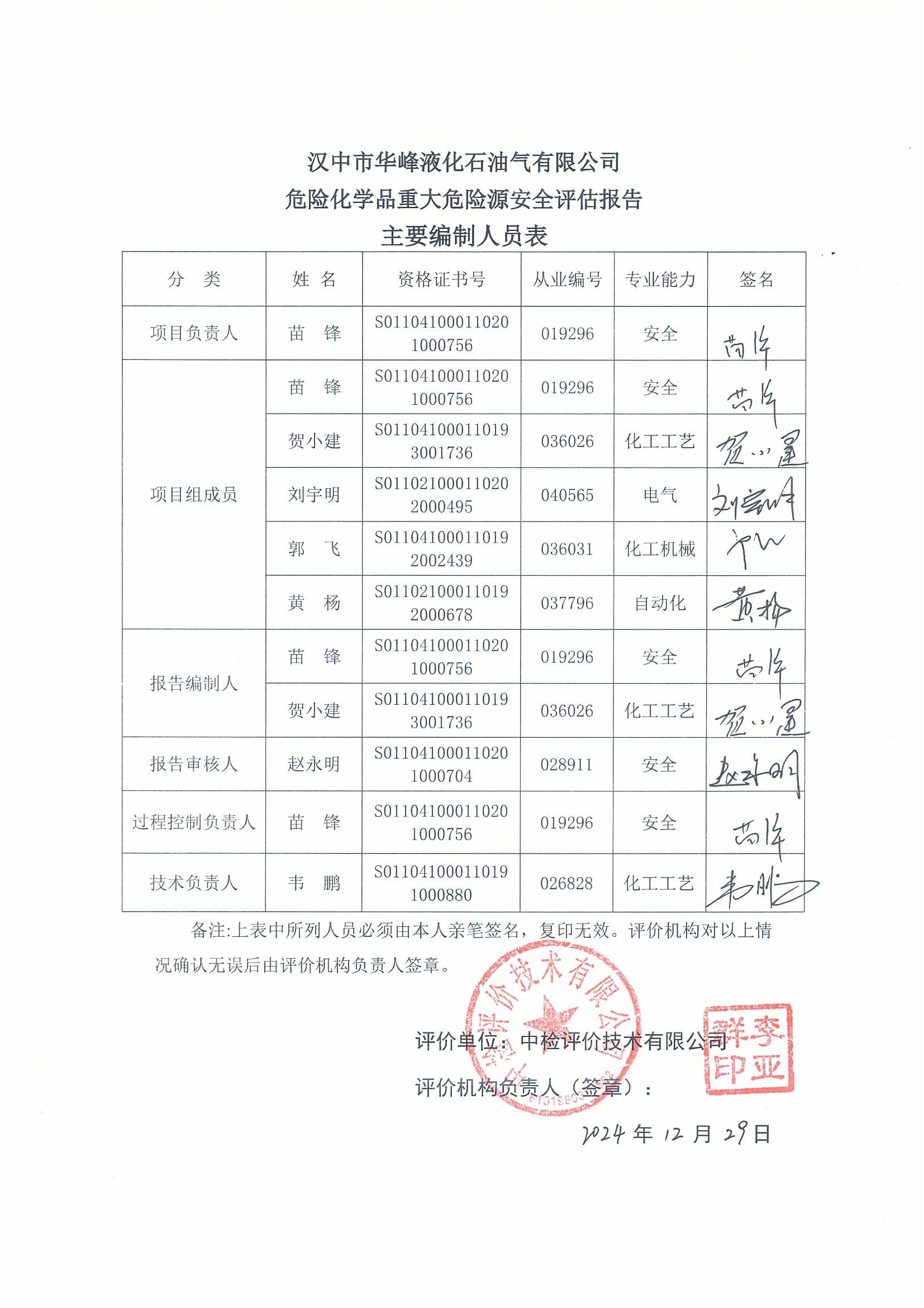 汉中市华峰液化石油气有限公司重大危险源安全评估报告