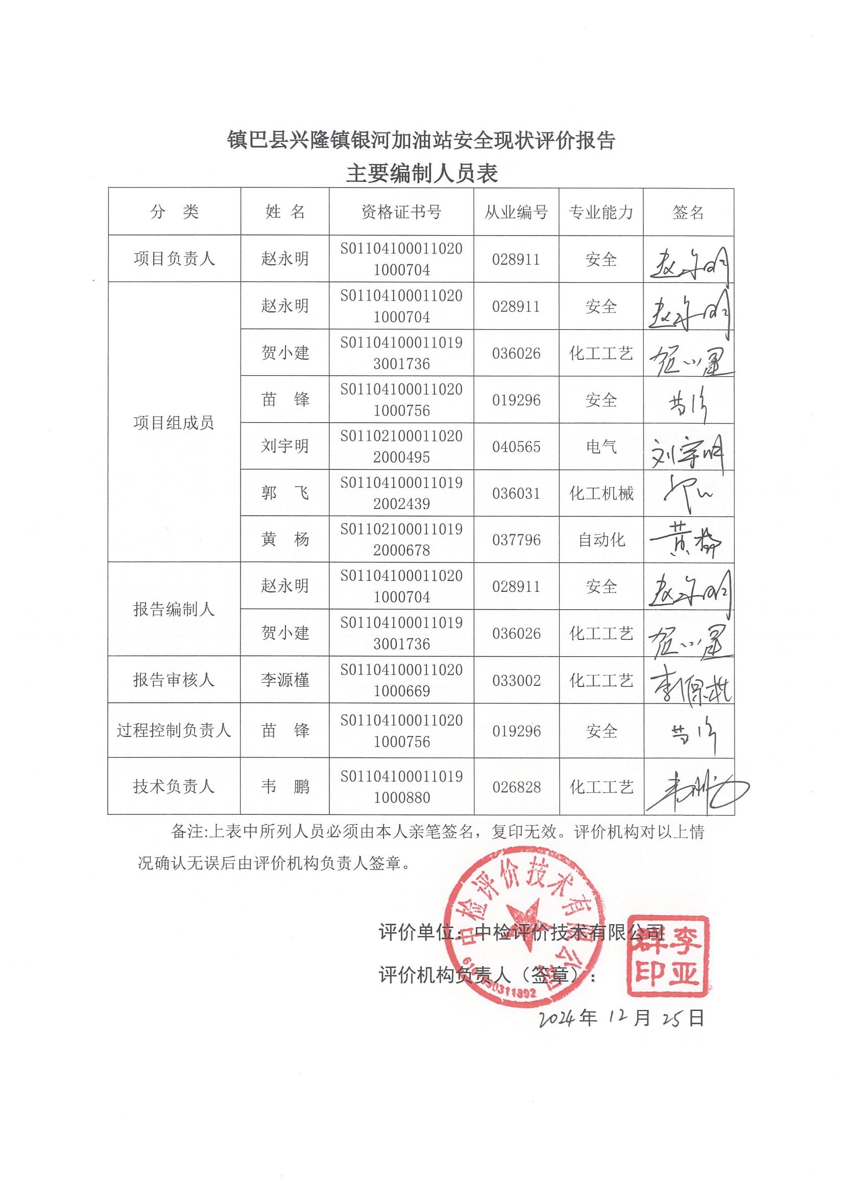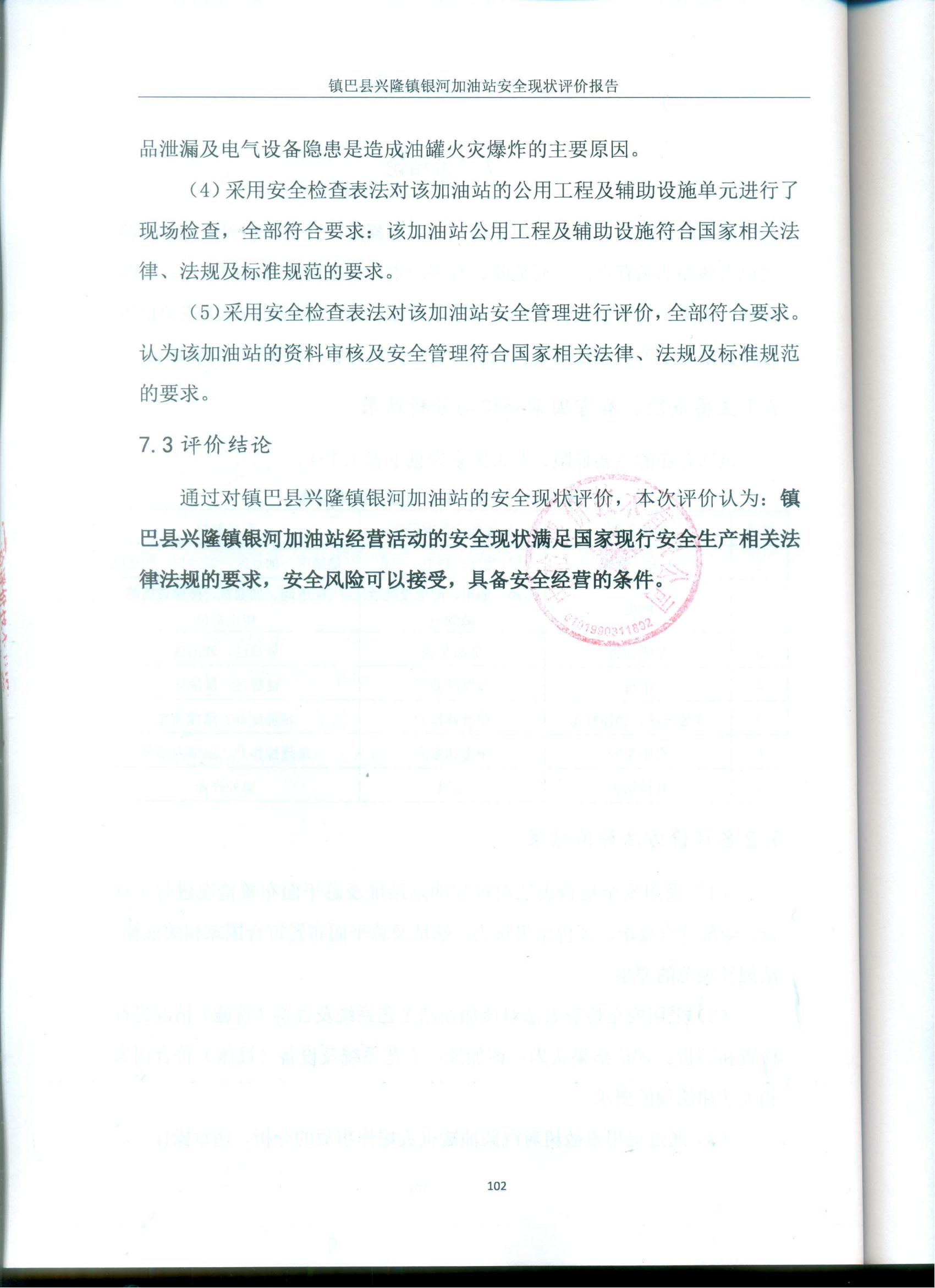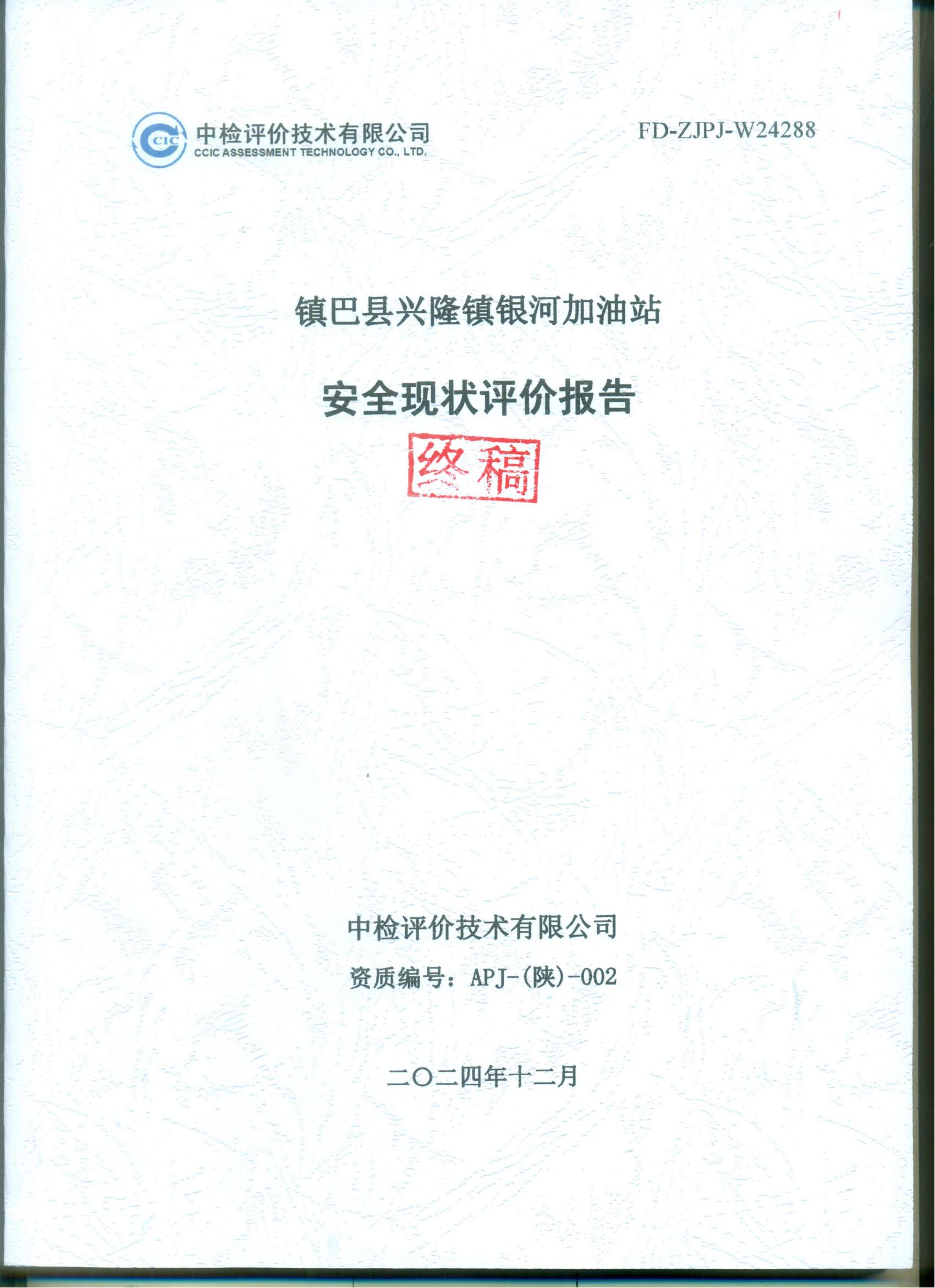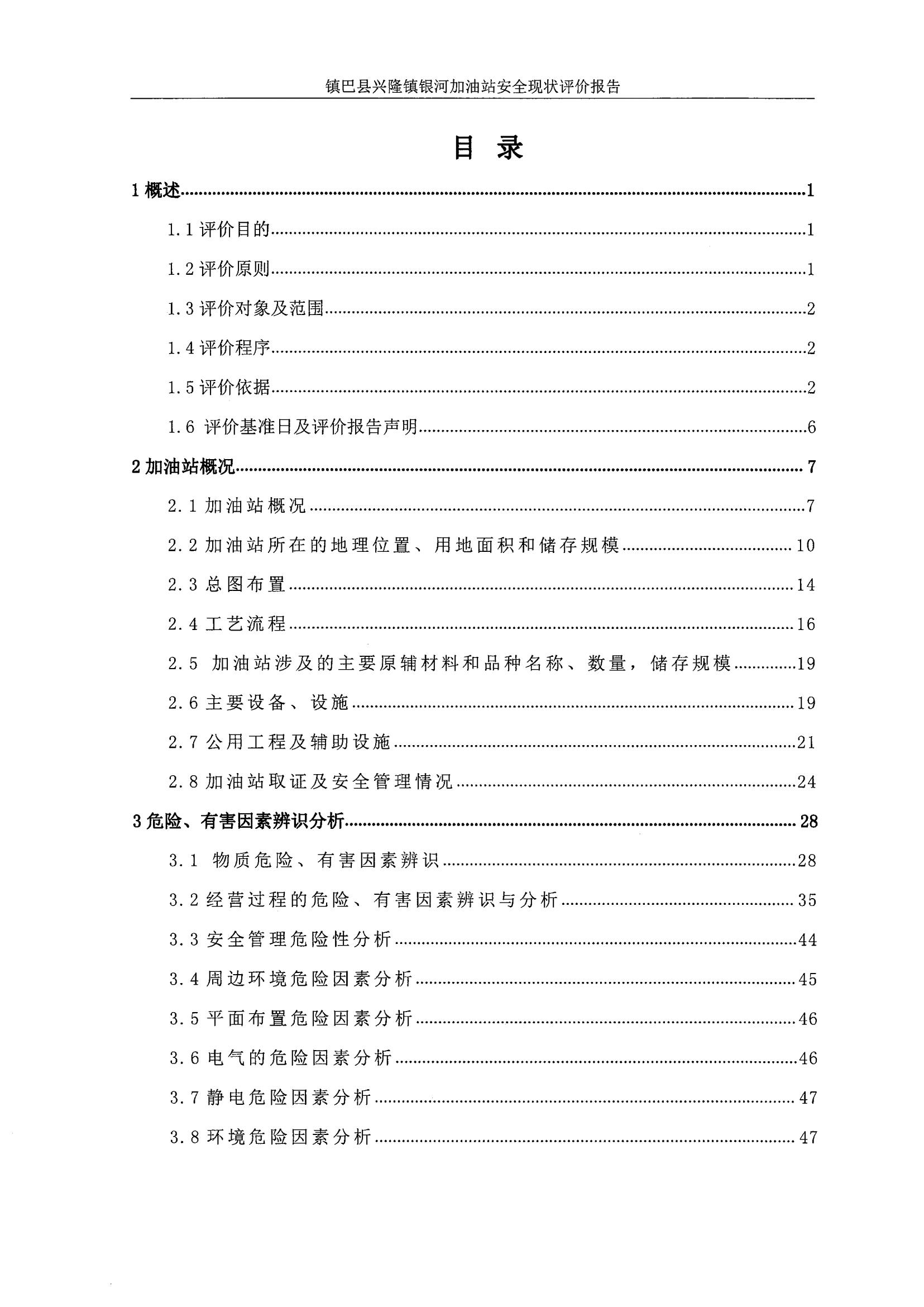 项目名称 | 镇巴县兴隆镇银河加油站安全现状评价报告 | ||||||