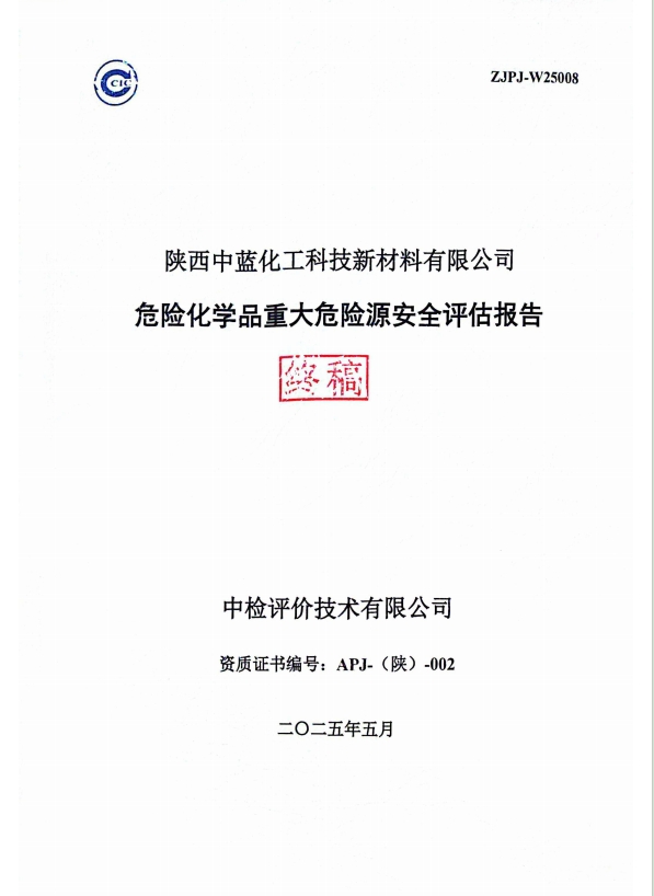 陕西中蓝化工科技新材料有限公司危险化学品重大危险源安全评估