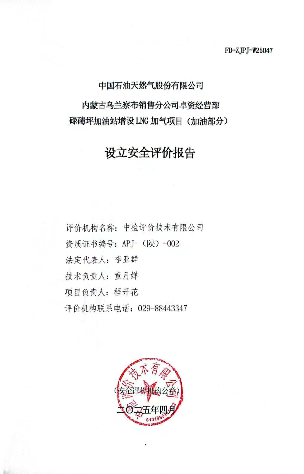 项目简介 | 中国石油天然气股份有限公司内蒙古乌兰察布销售分公司卓资碌碡坪加 油站建于内蒙古自治区乌兰察布市卓资县碌碡坪110 国道北。经营车用汽油、 柴油,拟增设液化天然气(LNG)。为依法贯彻执行《危险化学品建设项目安全监督管理办法》(国家安全生产 监督管理总局令第 45 号,79 号修订)的有关规定,实现建设项目的本质安全, 中国石油天然气股份有限公司内蒙古乌兰察布销售分公司委托中检评价技术有 限公司对中国石油天然气股份有限公司内蒙古乌兰察布销售分公司卓资经营 部碌碡坪加油站增设 LNG 加气项目(加油部分)进行设立安全评价。 | ||||||