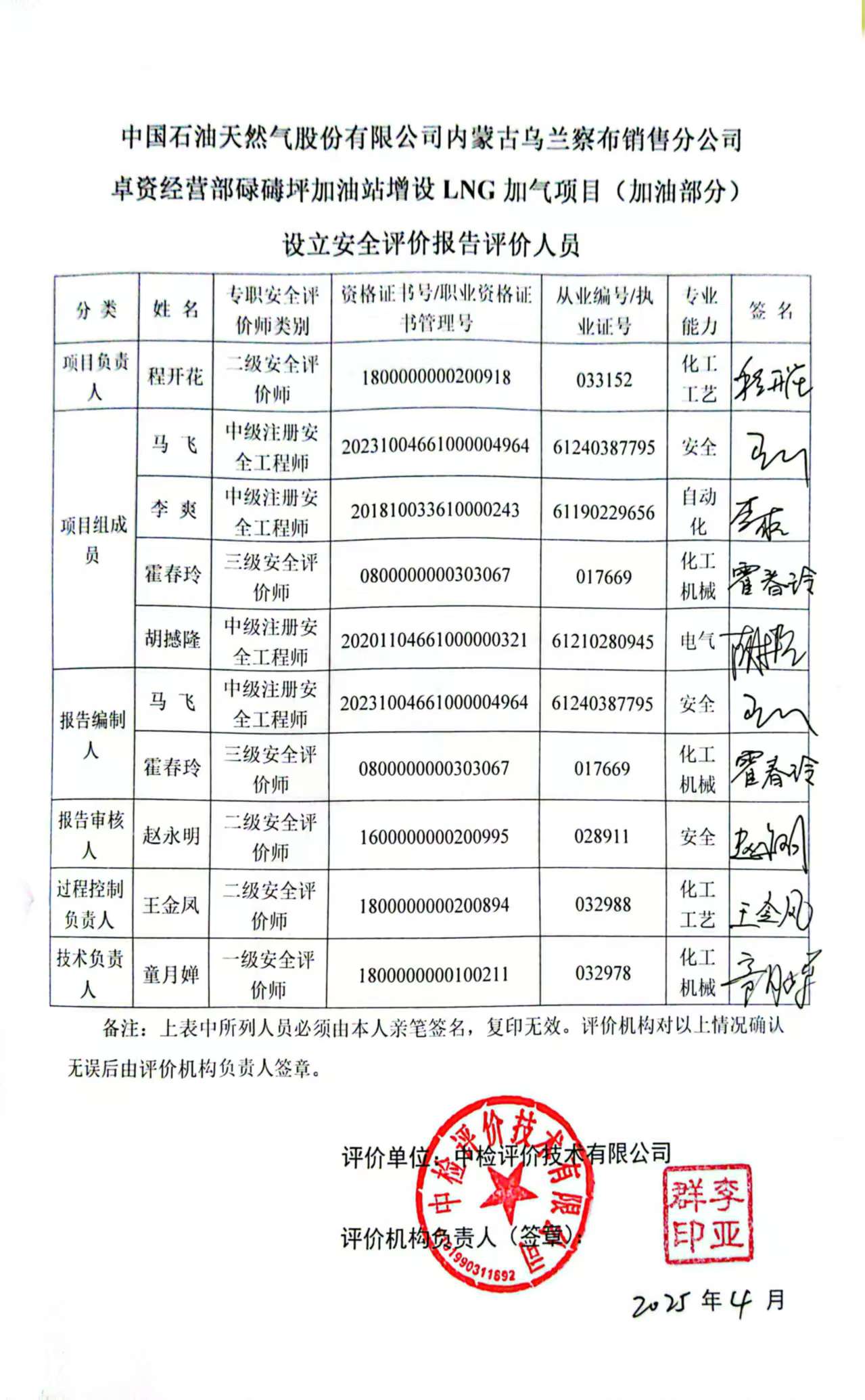 安全评价项目管理 | 项目组长 | 技术负责人 | 过程控制负责人 | ||||