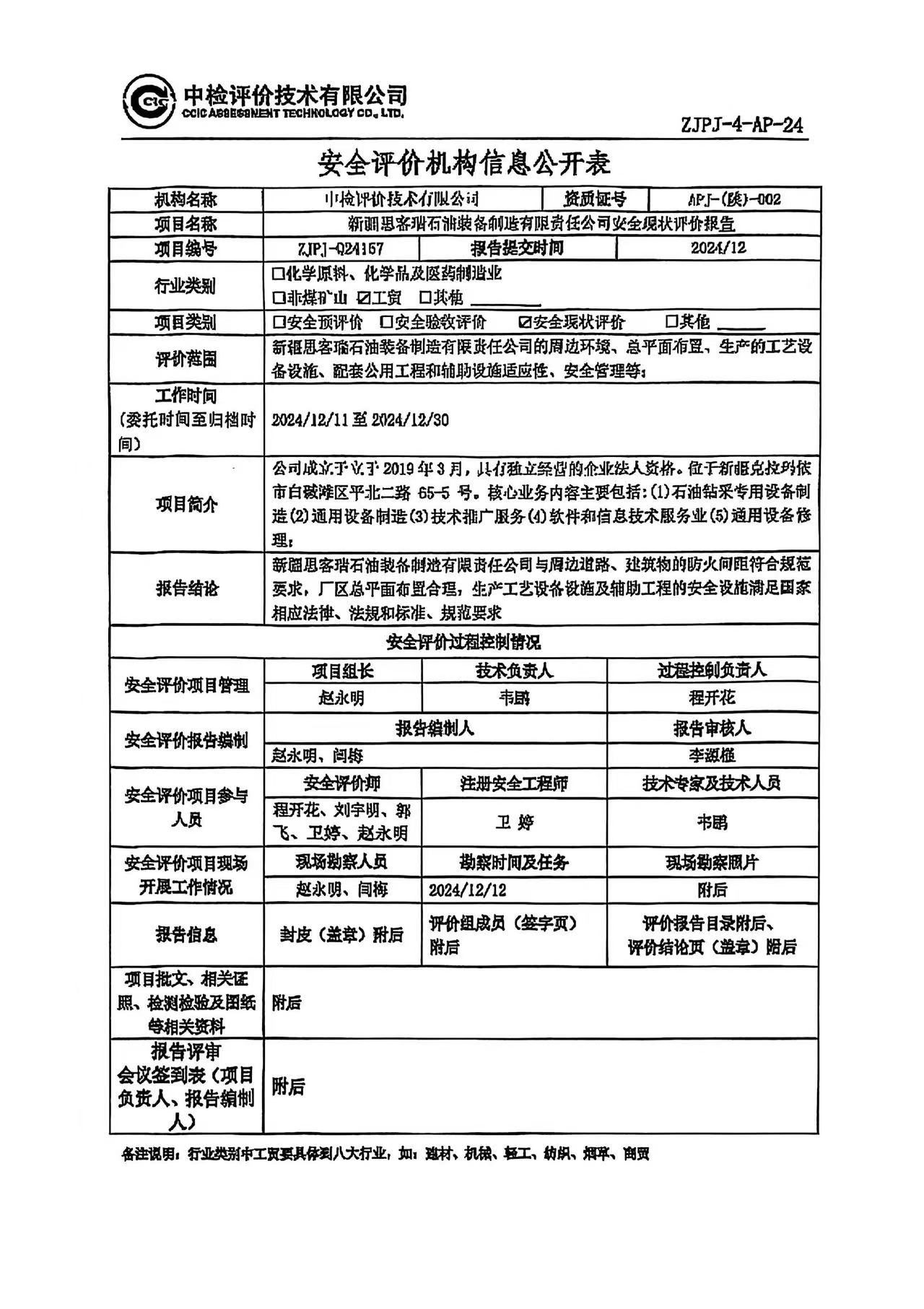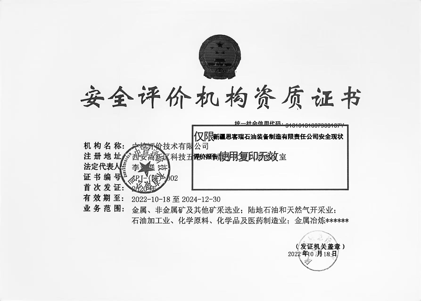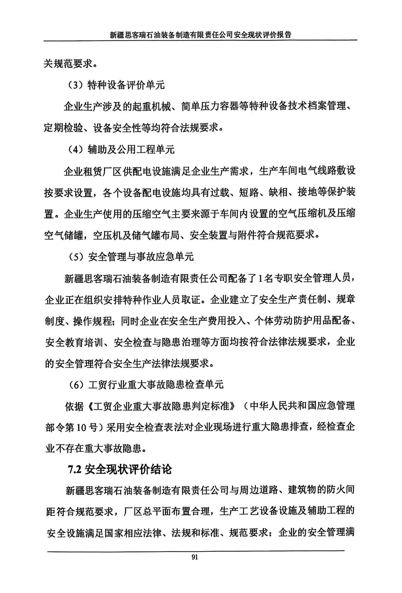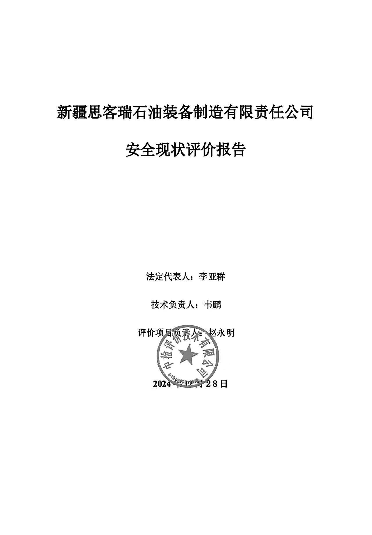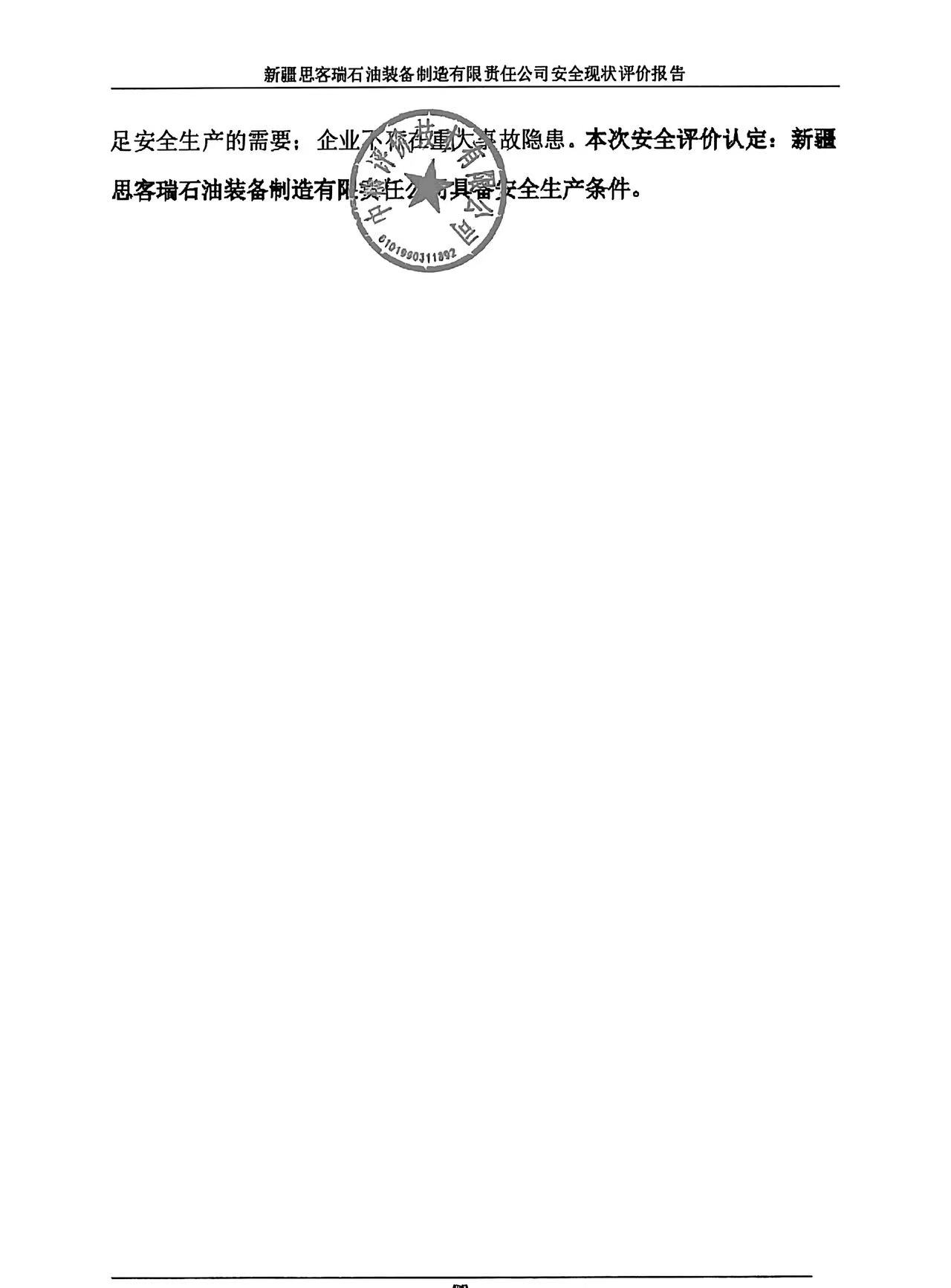 新疆思客瑞石油装备制造有限责任公司安全现状评价报告