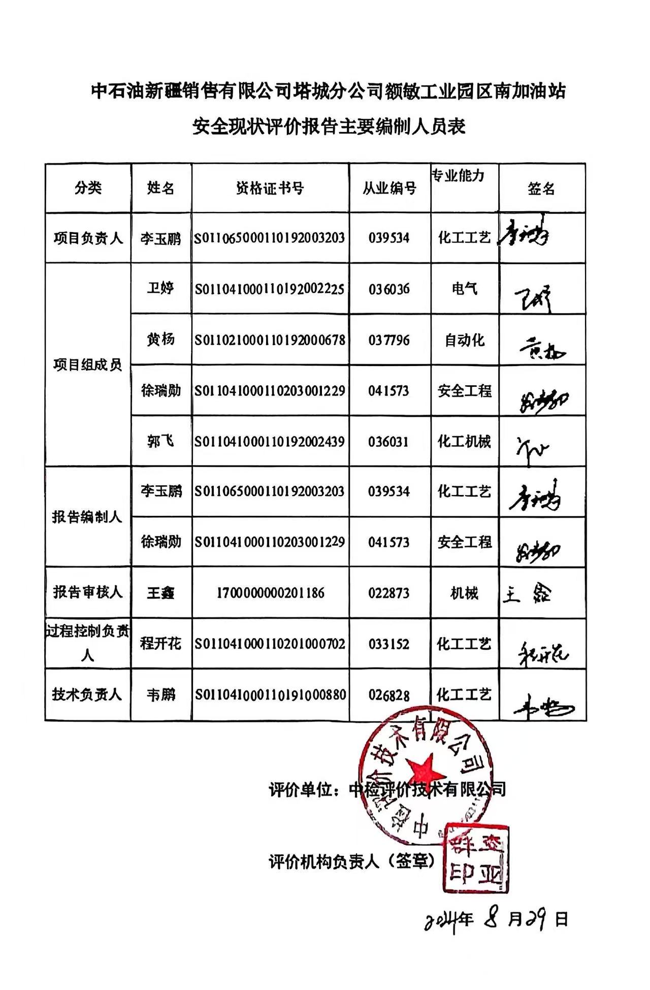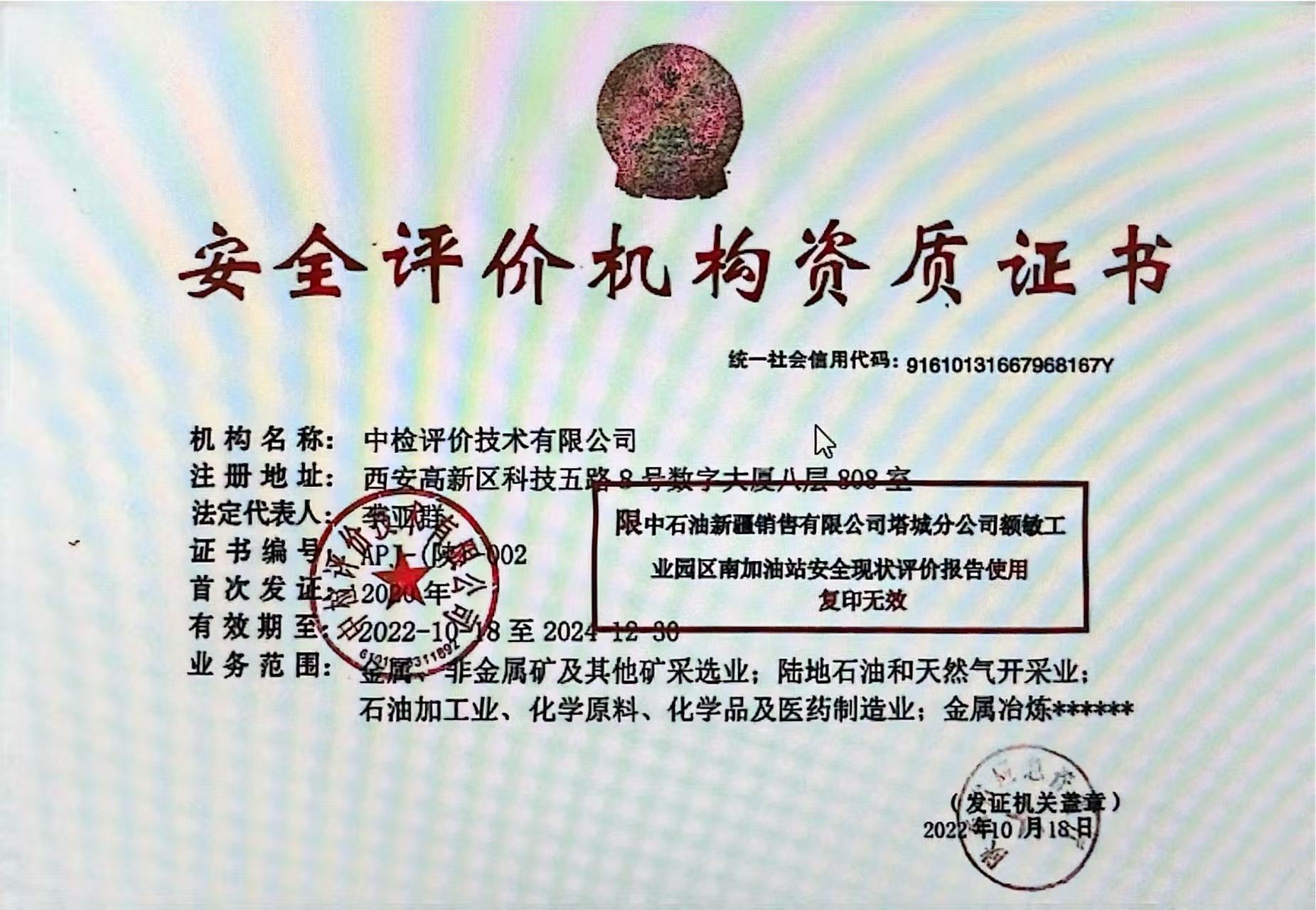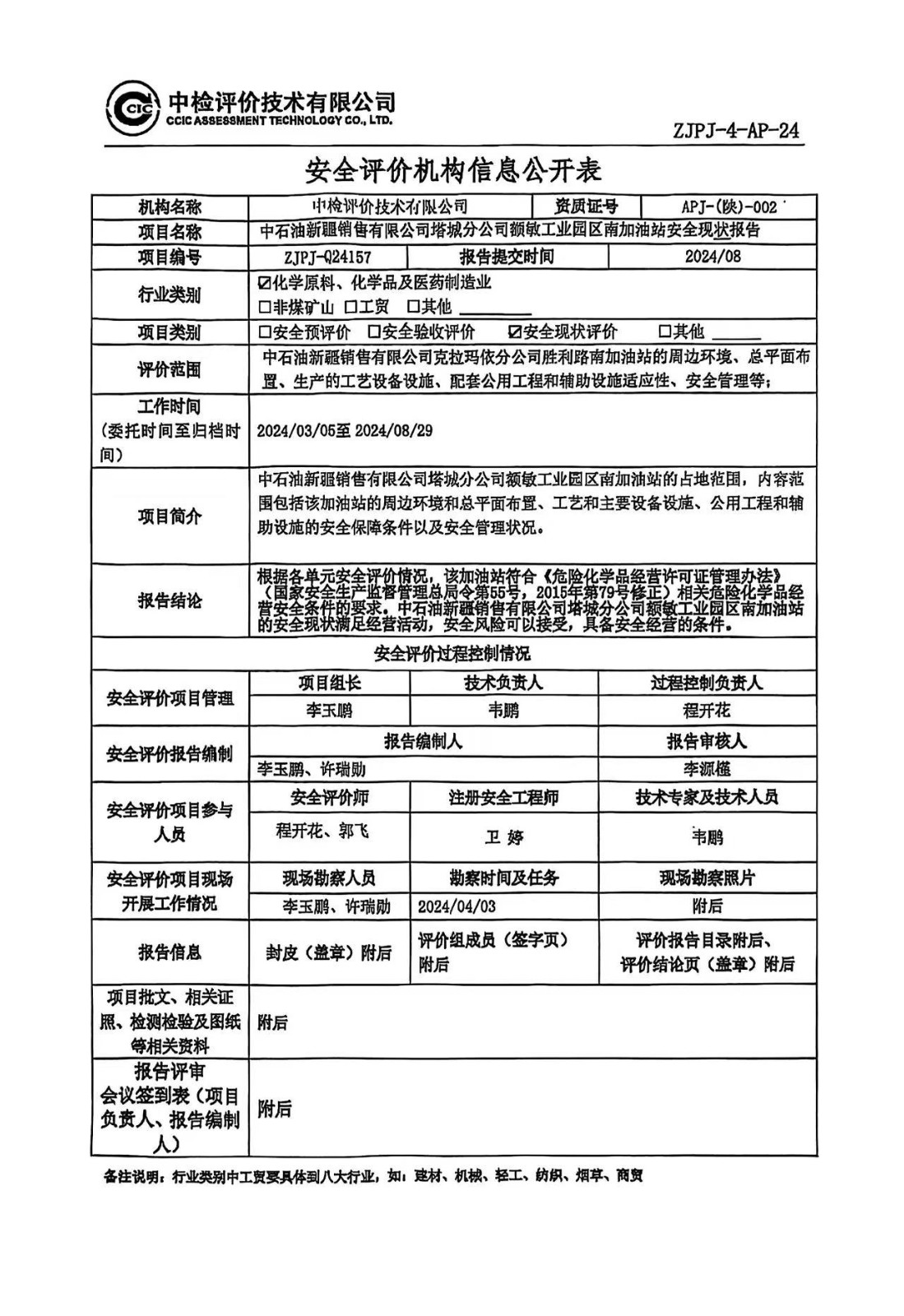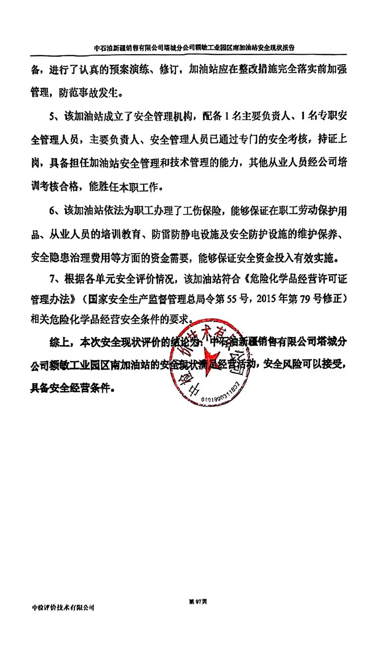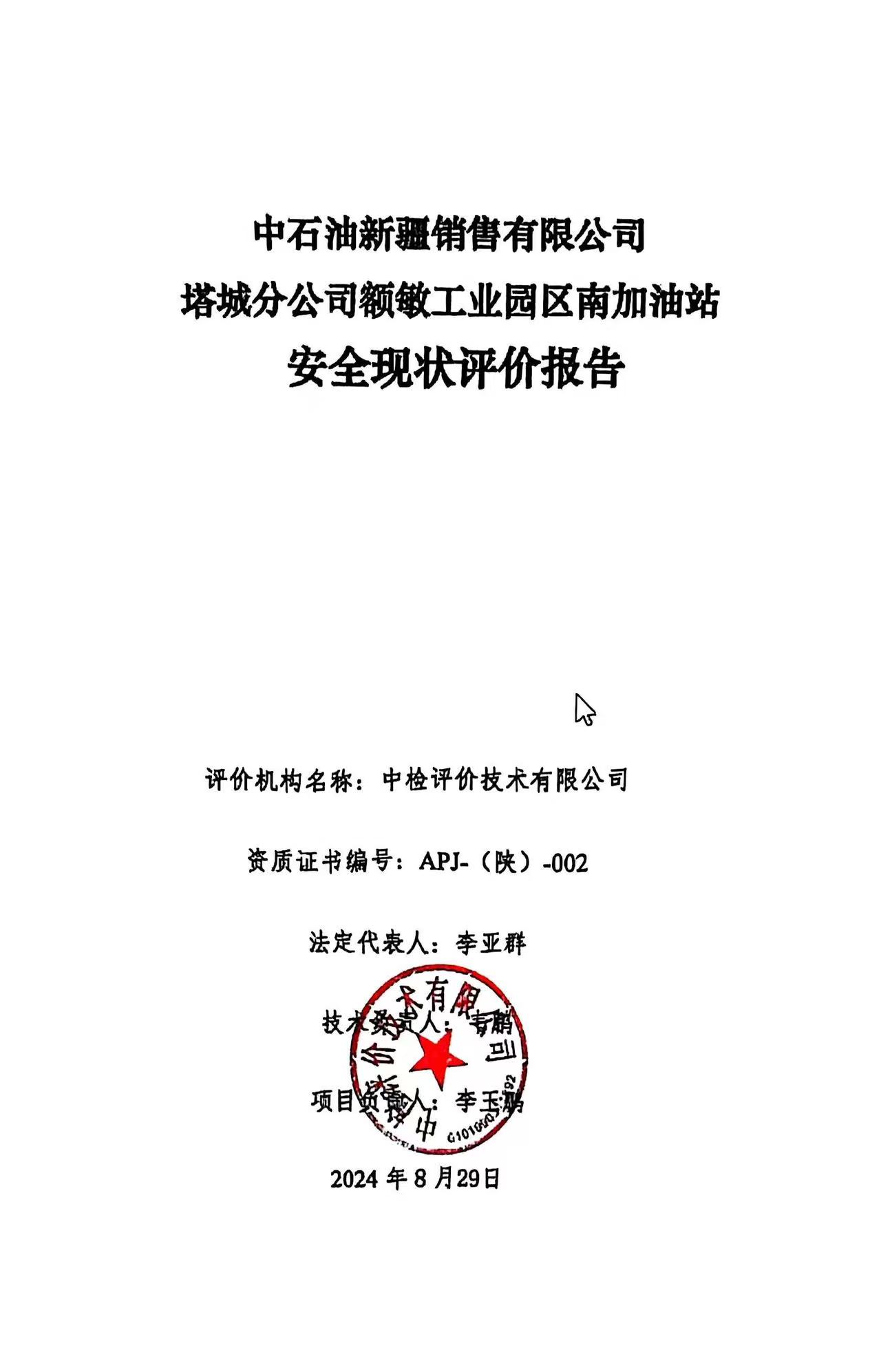 中石油新疆销售有限公司塔城分公司额敏工业园区南加油站安全现状评价报告