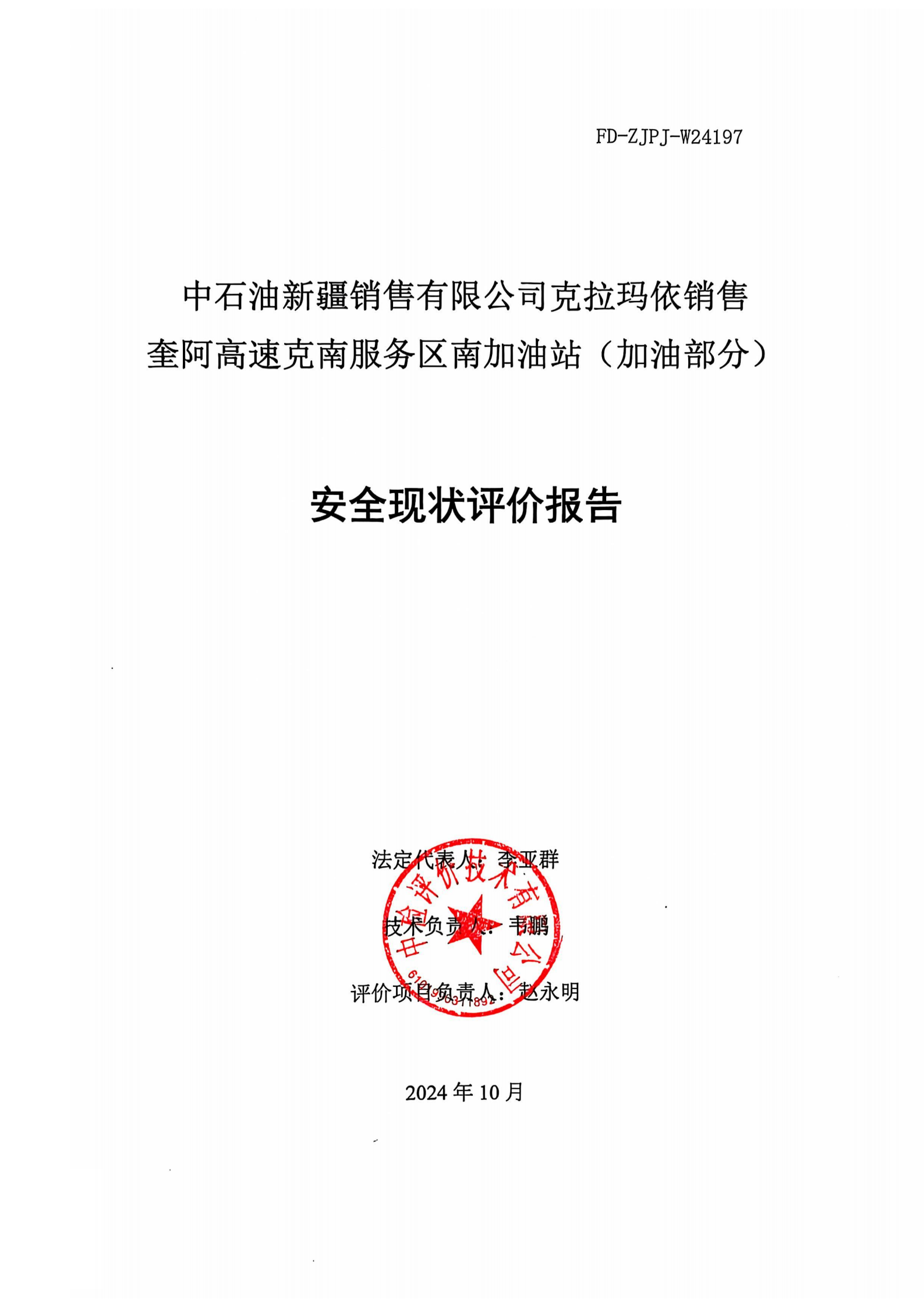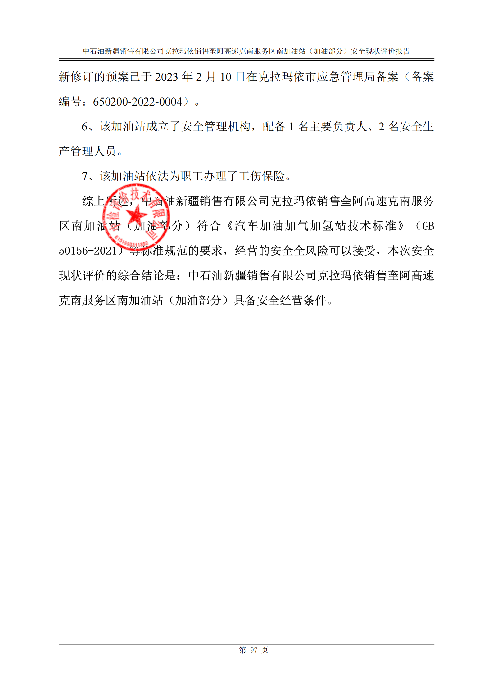 中石油新疆销售有限公司克拉玛依销售奎阿高速克南服务区南加油站(加油部分)安全现状评价报告