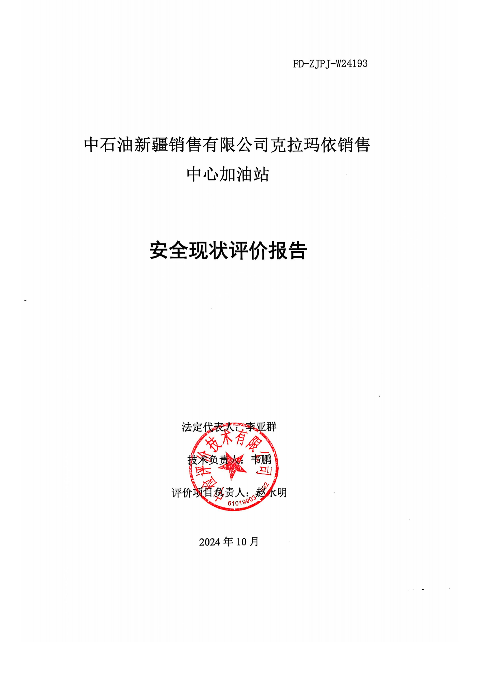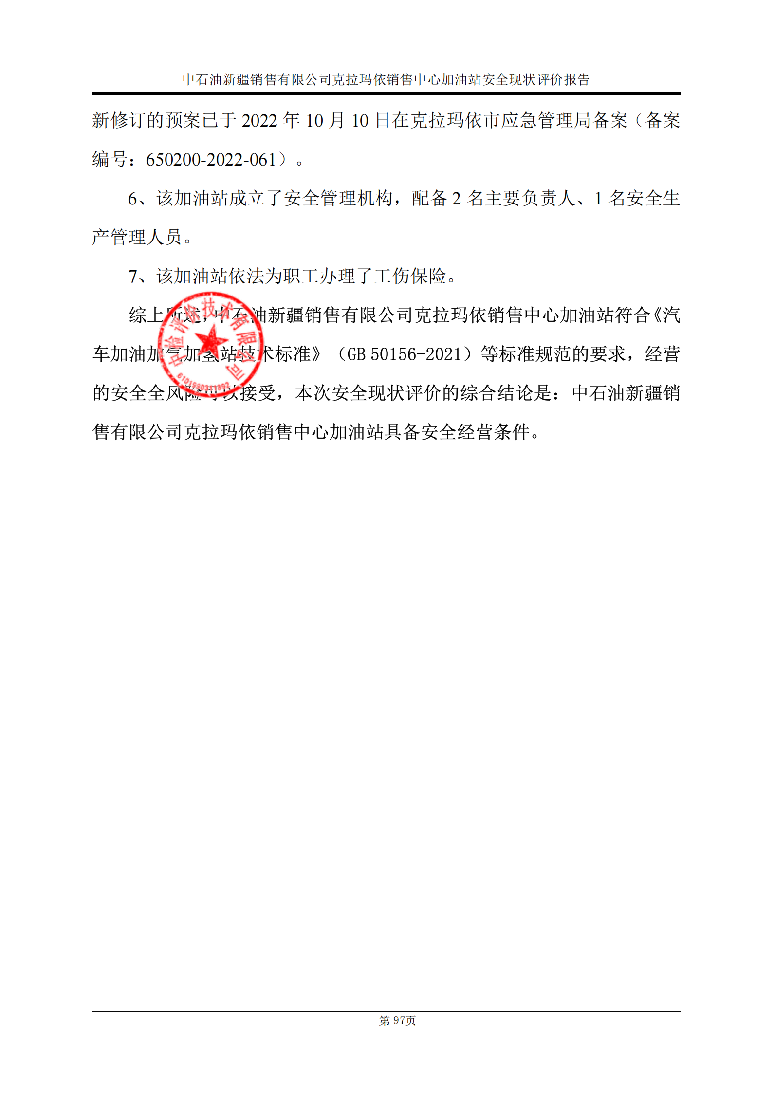 中石油新疆销售有限公司克拉玛依销售中心加油站安全现状评价