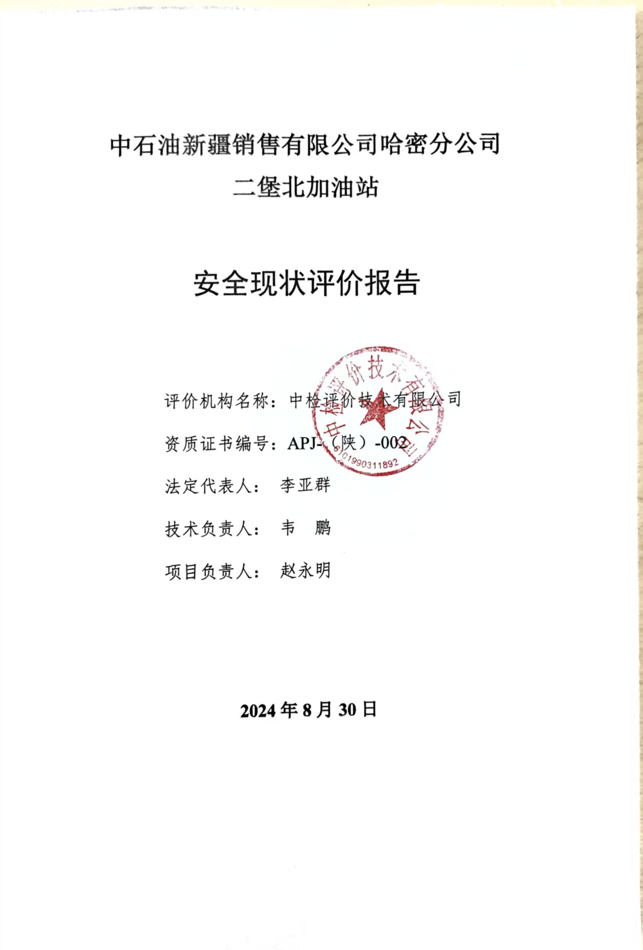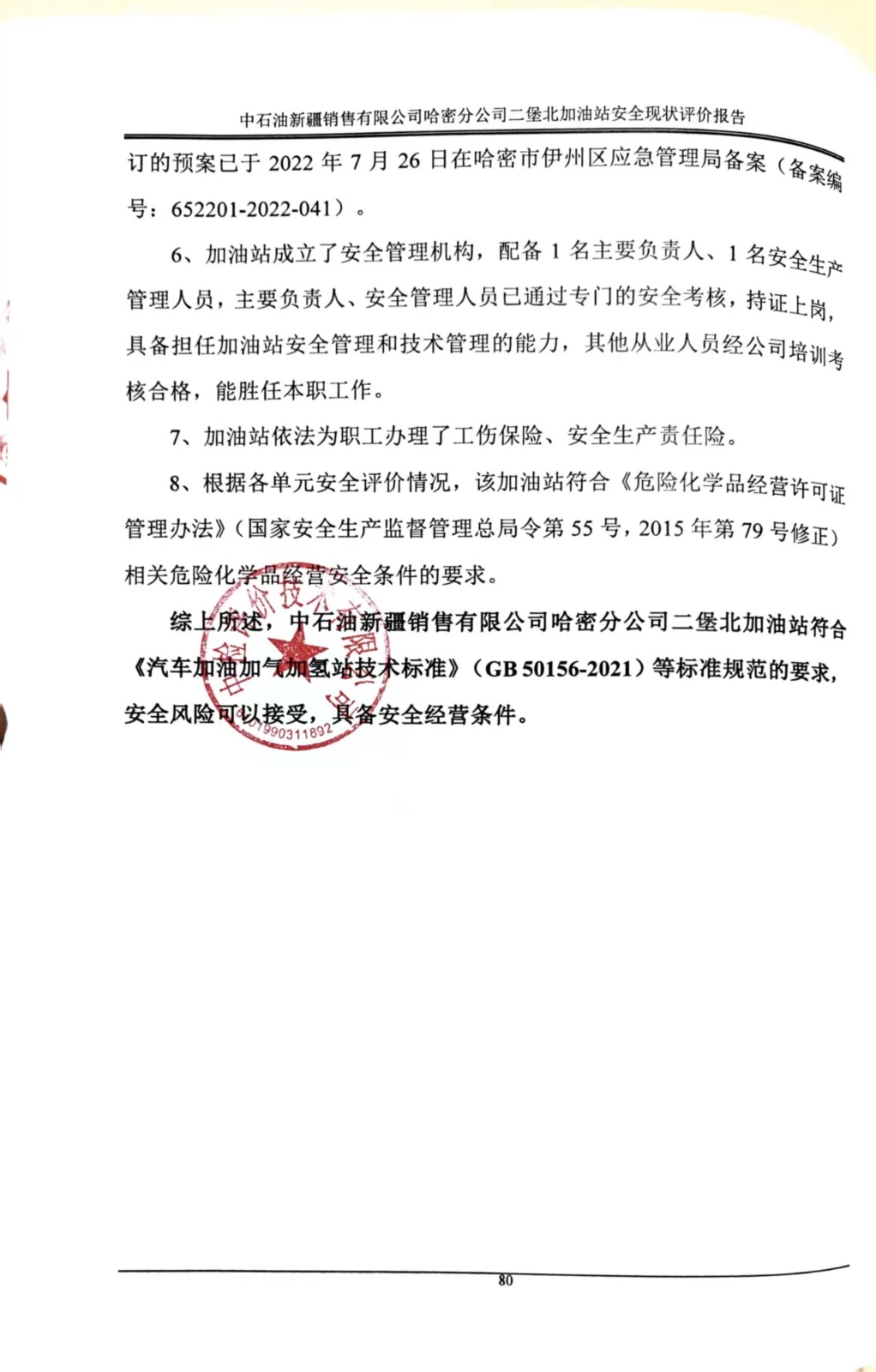 中石油新疆销售有限公司哈密分公司二堡北加油站安全现状评价报告