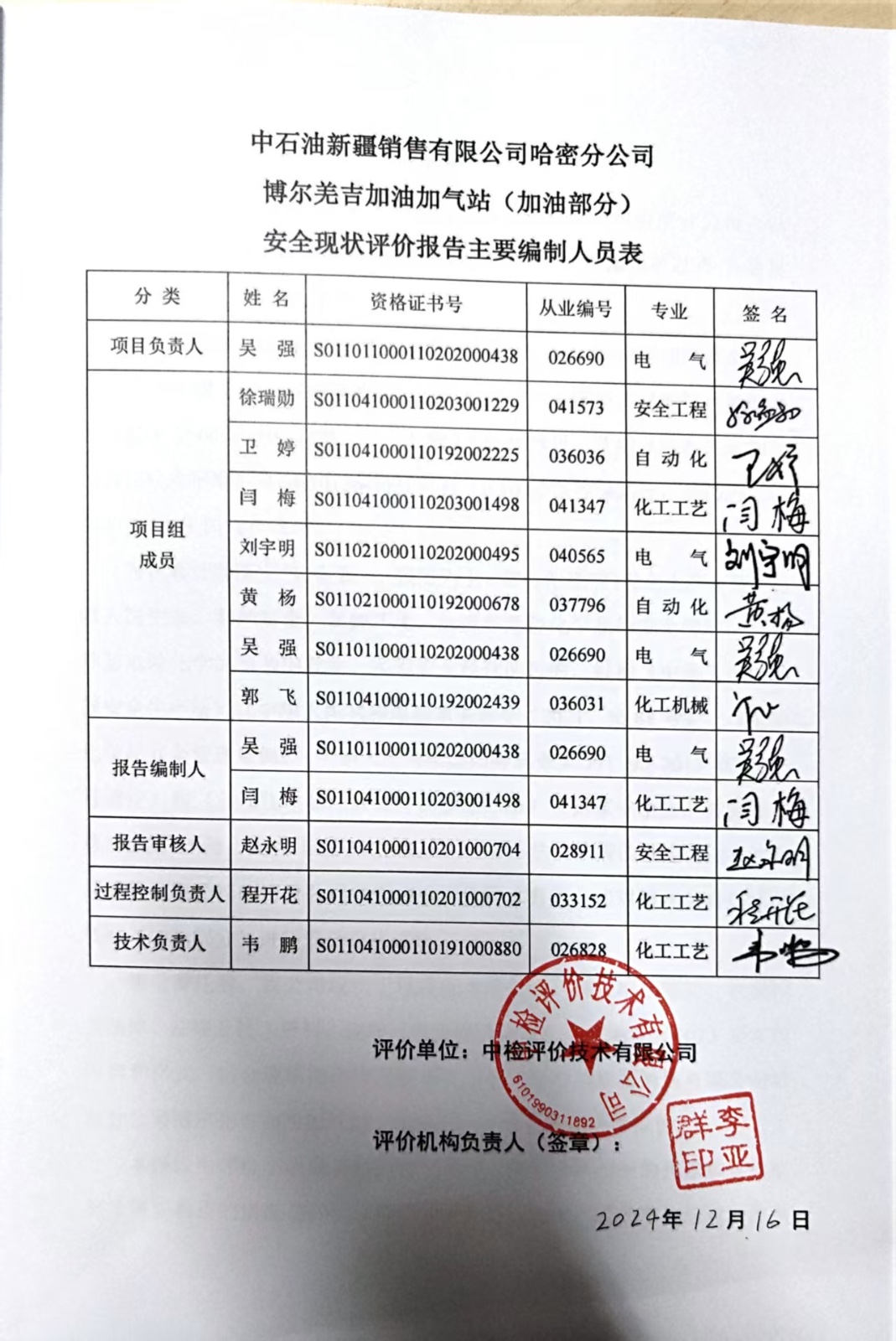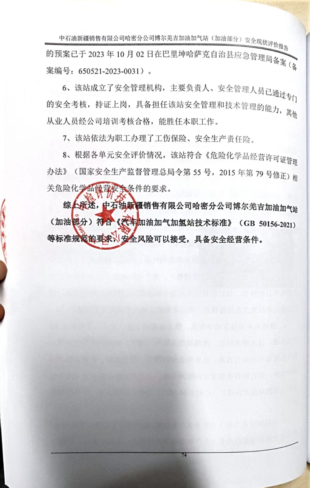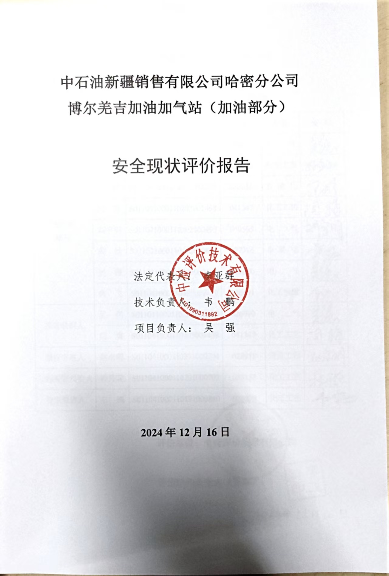中石油新疆销售有限公司哈密分公司博尔羌吉加油加气站(加油部分)安全现状评价报告