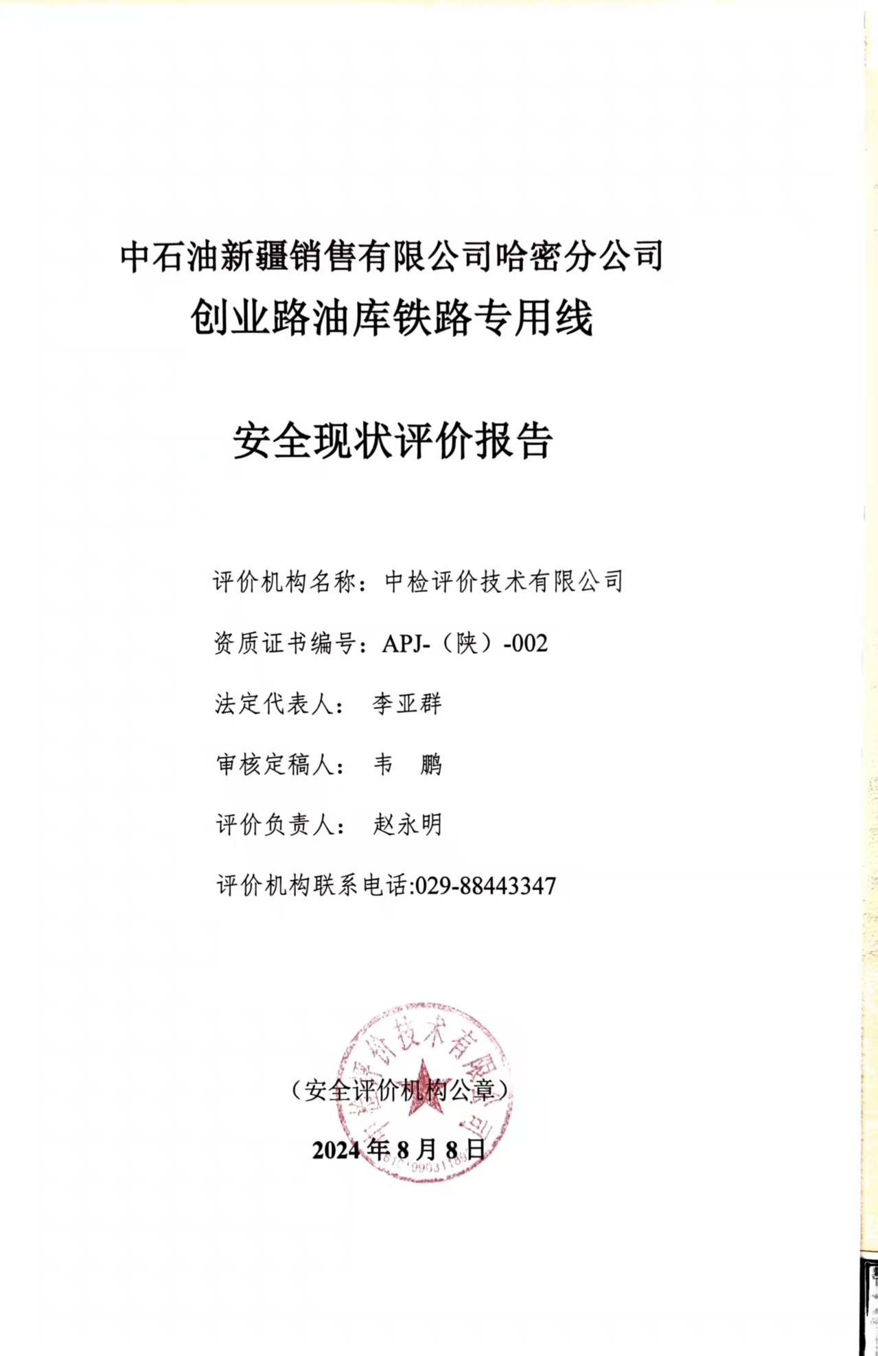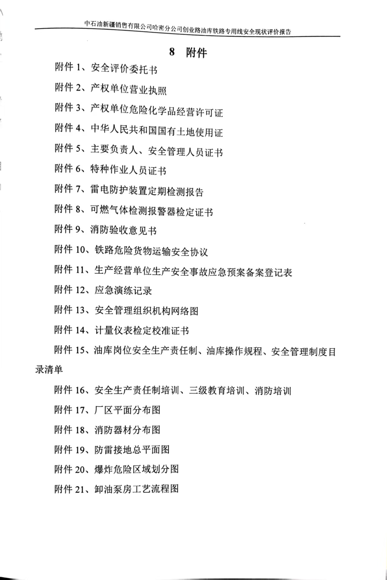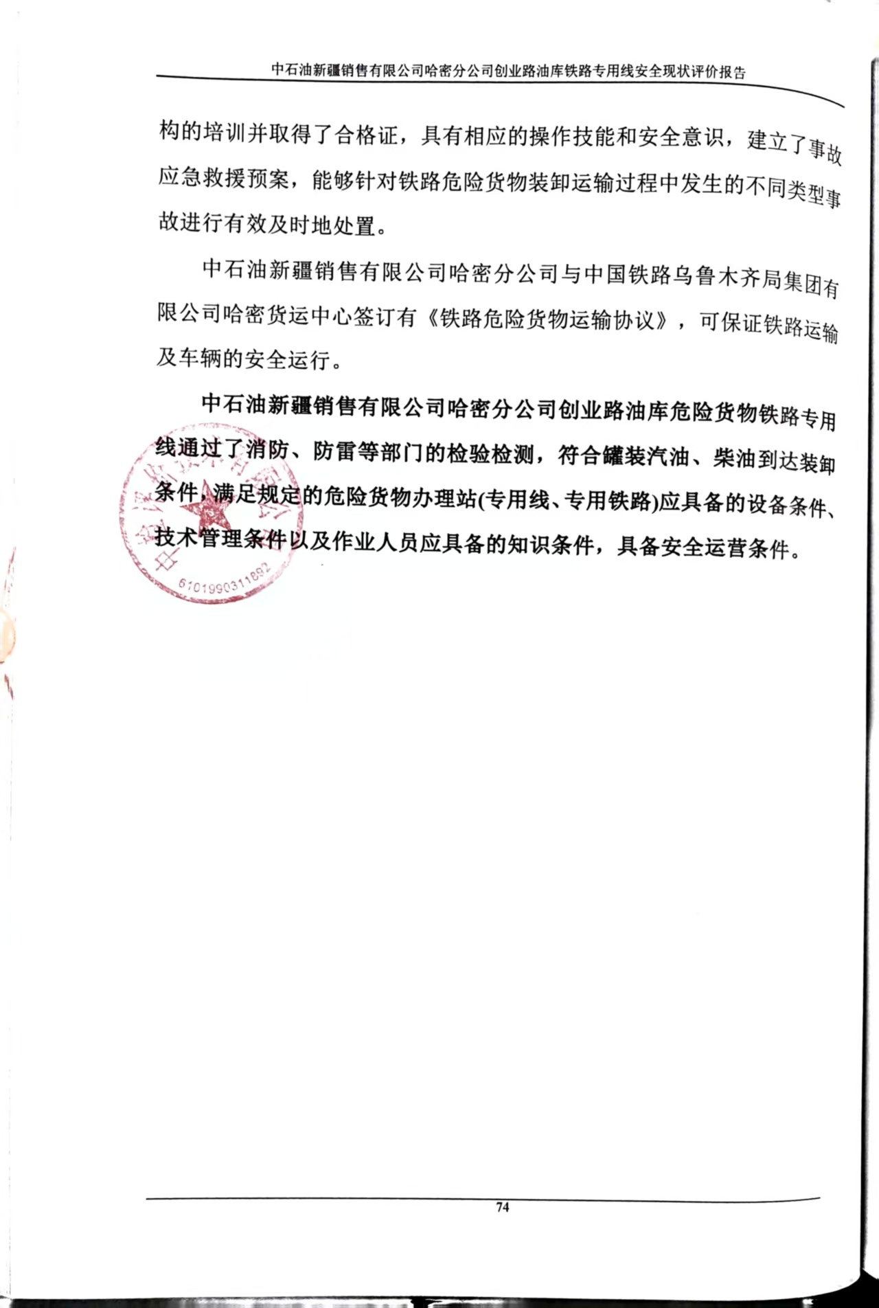 中石油新疆销售有限公司哈密分公司创业路油库铁路专用线安全现状评价报告