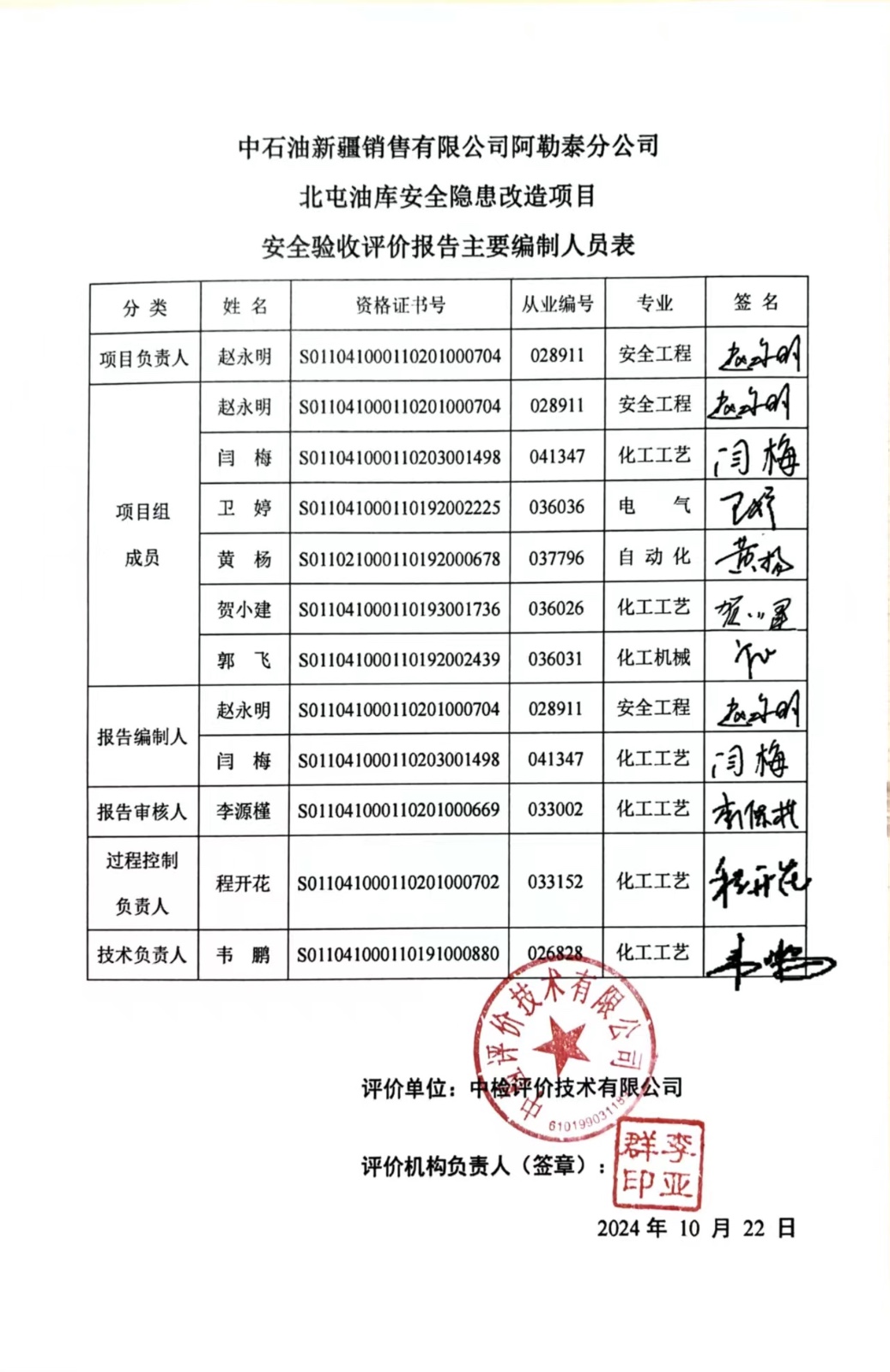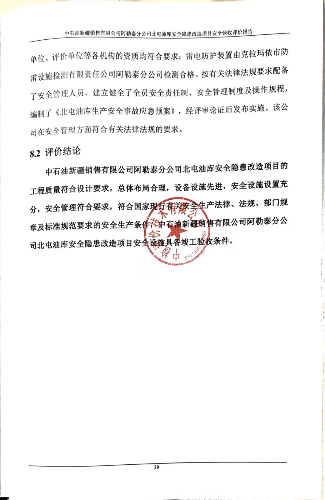 中石油新疆销售有限公司阿勒泰分公司北屯油库安全隐患改造项目安全验收评价报告