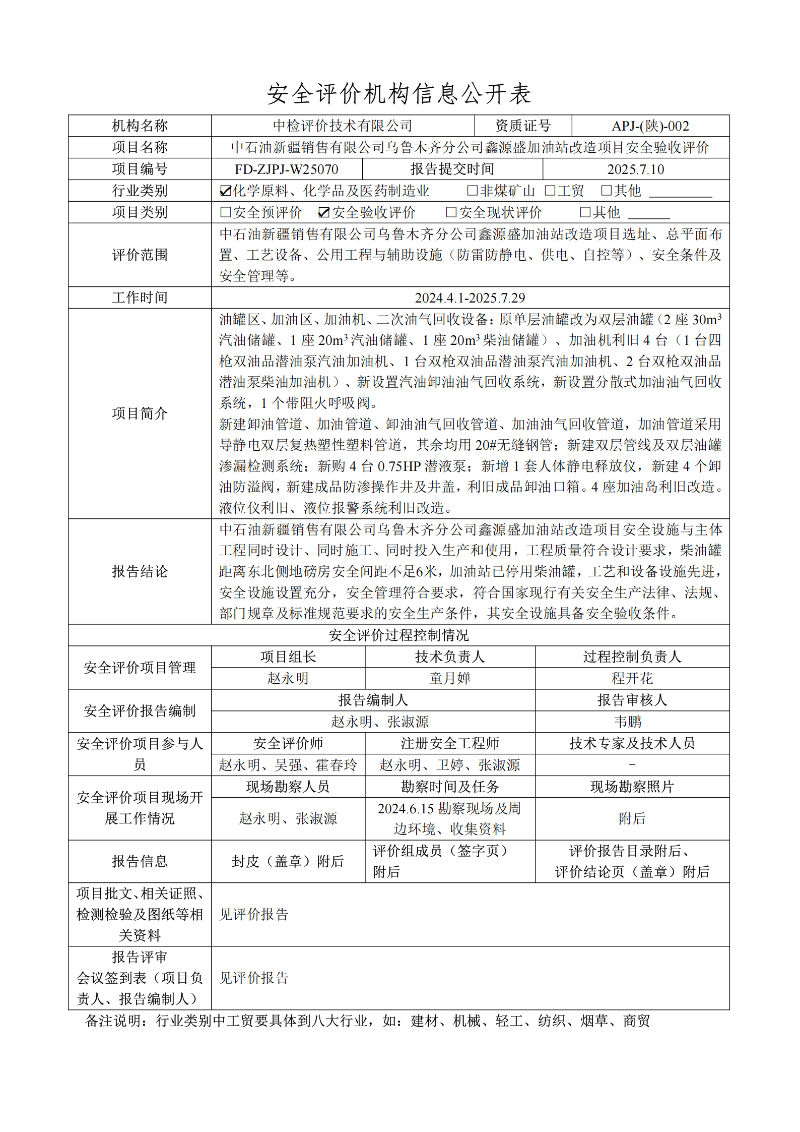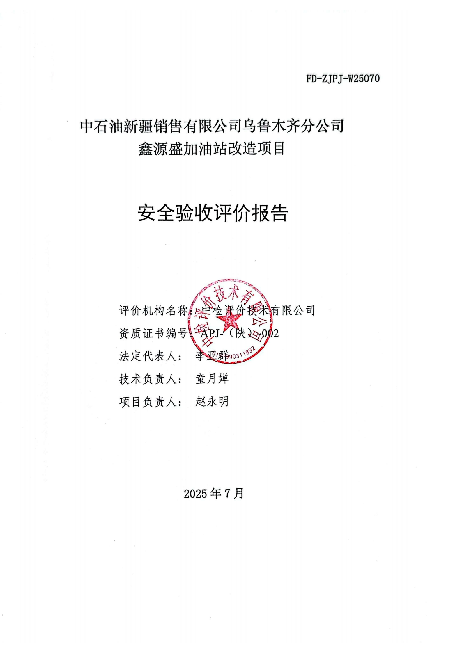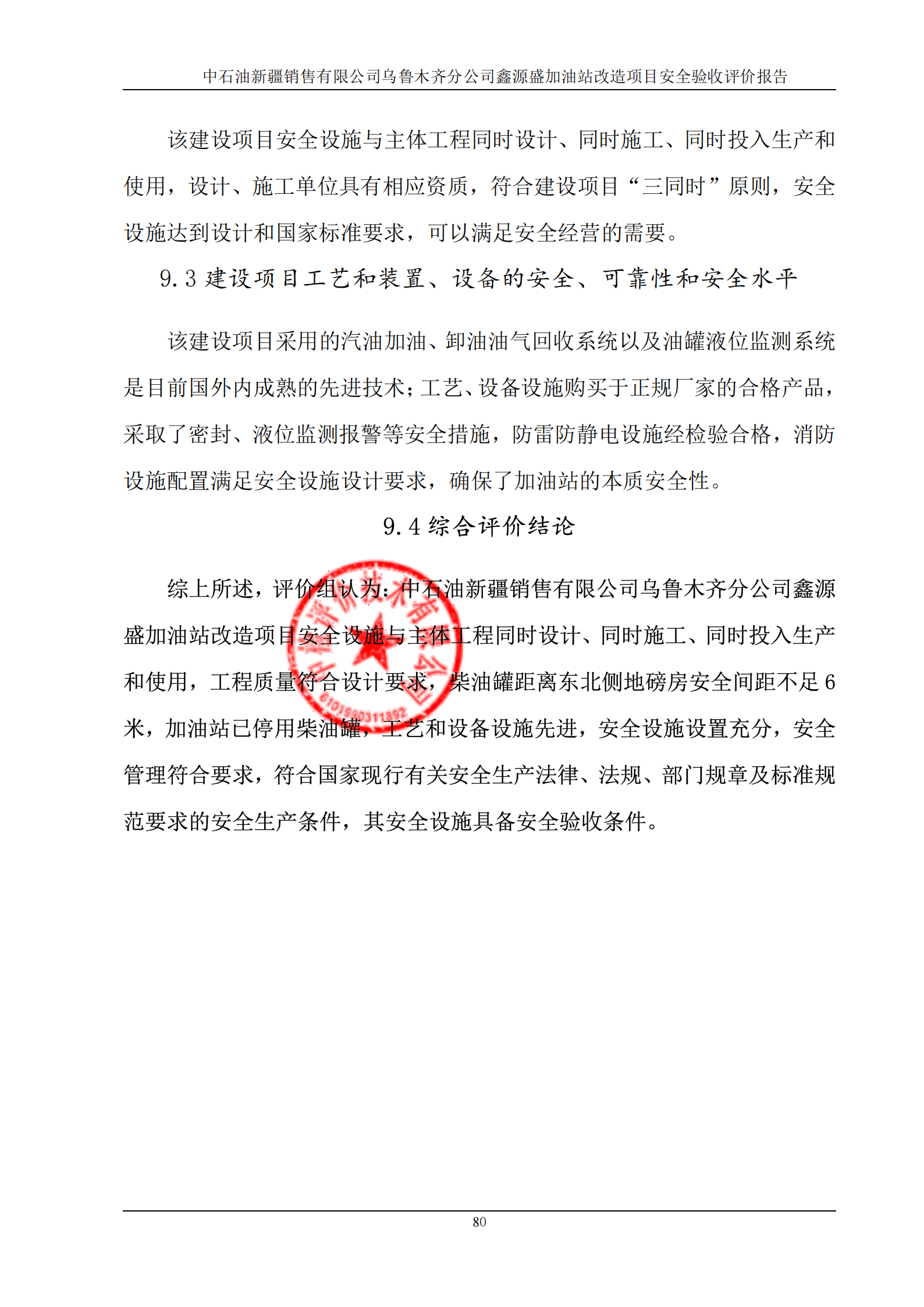 中石油新疆销售有限公司乌鲁木齐分公司鑫源盛加油站改造项目安全验收评价报告